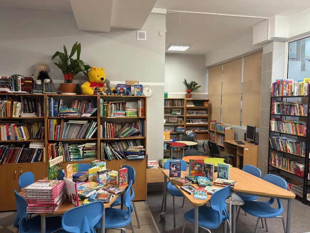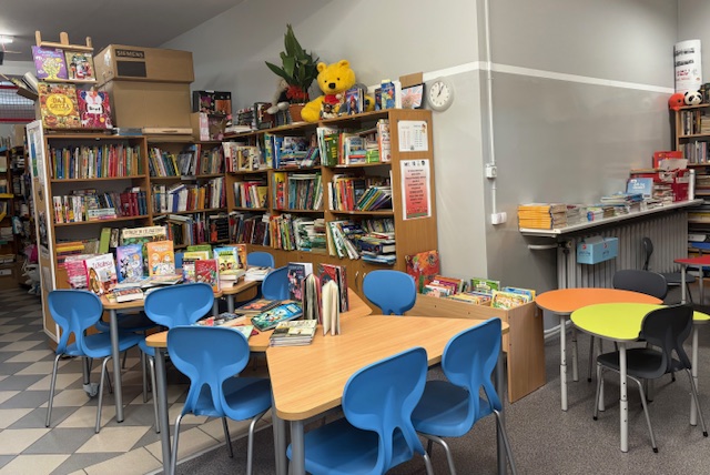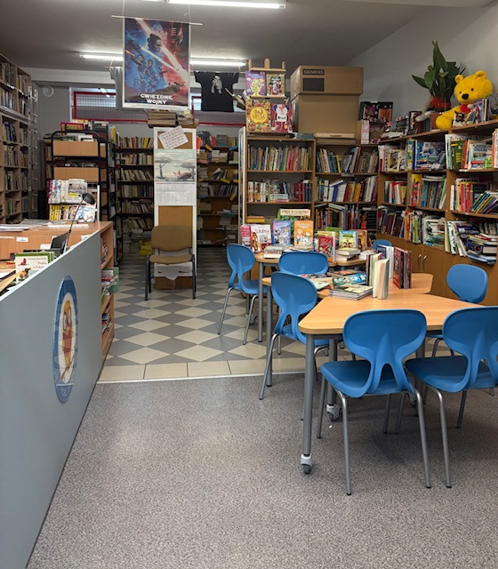 W bibliotece wreszcie ukończono doposażenie wnętrza. Jest wygodnie i kolorowo. Są nowe stoły i krzesła (dzięki funduszom pozyskanym z NPRCz 2.0 2021-2025).