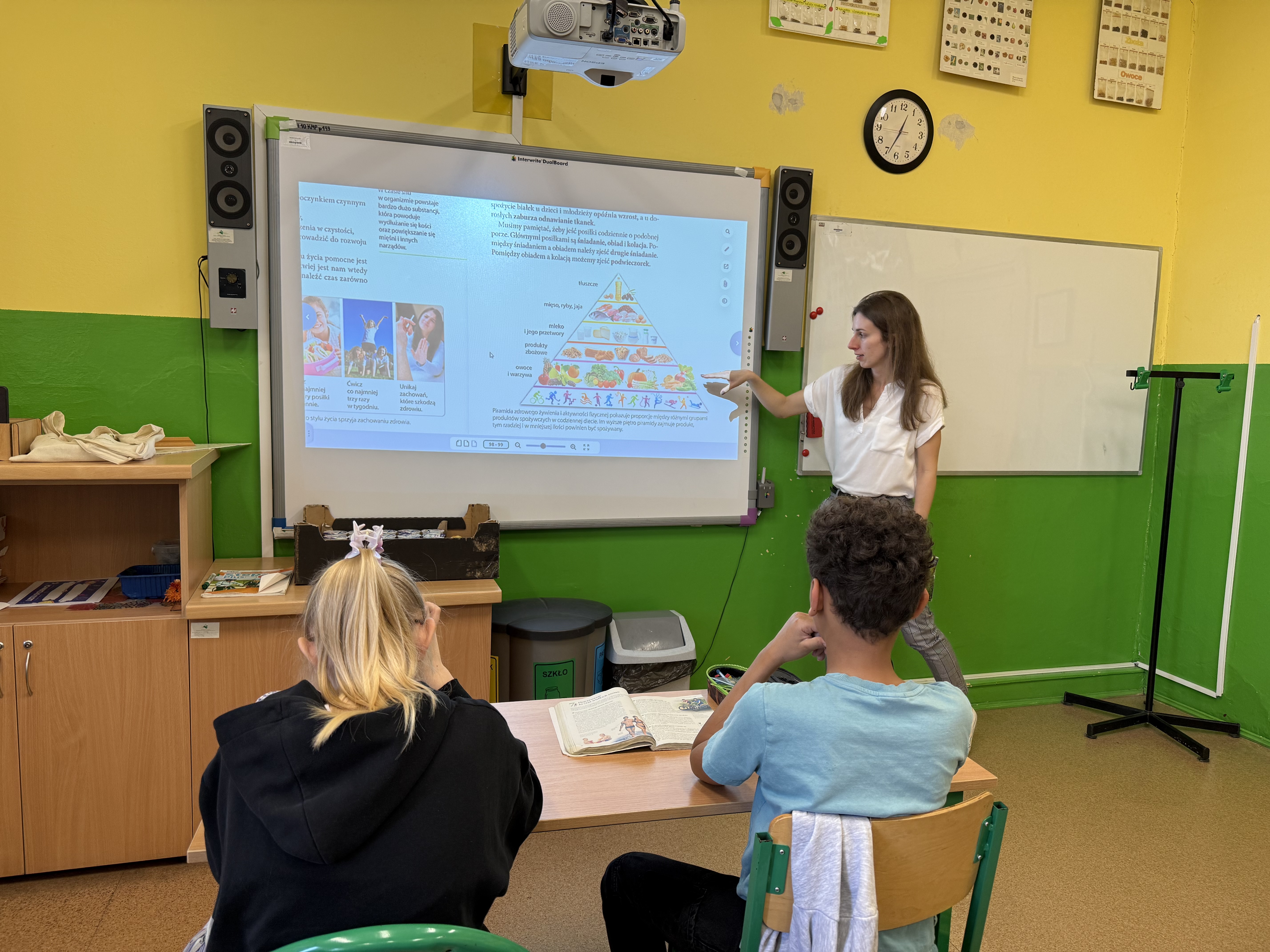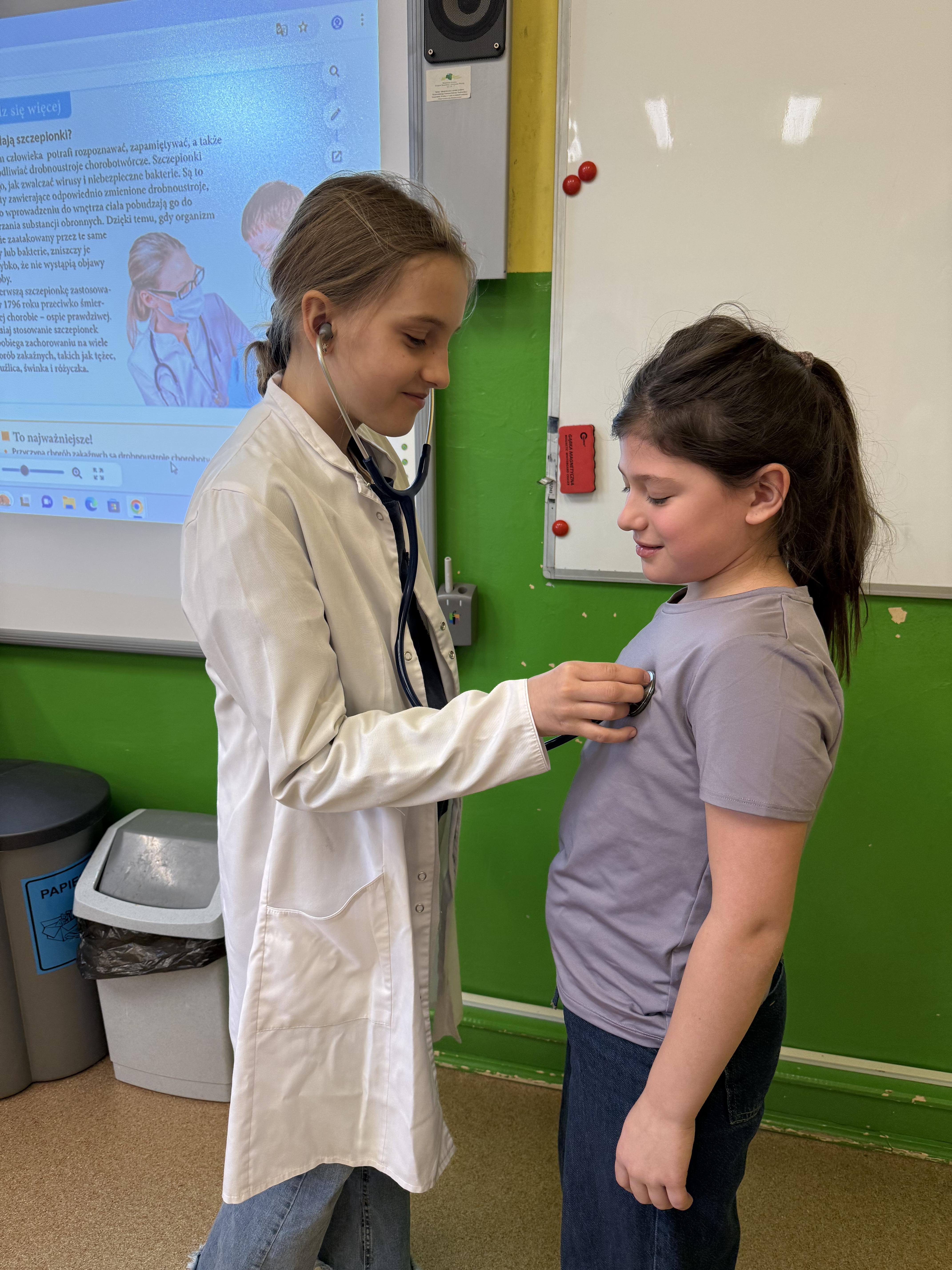 W ostatnich dniach w naszej szkole, w ramach lekcji przyrody, odbył się cykl zajęć, który pozwolił uczniom spojrzeć na temat zdrowia z bardziej praktycznej strony. Była to okazja nie tylko do zdobycia wiedzy, ale również do rozmowy, zadawania pytań i rozwiewania wątpliwości. Podczas spotkań uczniowie poznawali, jak funkcjonuje organizm człowieka oraz jak zmienia się on na kolejnych etapach rozwoju. Szczególną uwagę poświęcono okresowi dojrzewania - czasowi ważnych zmian, które dotyczą każdego młodego człowieka. Poruszono również tematy związane z codziennym dbaniem o zdrowie - odpowiednim odżywianiem, aktywnością fizyczną i higieną. Dużo uwagi poświęcono chorobom zakaźnym i pasożytniczym. Uczniowie poznali drogi ich przenoszenia, dowiedzieli się, czym są drobnoustroje oraz jak można skutecznie chronić się przed zakażeniami, zwracając uwagę na znaczenie profilaktyki. Zajęcia miały swobodny i interaktywny charakter - uczniowie chętnie włączali się do rozmowy, zadawali pytania i dzielili swoimi spostrzeżeniami. Ich zaangażowanie i ciekawość pokazały, jak bliskie są im poruszane tematy. Dodatkowym elementem spotkań było przybliżenie zawodu lekarza. Uczniowie mogli dowiedzieć się, jak wygląda codzienna praca w tym zawodzie, z jakimi wyzwaniami się wiąże oraz jak ważna jest odpowiedzialność i wiedza w tej profesji. Były to zajęcia, które nie tylko poszerzyły wiedzę uczniów, ale także pomogły im lepiej zrozumieć zmiany zachodzące w ich organizmach oraz uświadomiły, jak ważne jest dbanie o zdrowie każdego dnia i świadome podejmowanie codziennych wyborów.