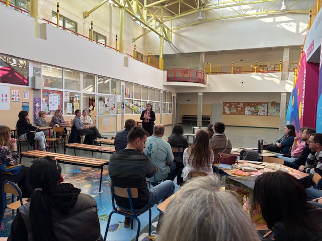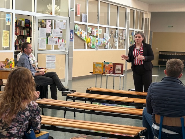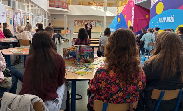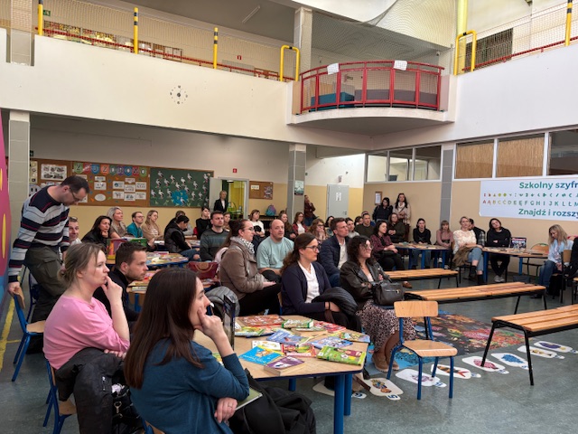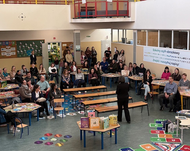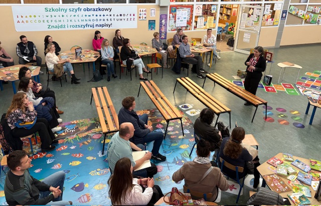 Podczas ostatnich wywiadówek (15.04.2026r.) Rodzice uczniów klas pierwszych uczestniczyli w spotkaniu prowadzonym przez p. Agnieszkę Jaworską, nauczyciela bibliotekarza, pracownika Pedagogicznej Biblioteki Wojewódzkiej w Łodzi - Filia w Pabianicach na temat wartości czytania razem z dzieckiem oraz wpływu „ekranów” na dzieci.