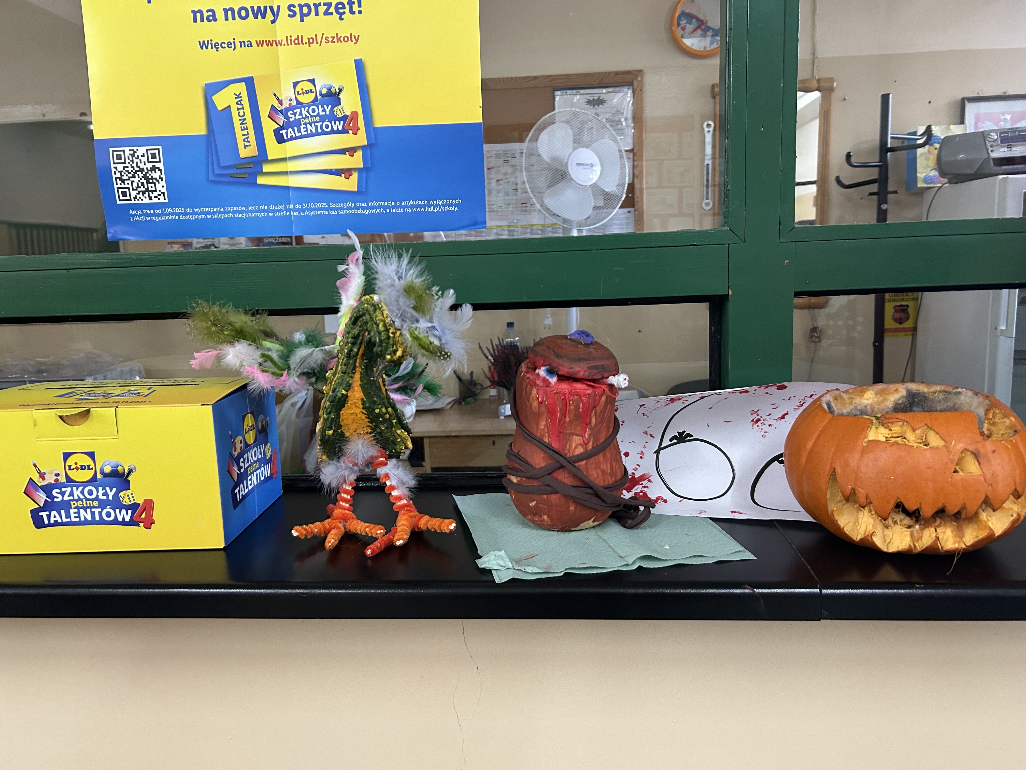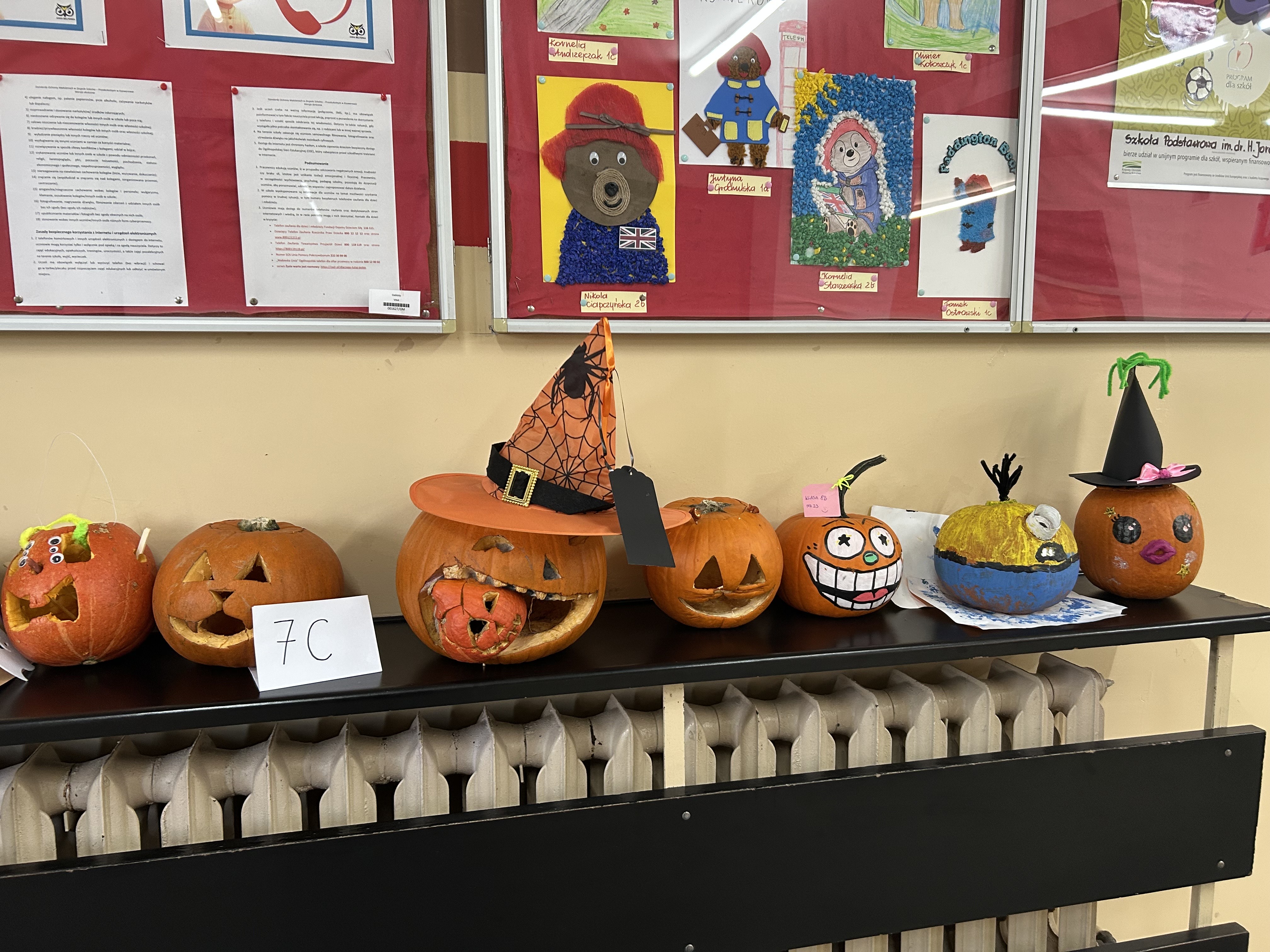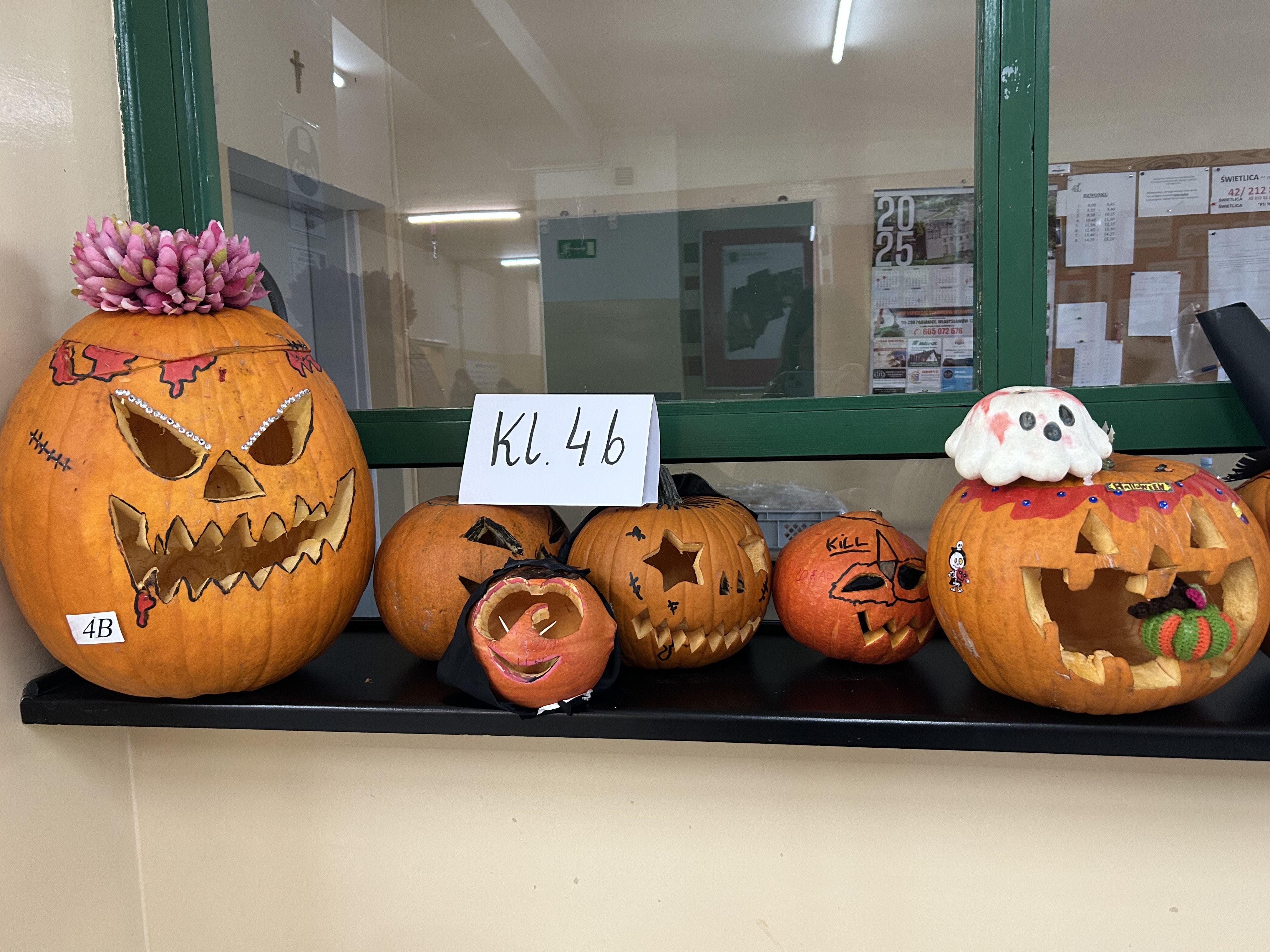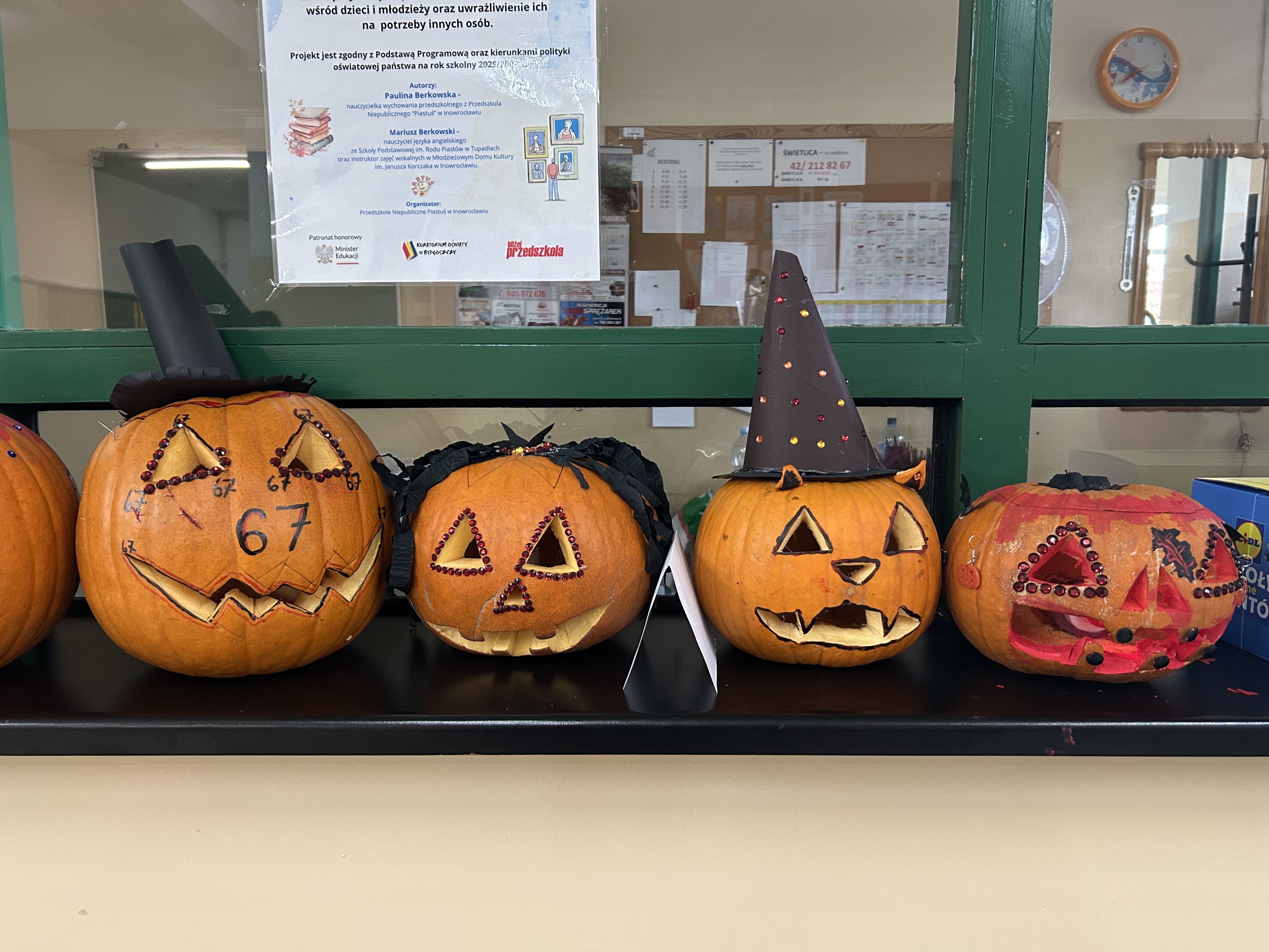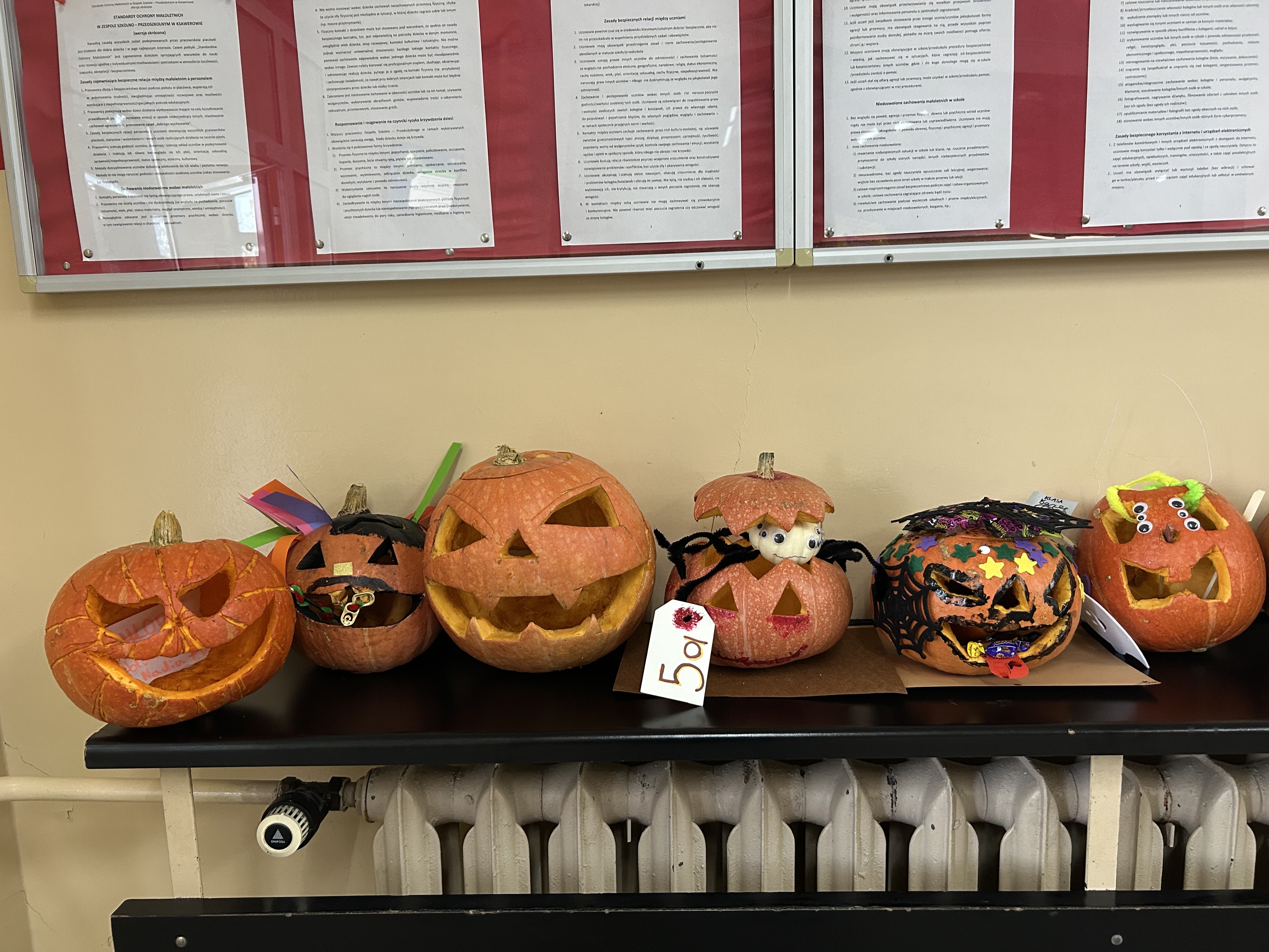 W ostatnim tygodniu października wraz z Samorządem Uczniowskim mogliśmy wziąć udział dyniowym szaleństwie, które polegało na wydrążeniu dyni oraz ozdobieniu jej w niebanalny sposób. Uczniowie wykazali się niezwykłą kreatywnością oraz pomysłami. Niektóre dynie straszyły inne wręcz przeciwnie-przedstawiały się jako sympatyczne istotki. Wszystkie dynie zostały wystawione tuż przy wejściu do naszej szkoły i mogły być podziwiane przez uczniów, rodziców i nauczycieli. Każda klasa została nagrodzona odpowiednią liczbą punktów w ramach konkursu Gospodarz Szkoły za wzięcie udziału w akcji. Natomiast w czwartek 30.10. uczniowie naszej szkoły mogli wziąć udział w październikowej zabawie i przebrać się za ulubione postacie z filmów oraz seriali.