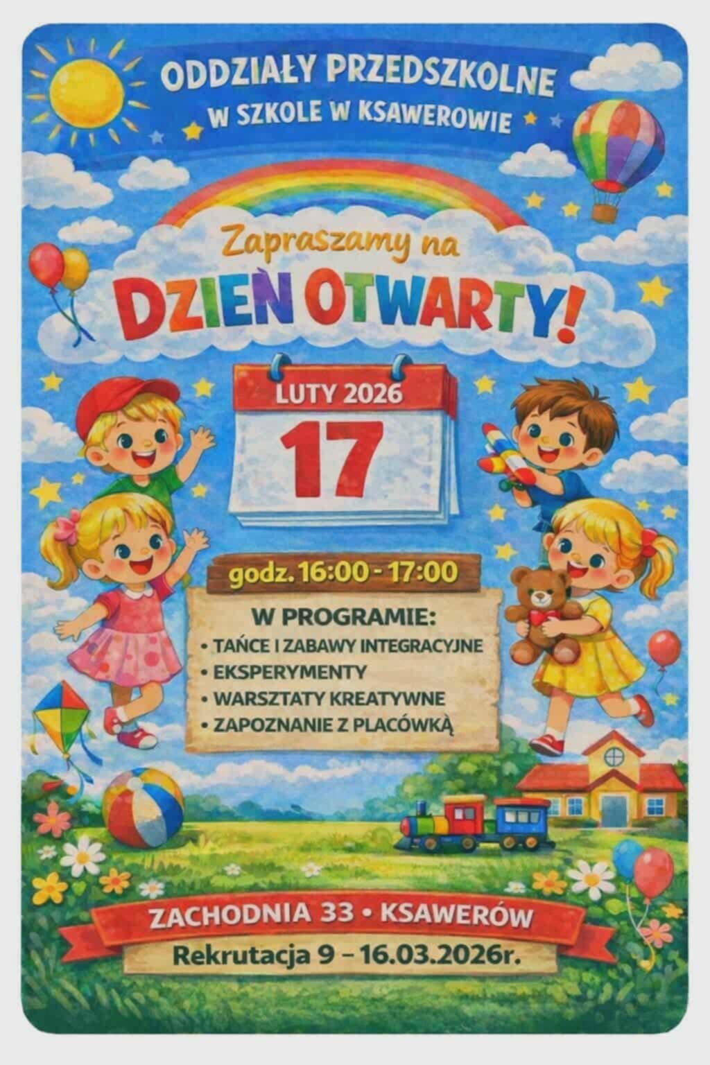 Zapraszamy serdecznie na Dzień Otwarty oddziałów przedszkolnych w Szkole w Ksawerowie. To doskonała okazja, aby poznać nasze sale, zobaczyć, jak pracujemy z dziećmi, porozmawiać z nauczycielami i poczuć wyjątkową atmosferę miejsca, w którym najmłodsi rozwijają swoje talenty i ciekawość świata.