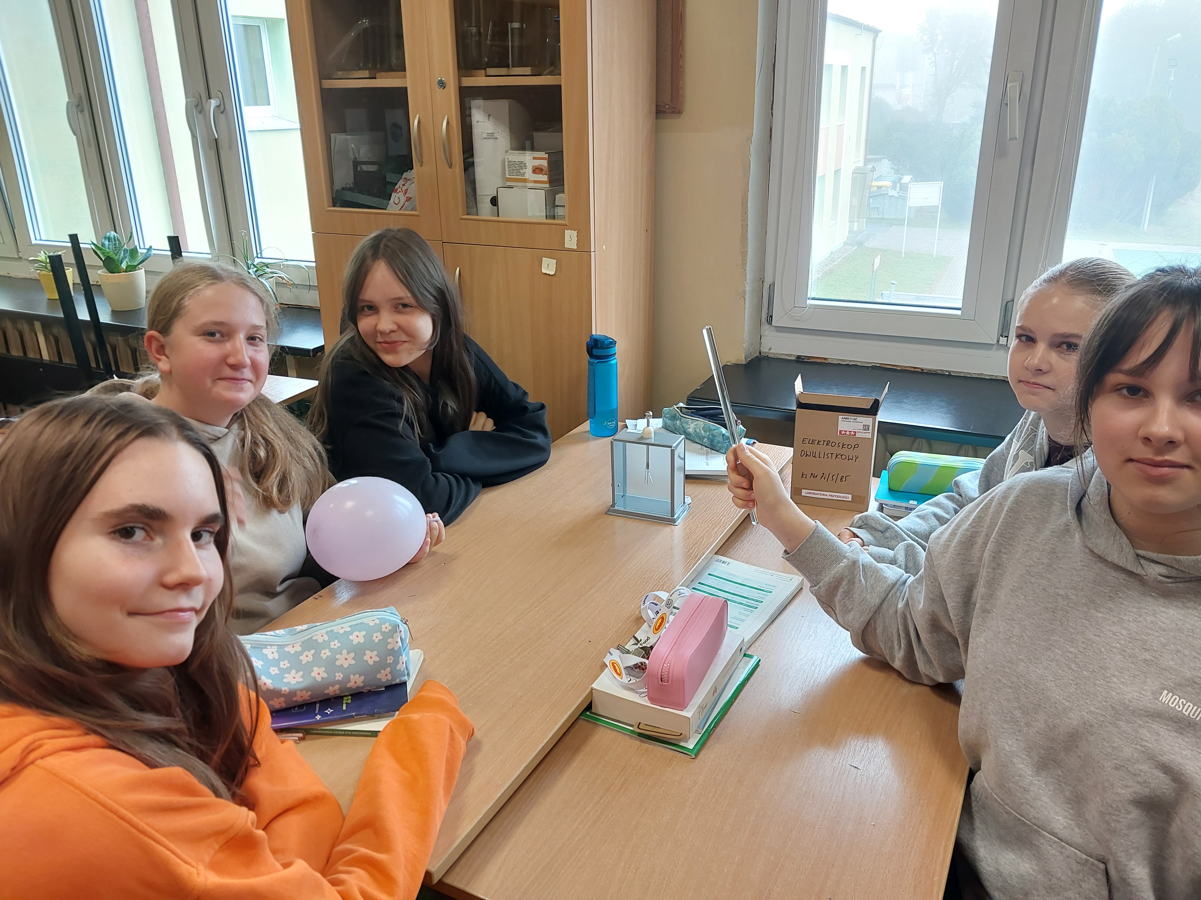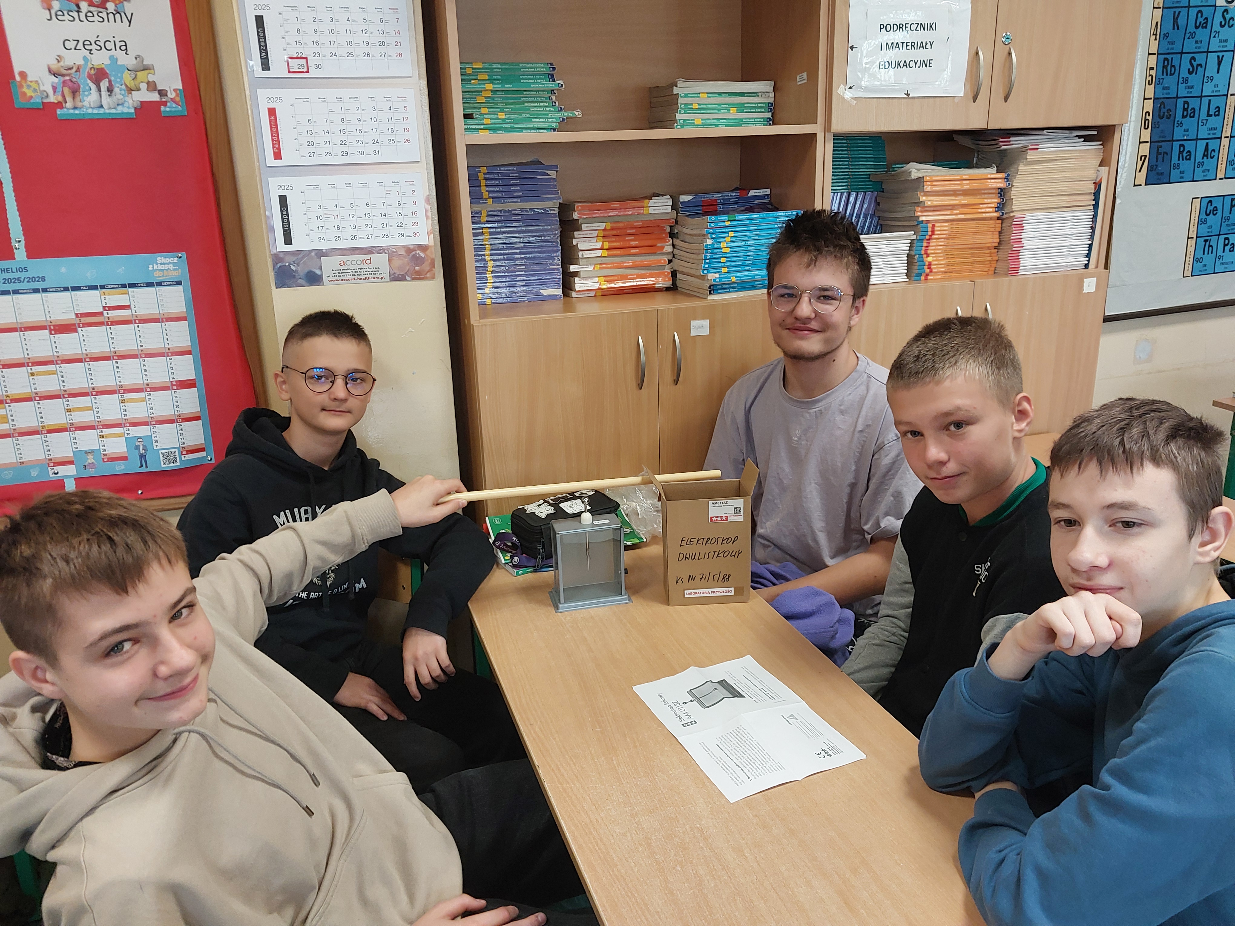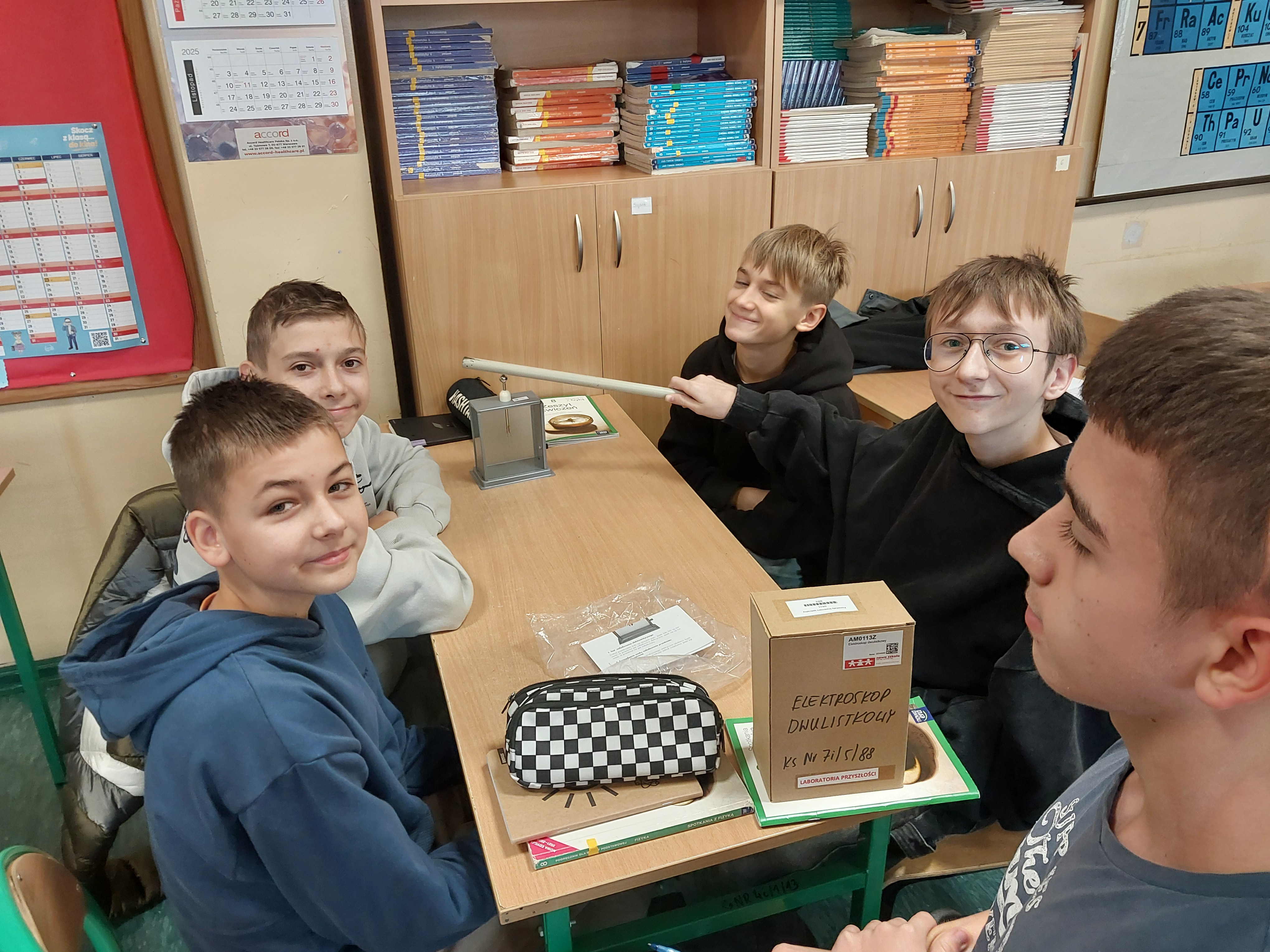 W dn. 15.10.2025 (8b) i 20.10.2025 (8a, 8c) uczniowie pracowali z elektroskopami zakupionymi w ramach programu Laboratoria Przyszłości. Na innych zajęć wykonywali również własne elektroskopy.