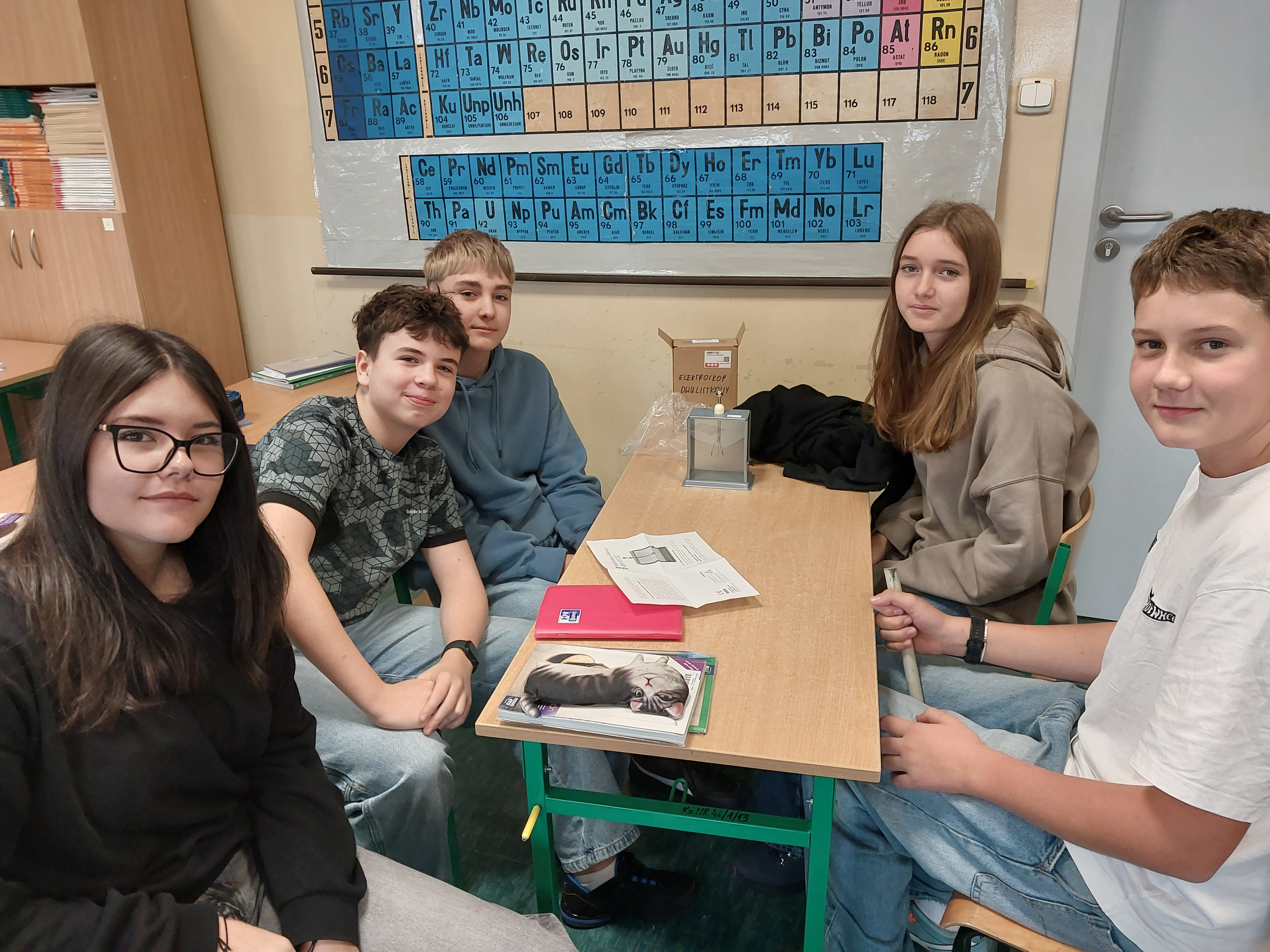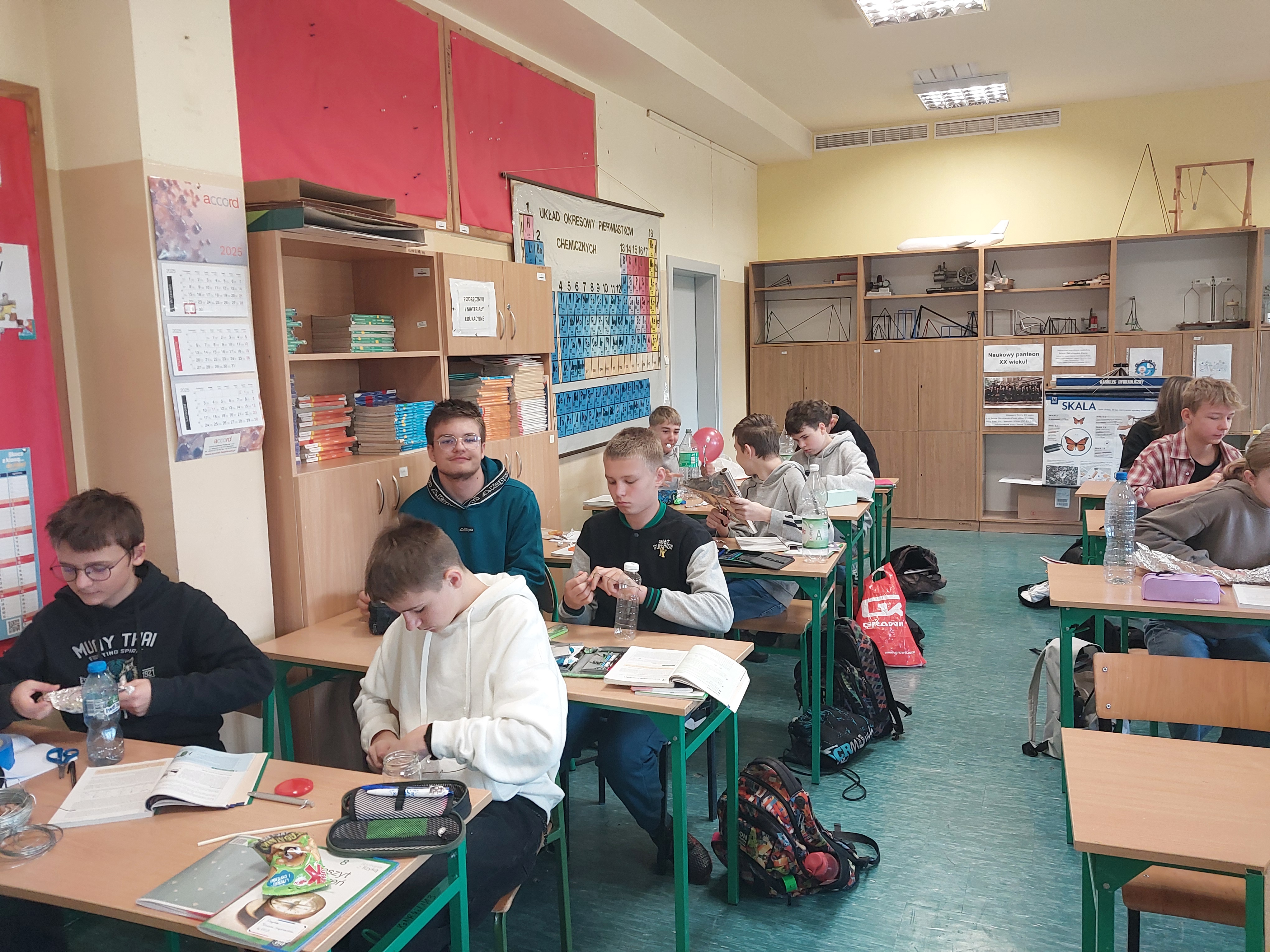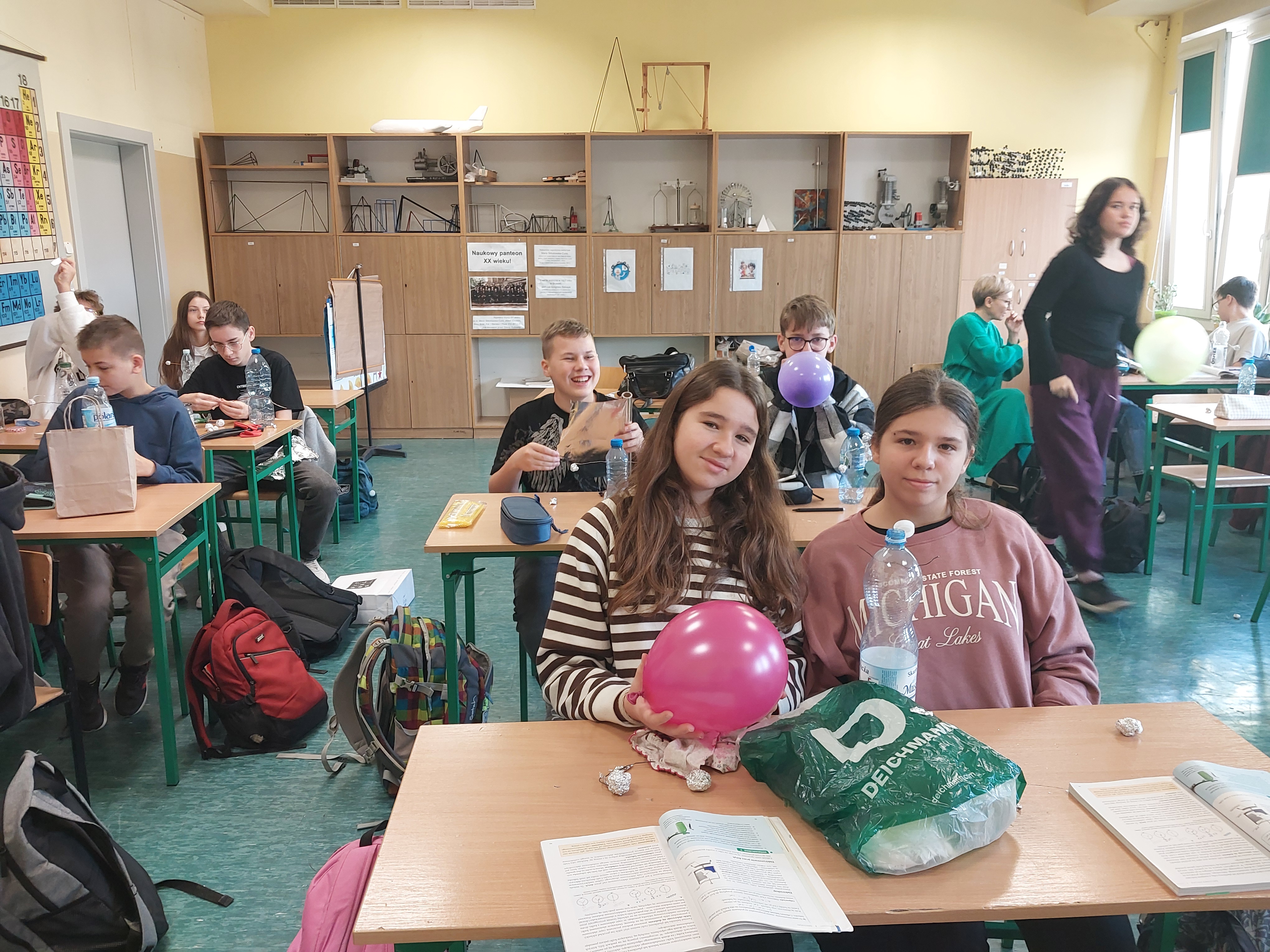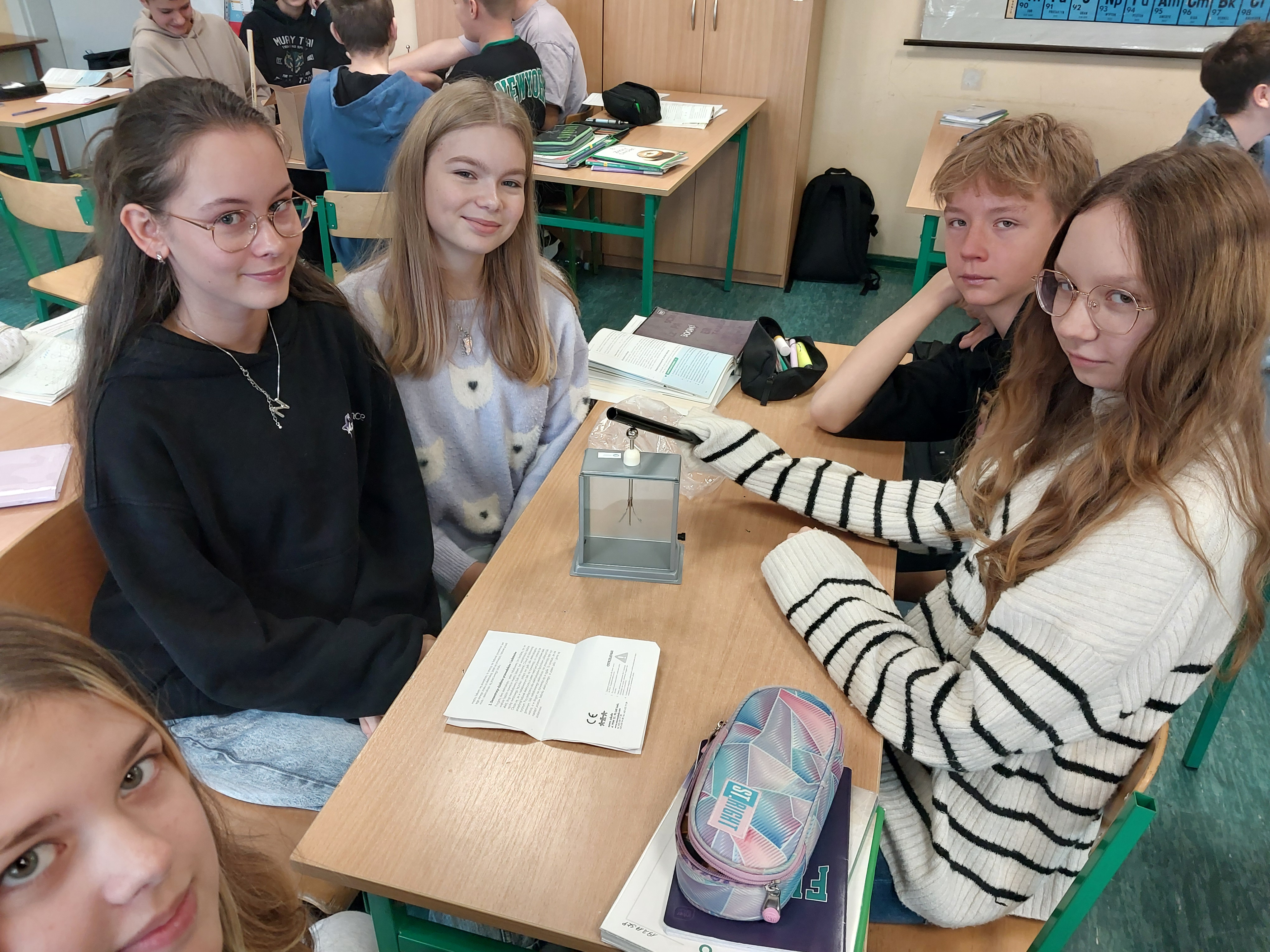 W dn. 15.10.2025 (8b) i 20.10.2025 (8a, 8c) uczniowie pracowali z elektroskopami zakupionymi w ramach programu Laboratoria Przyszłości. Na innych zajęć wykonywali również własne elektroskopy.