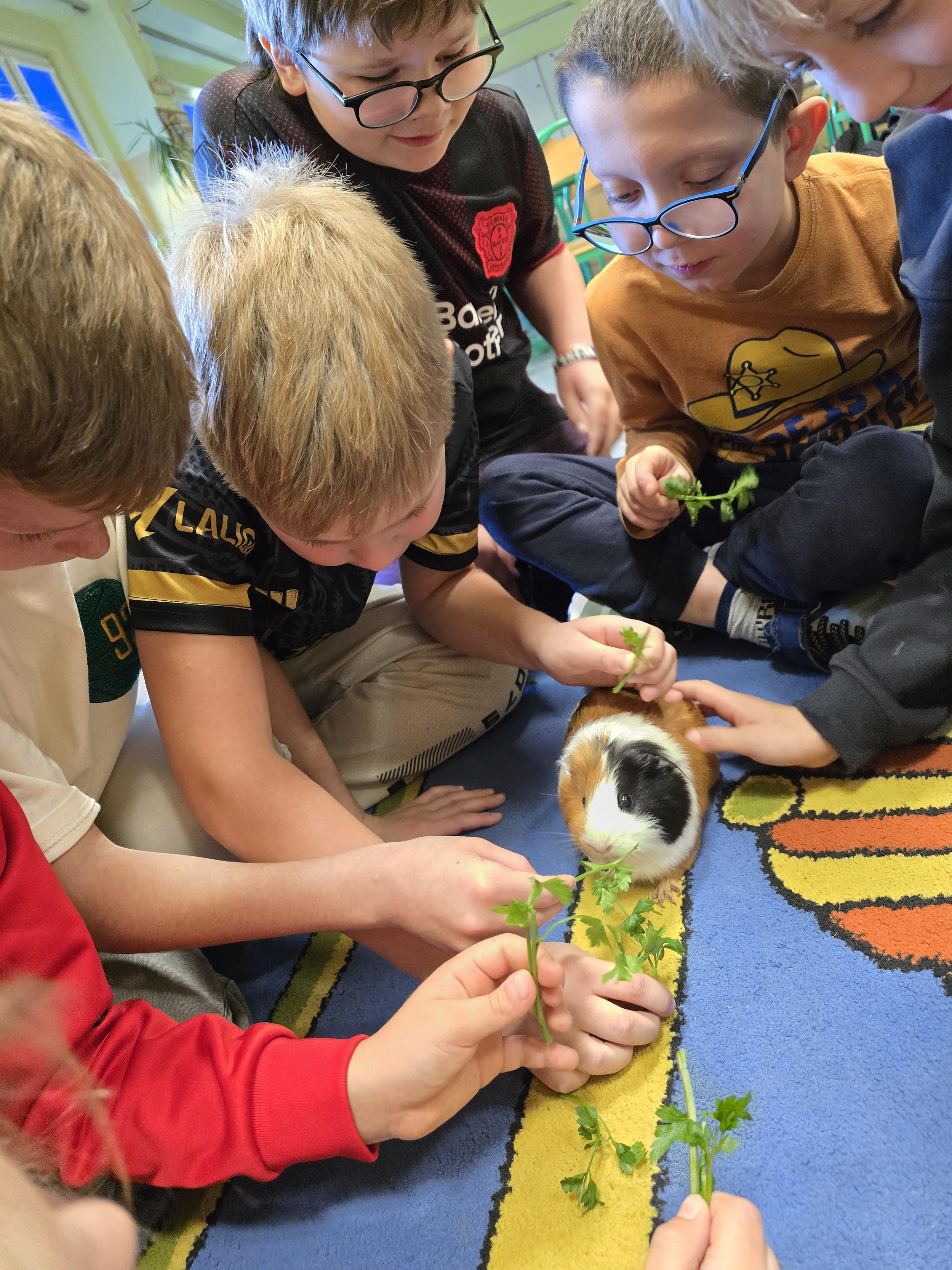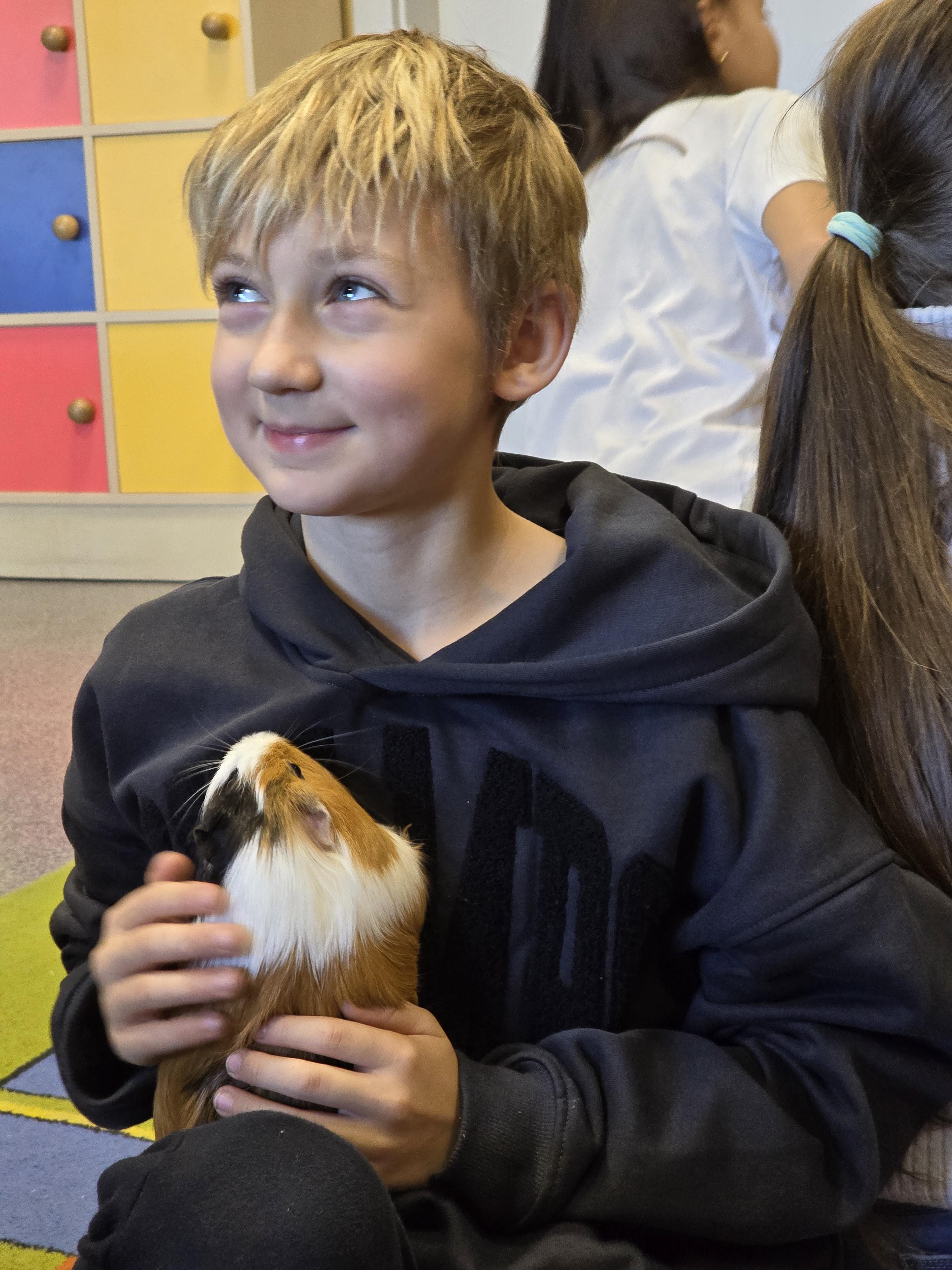 Rysiek Garstka wspólnie z mamą Magdą opowiadali o kawiach domowych czyli świnkach morskich, które przynieśli do klasy ku uciesze wszystkich dzieciaków.