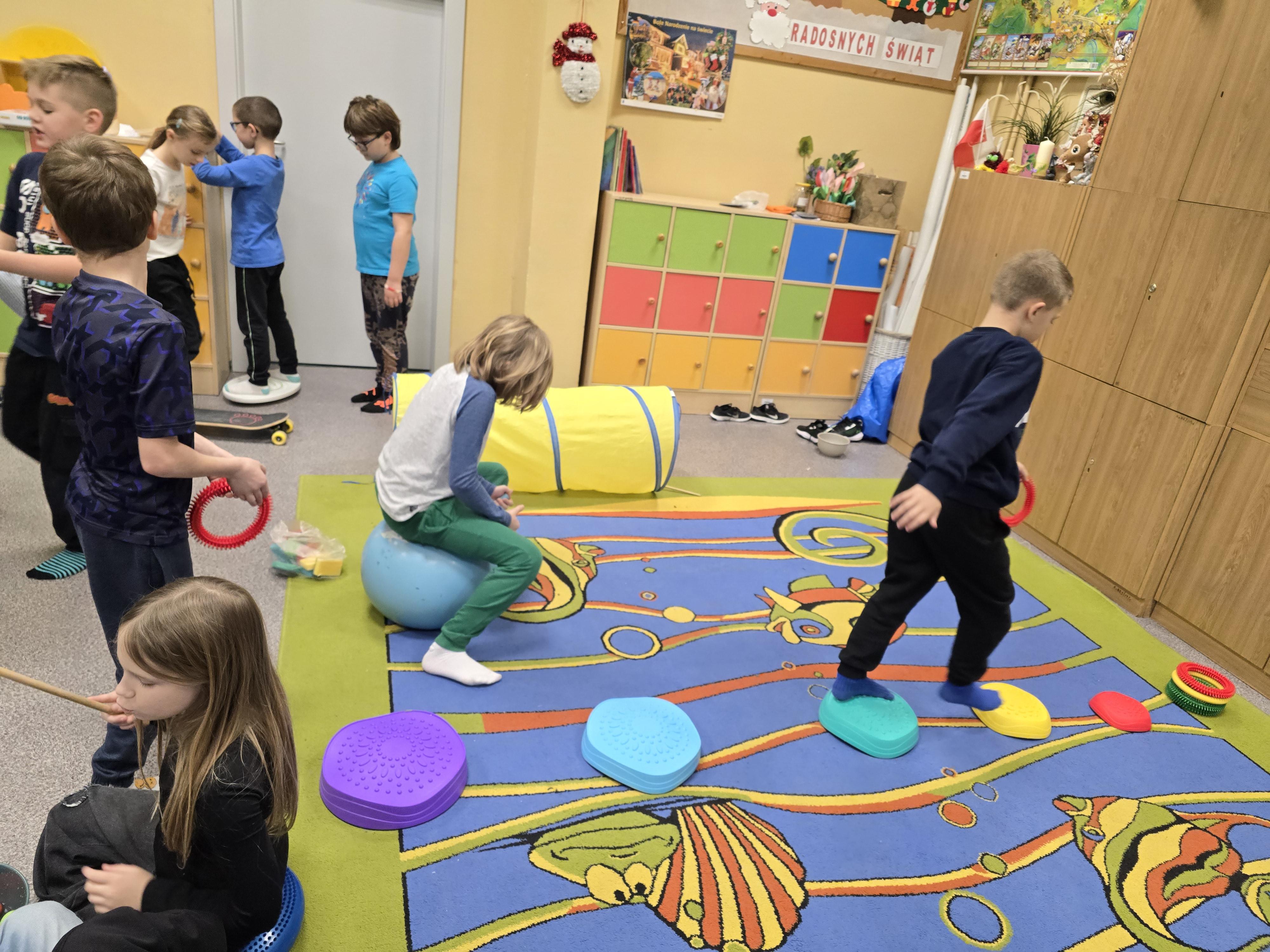 Dzięki spotkaniu z Panią Martą Widerą - terapeutą integracji sensorycznej – mamą Klary, cała klasa aktywnie uczestniczyła w niesamowitych sensorycznych zajęciach zespołowych z ciekawym sprzętem.