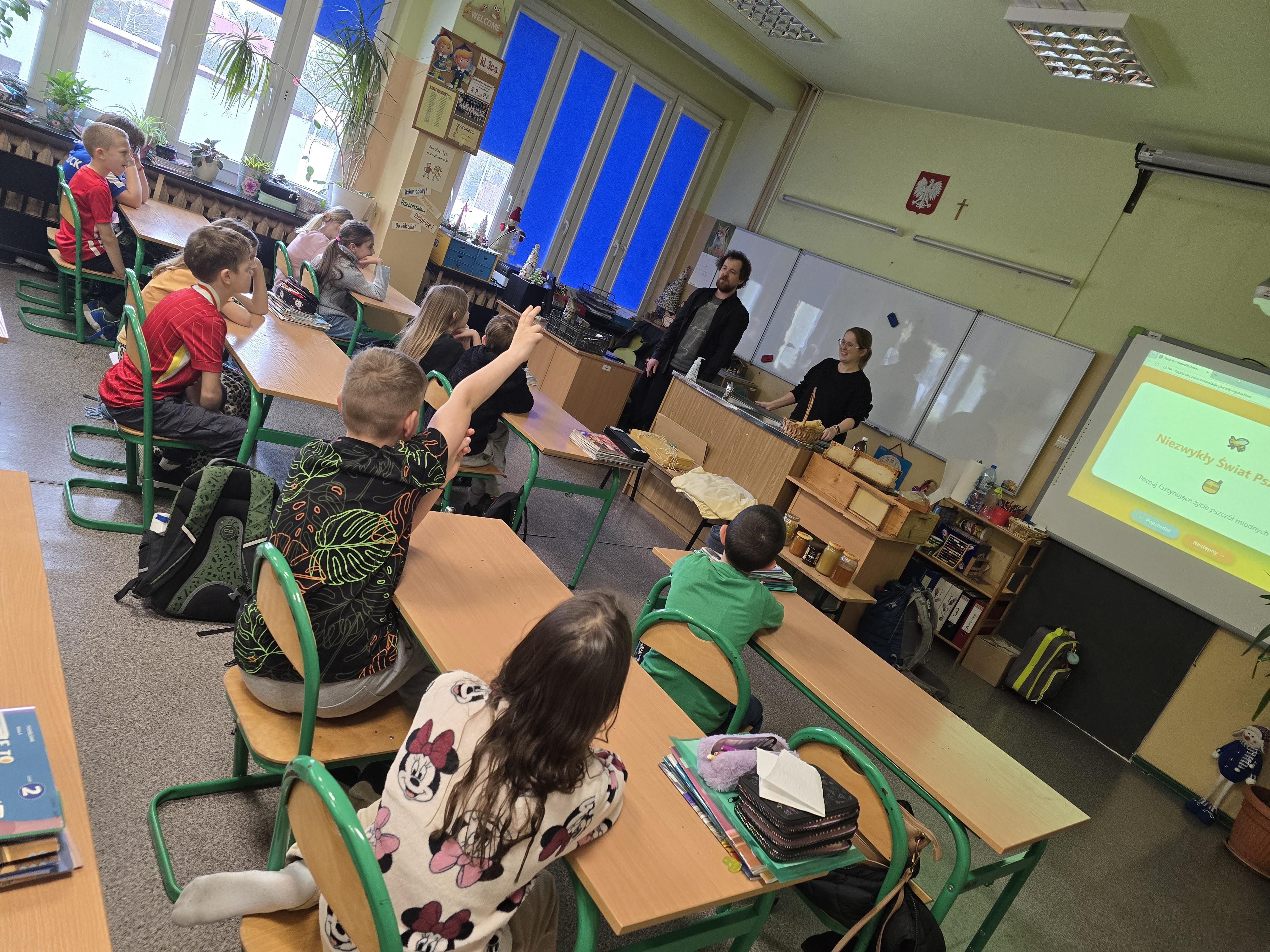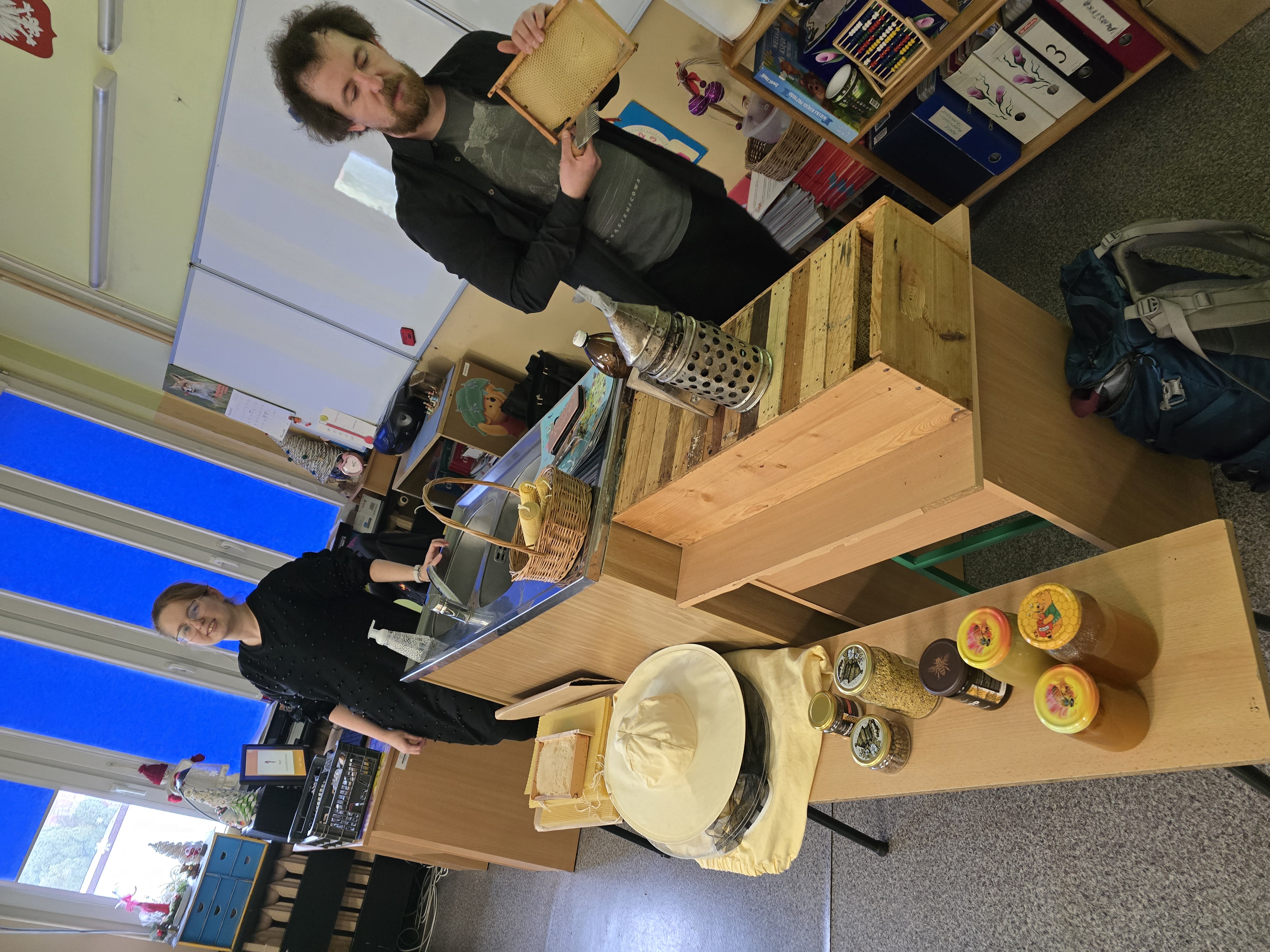 Kiedy zabłysła gwiazda Adama Smoka w szkole pojawiła się jego mama Agnieszka i wujek Przemysław Zglinicki, który jest właścicielem małej pasieki w Ksawerowie. Wspólnie poprowadzili zajęcia pokazowe i praktyczne na temat pszczół oraz warsztaty samodzielnego wykonywania świec z wosku pszczelego.
