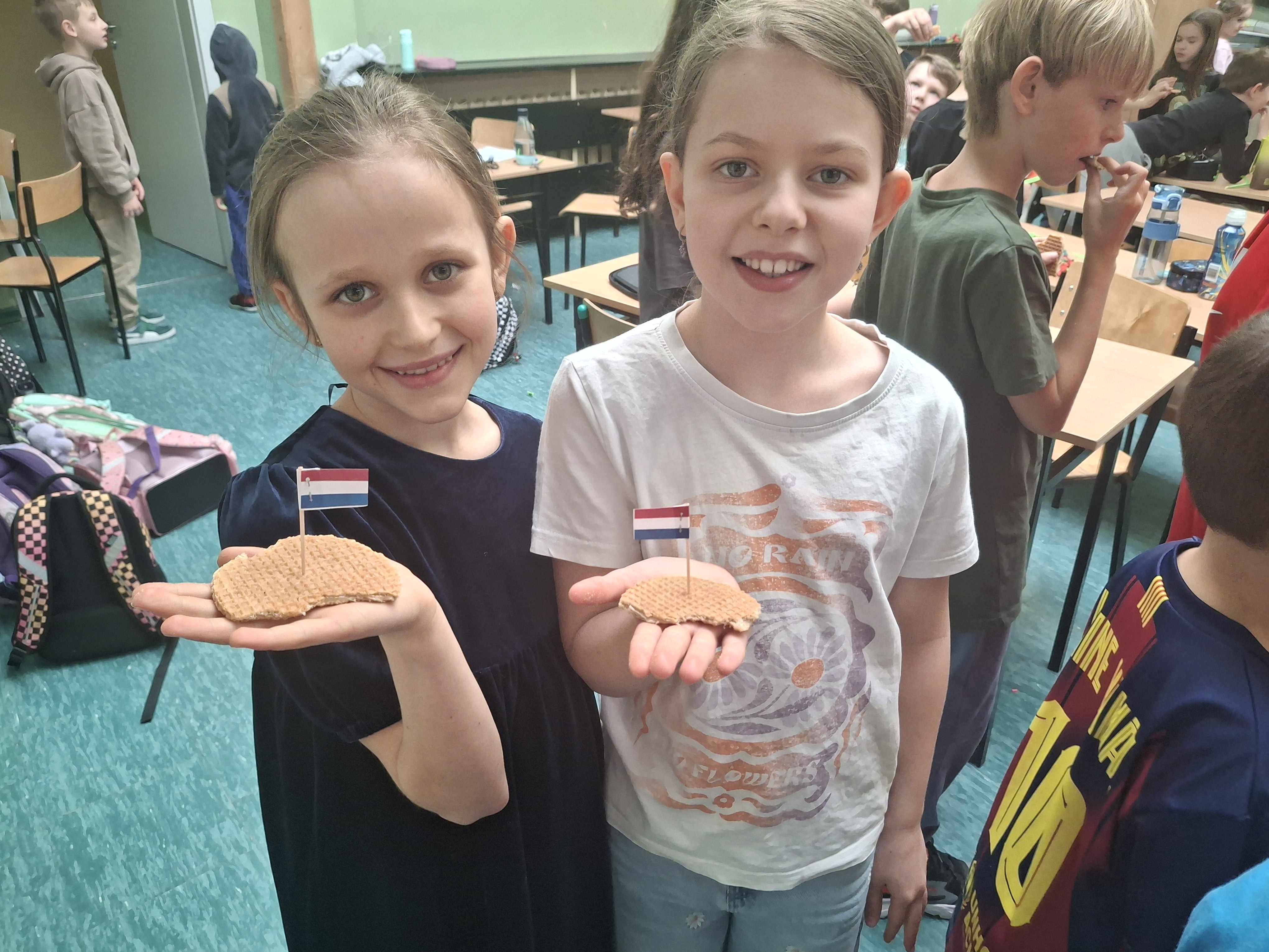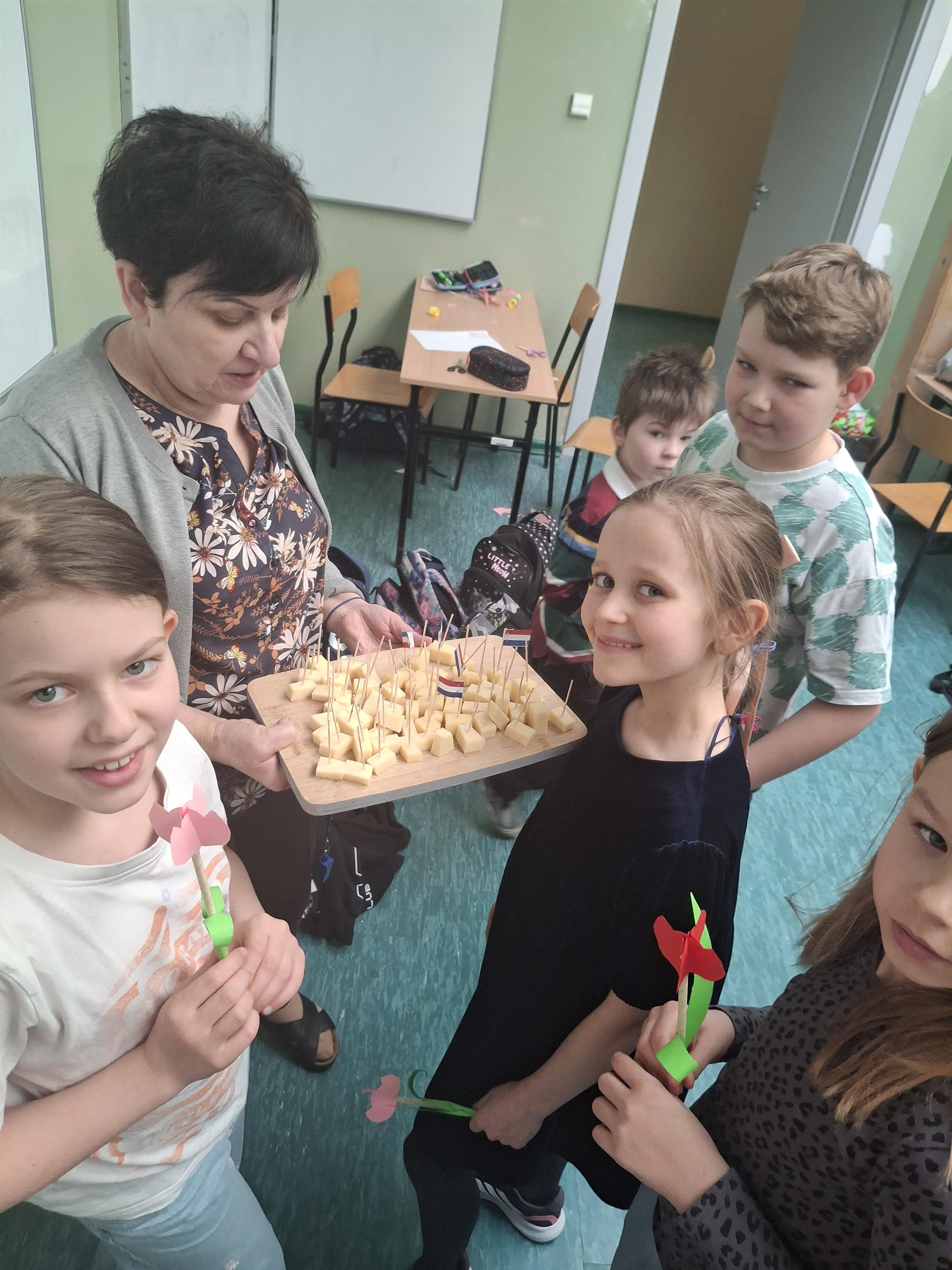 Najwięcej emocji wzbudziła jednak część kulinarna. Jak na prawdziwą podróż przystało, nie mogło zabraknąć degustacji! Uczniowie mieli okazję spróbować: słynnych holenderskich serów (Gouda i Edam), poznając ich delikatny smak, słodkich wafli Stroopwafel z karmelowym nadzieniem, które okazały się absolutnym hitem dnia!