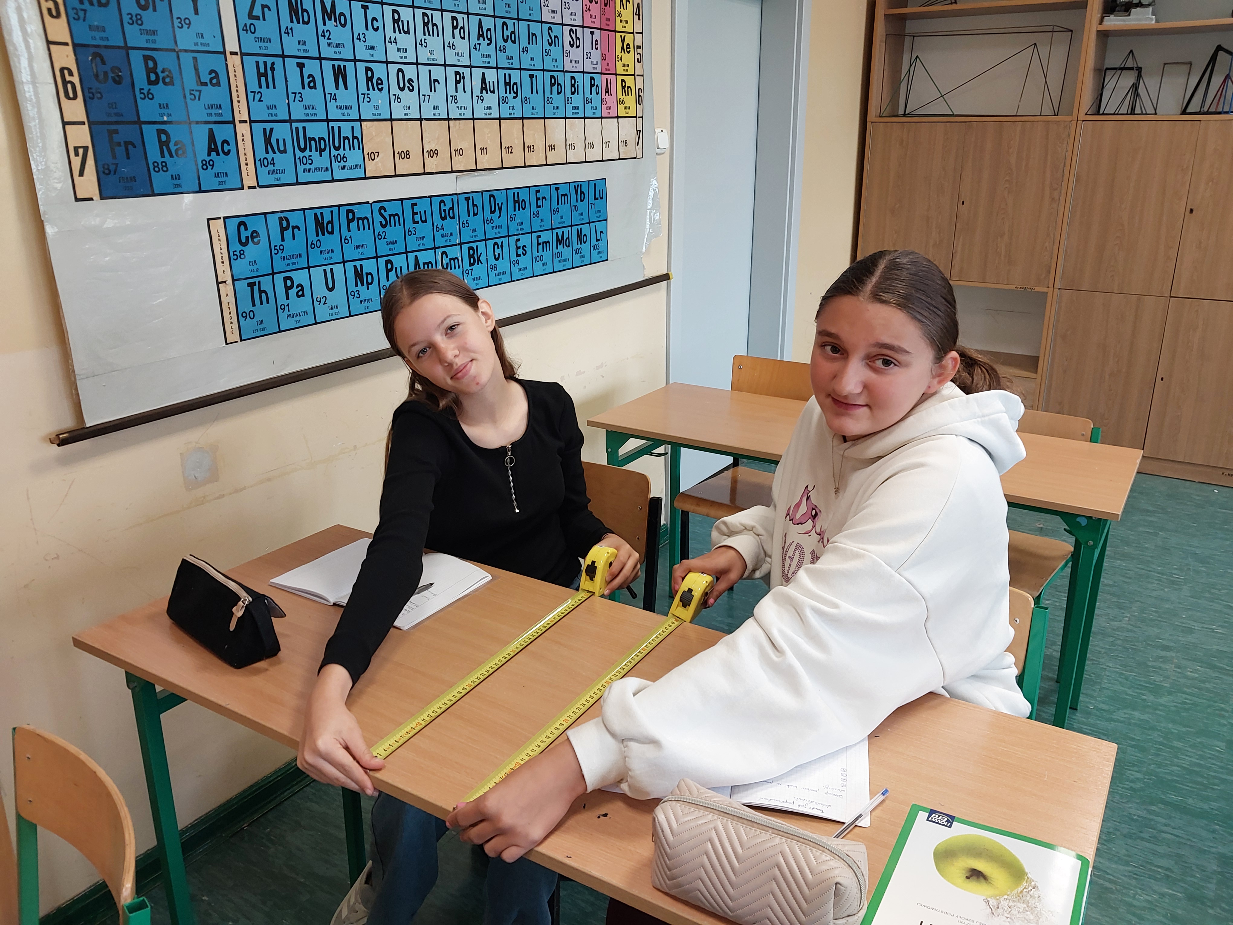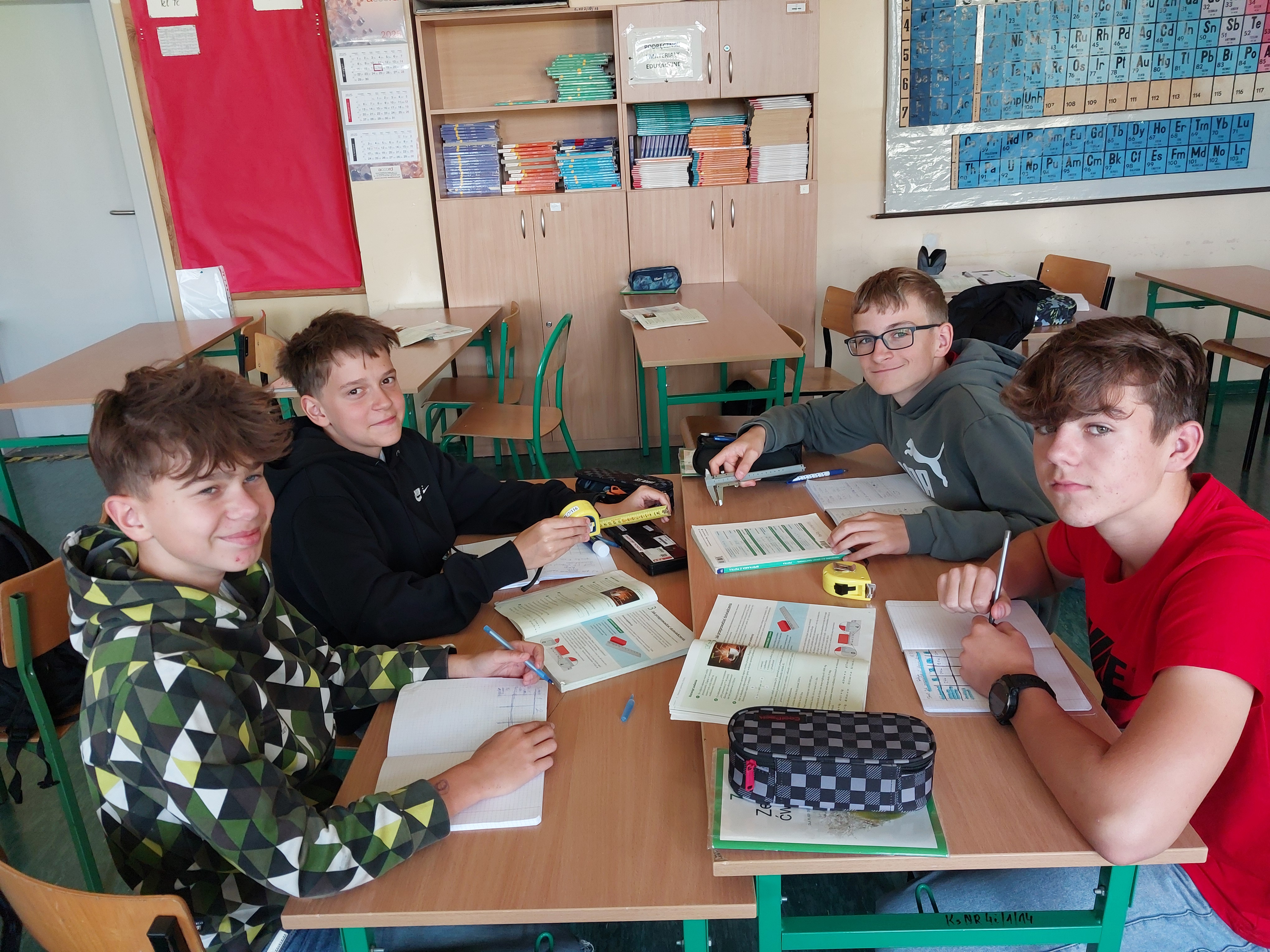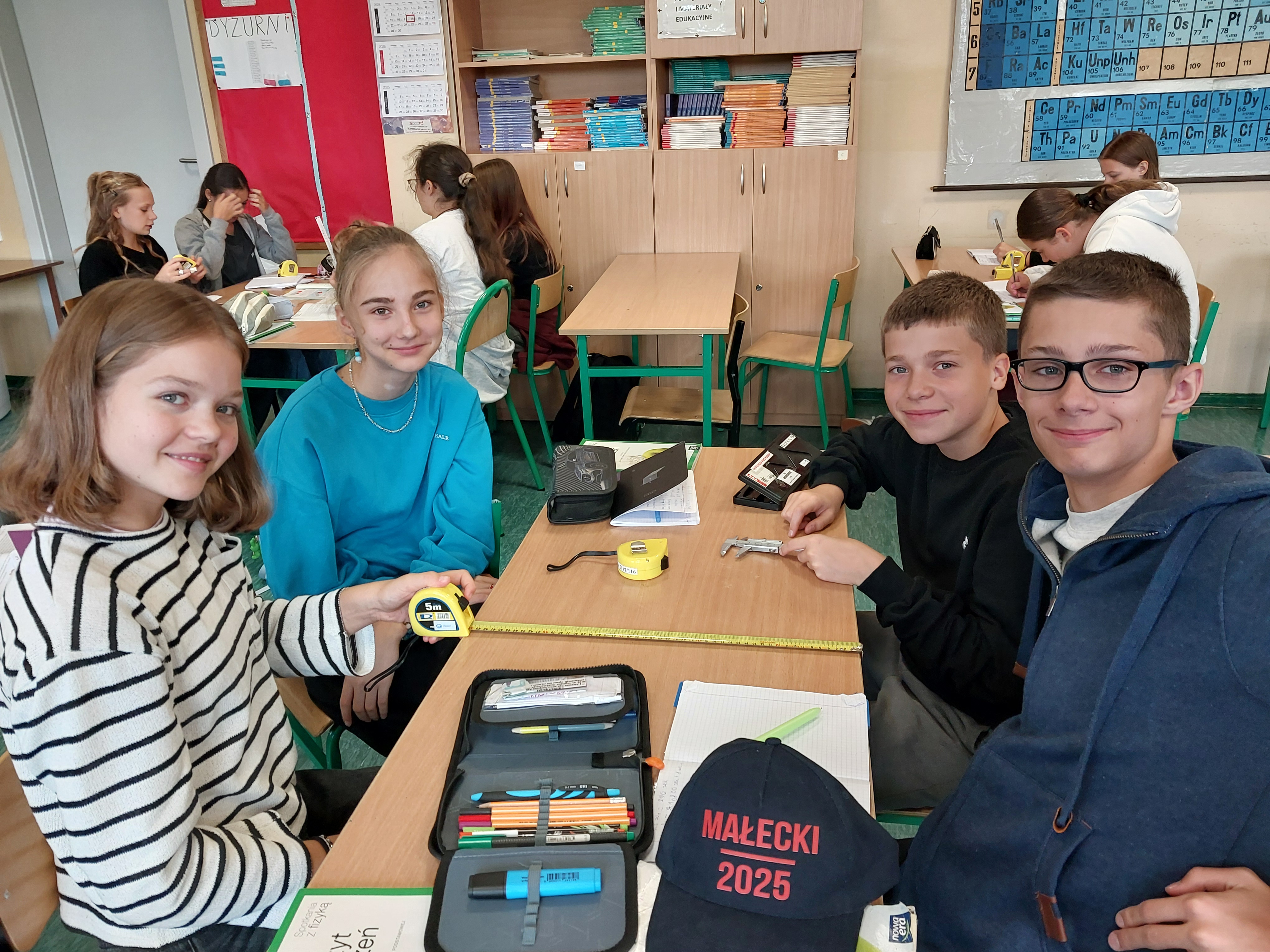 W dn. 16.09.2025 (7a), 19.09.2025 (7b), 18.09.2025 (7c) uczniowie zapoznawali się z przyrządami pomiarowymi i dokonywali różnych pomiarów. Podczas zajęć wykorzystali taśmy miernicze i suwmiarki zakupione w ramach programu Laboratoria Przyszłości.