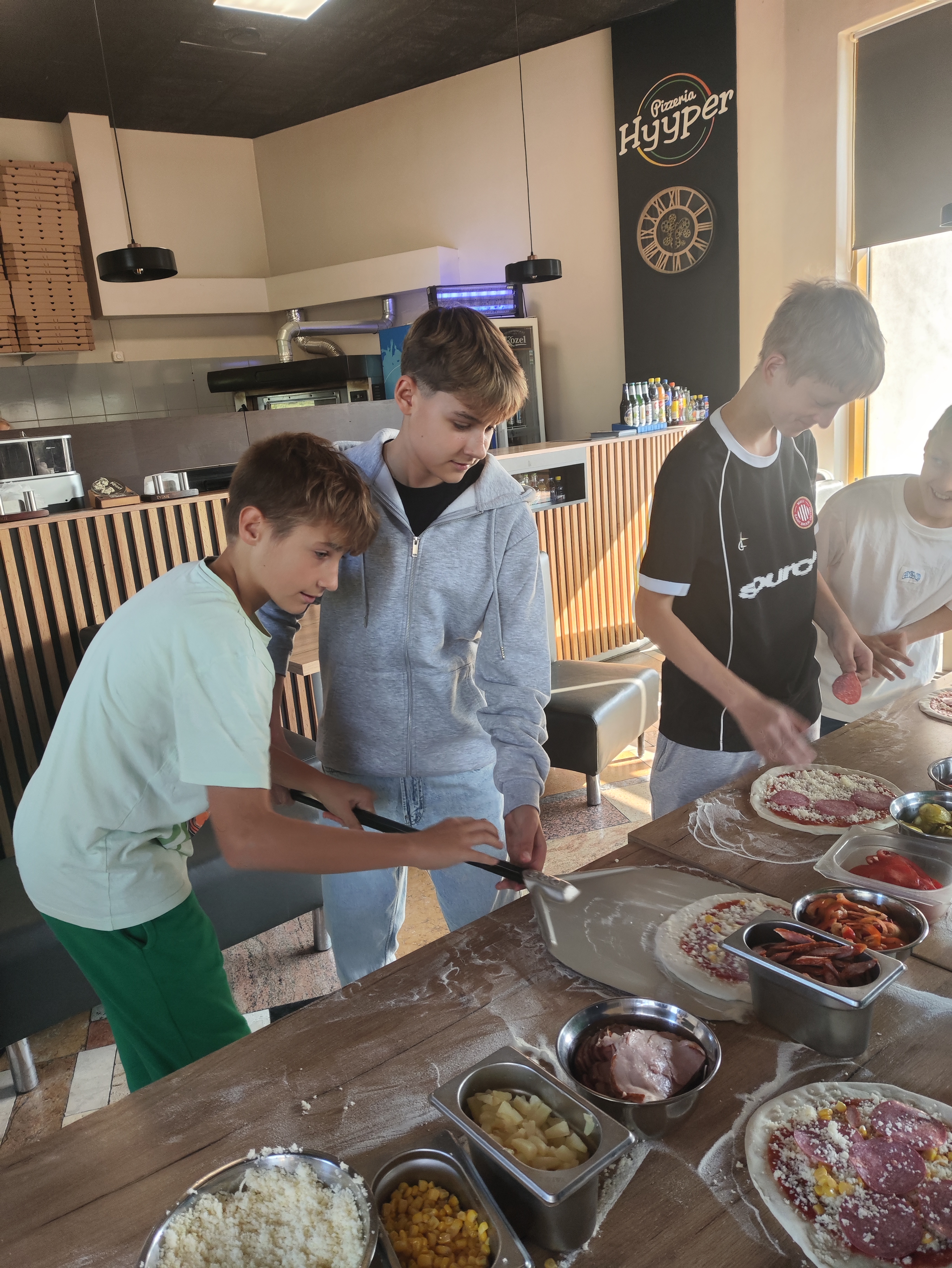 2.10.2025r. uczniowie klasy 7a pod opieką pani Agnieszki Owczarek oraz pani Iwony Cieślińskiej uczestniczyli w warsztatach przygotowania i wypieku pizzy. Zajęcia odbyły się w pizzerii Hyyper w Ksawerowie. Podczas warsztatów uczestnicy poznali historię powstania pizzy oraz tajniki jej formowania. Następnie każdy uczeń samodzielnie skomponował i wykonał pyszną pizzę. Uczniom bardzo się podobało, co widać na zdjęciach :-)