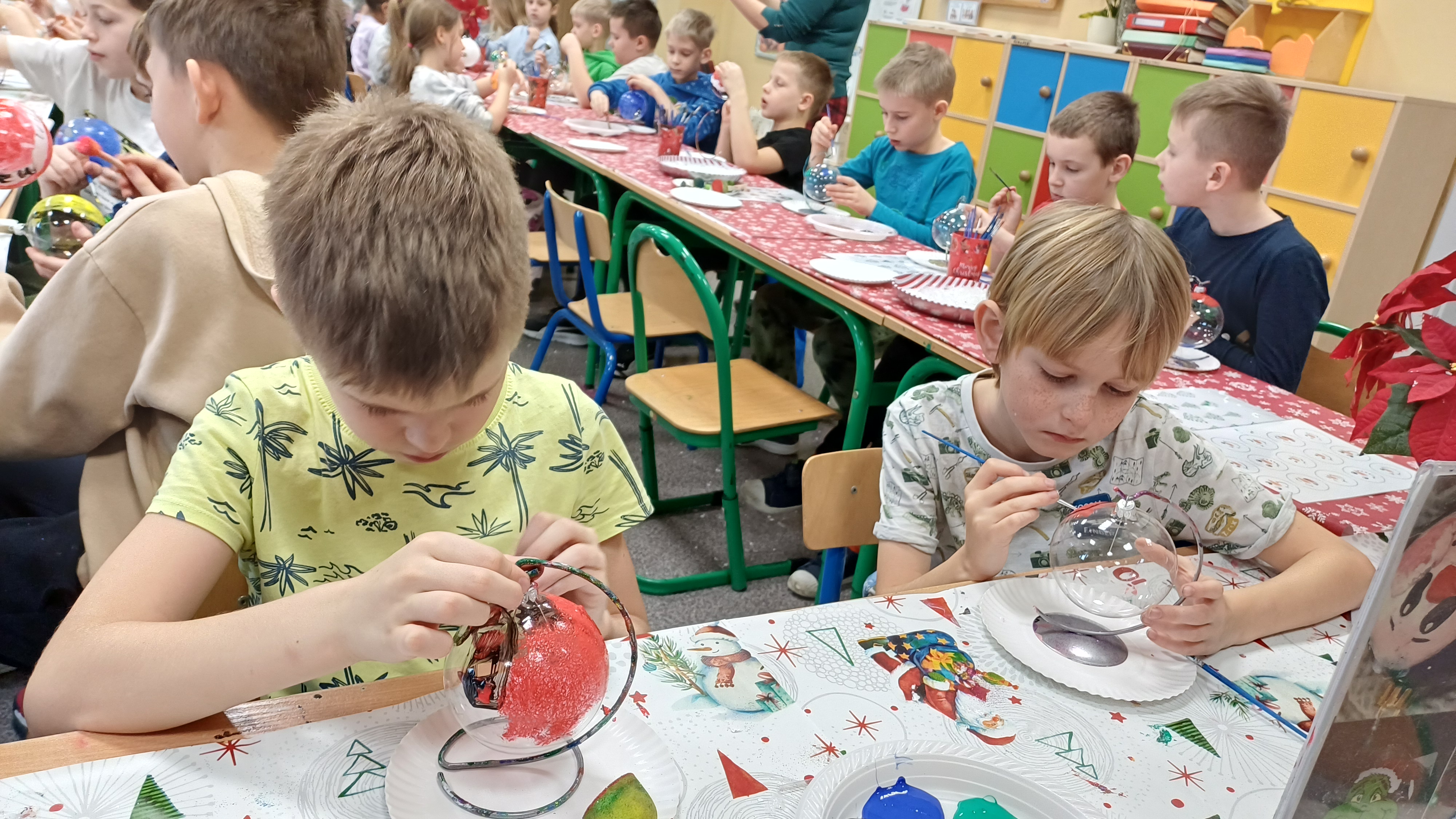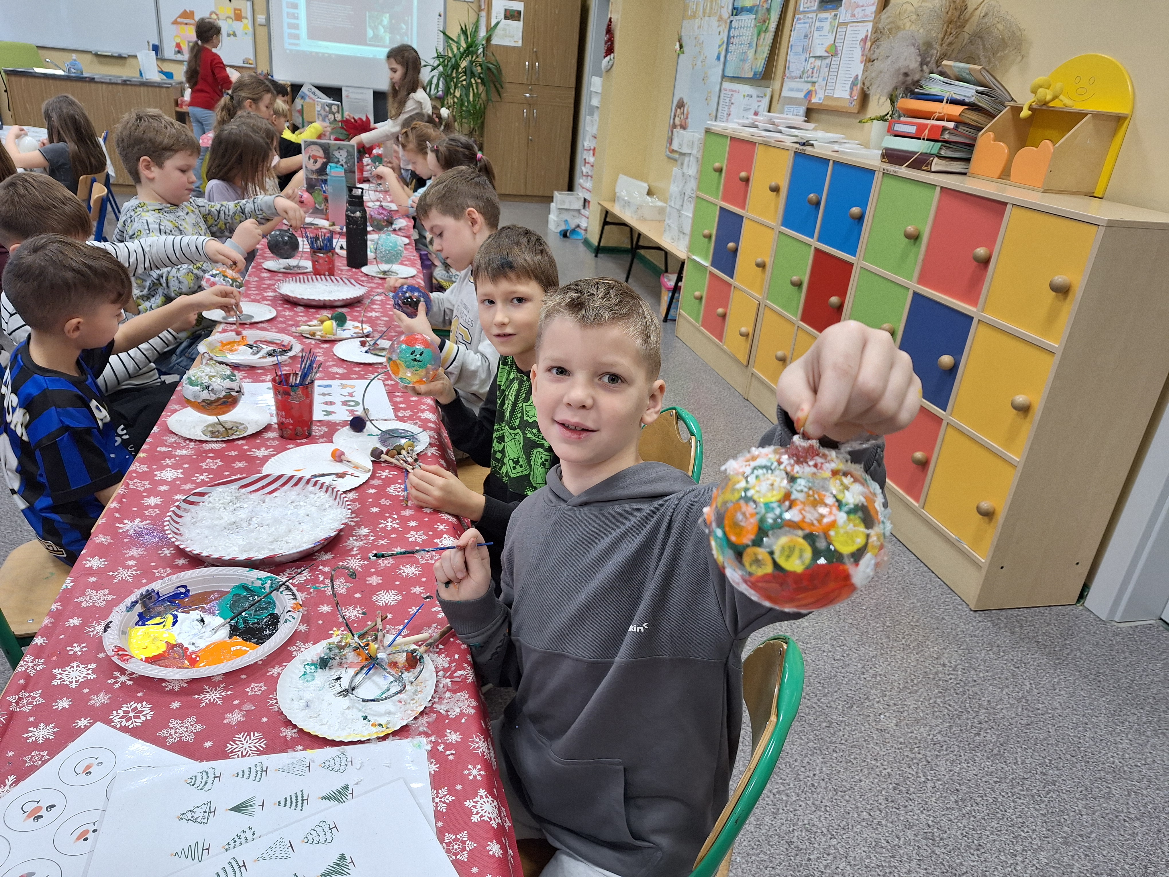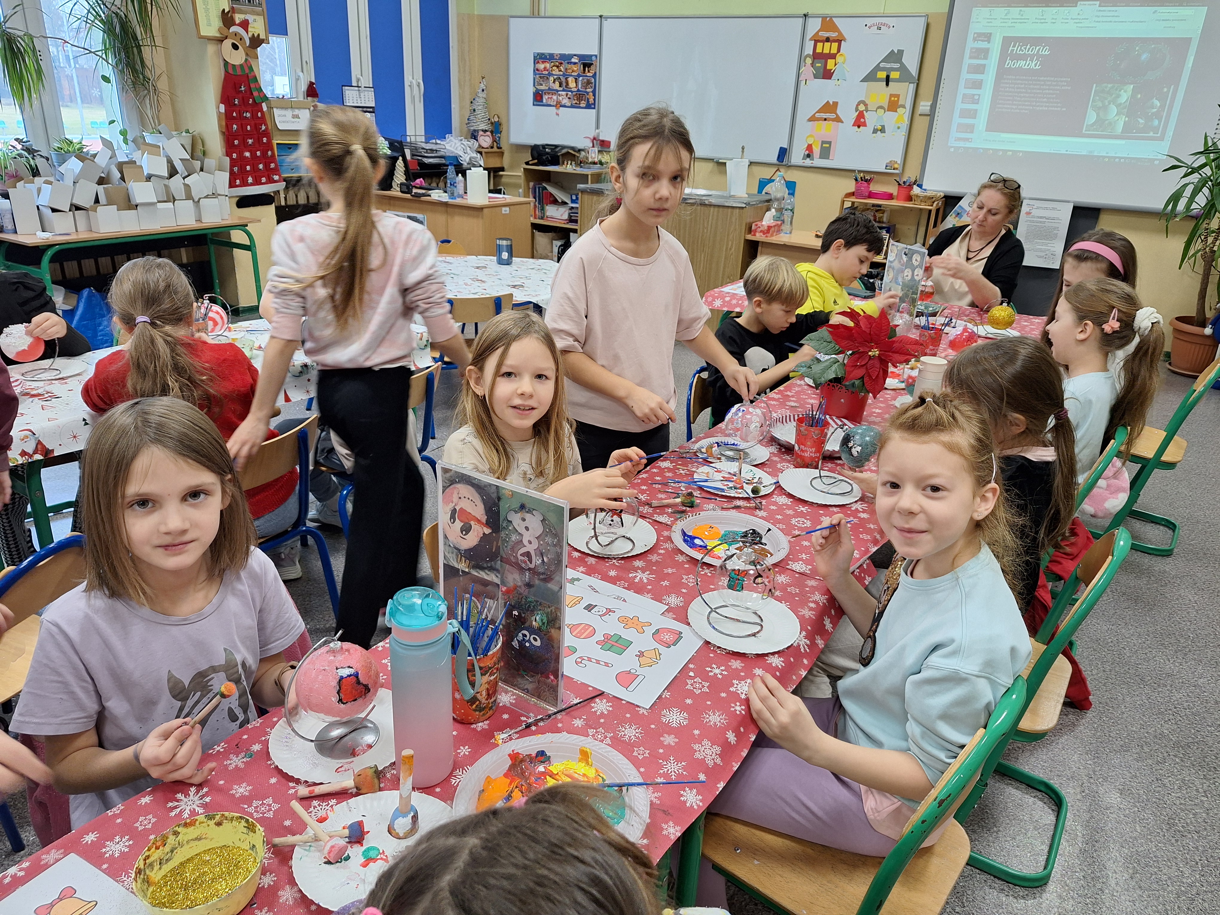 Tuż przed świętami odbyły się warsztaty malowania bombek.