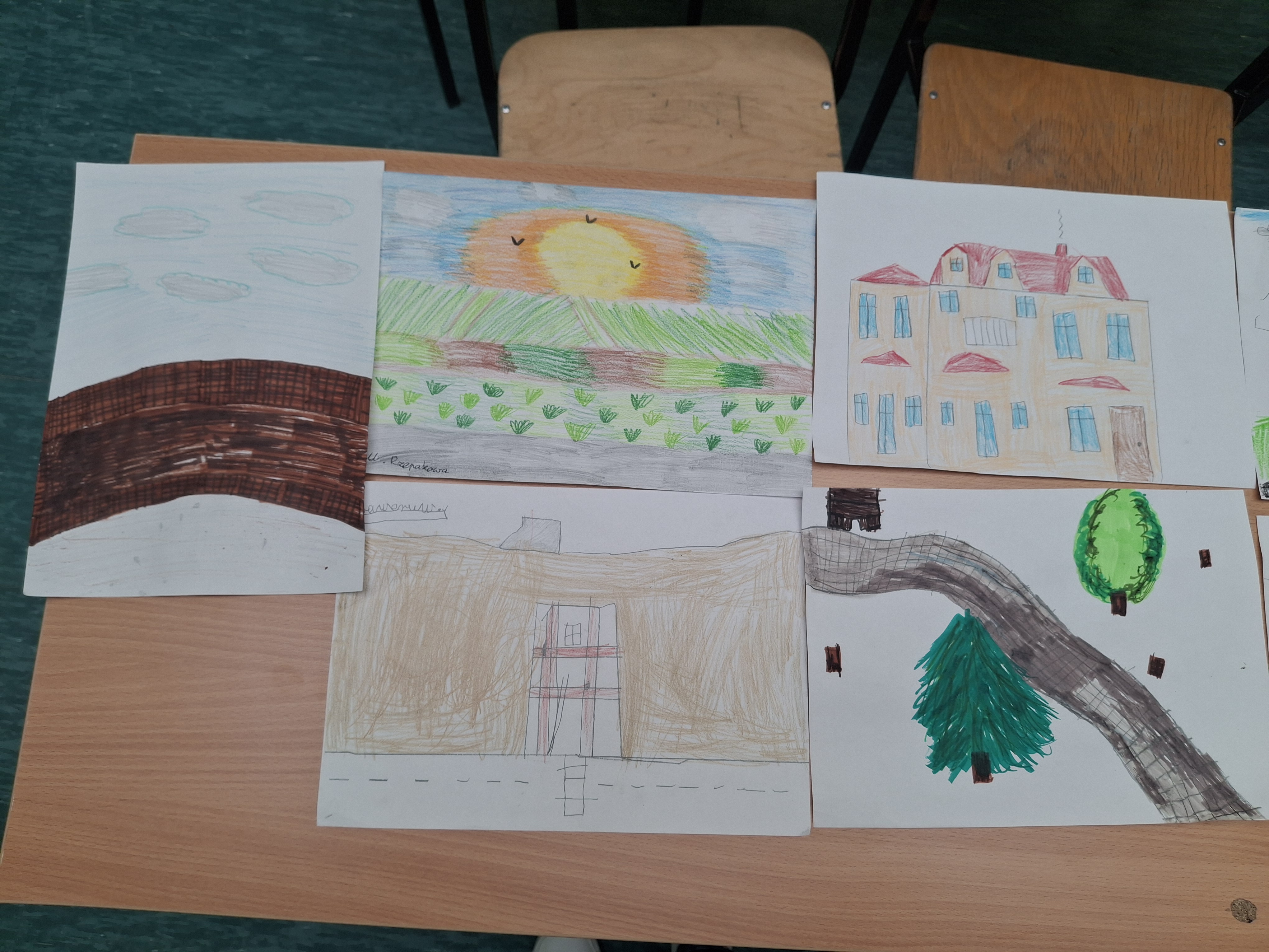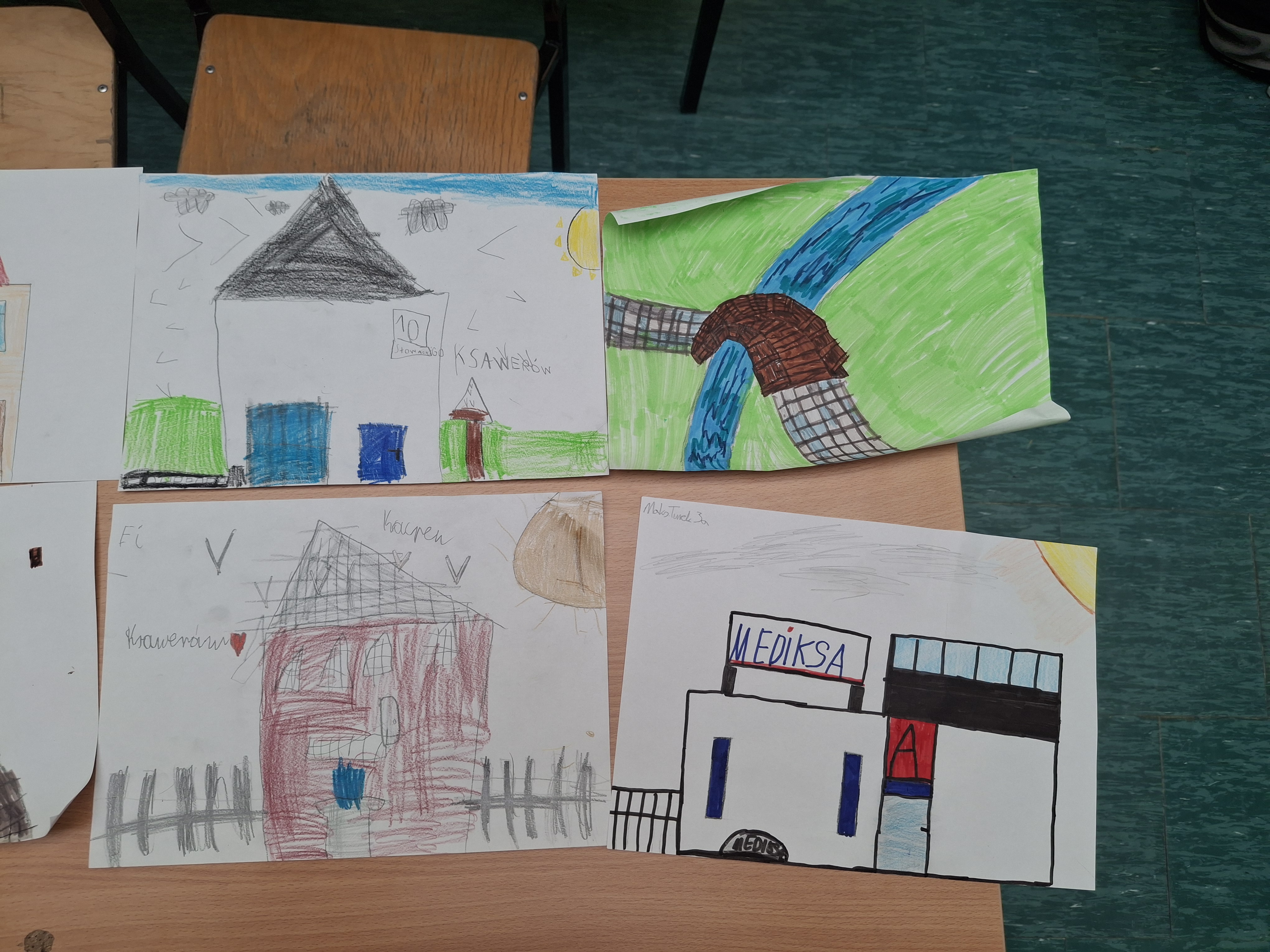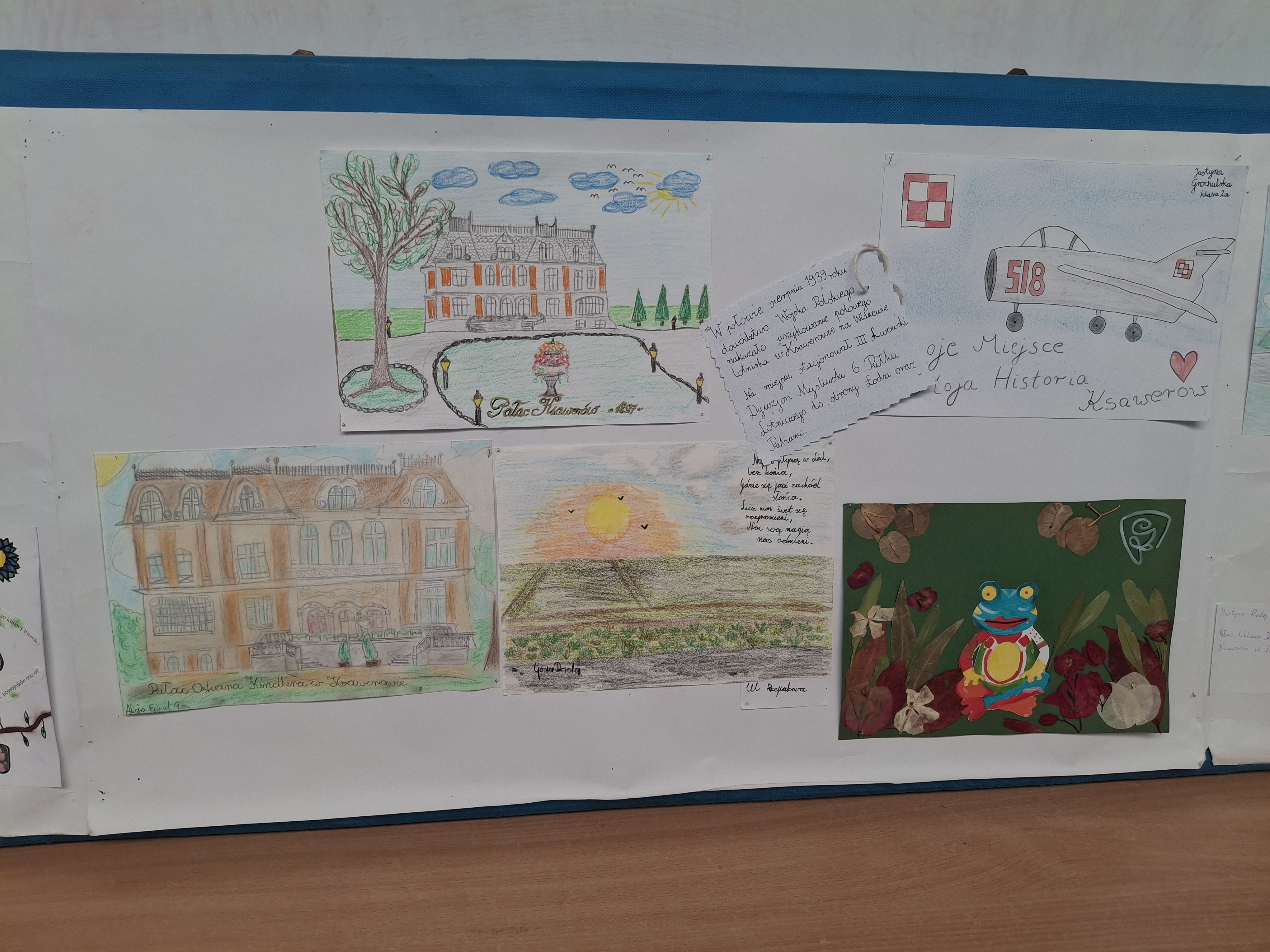 Realizacja zadania: "Moja okolica". Ksawerów - moja mała ojczyzna : burza mózgów: „Z czym kojarzy mi się nasza miejscowość? Oglądanie herbu miejscowości, kolorowanie herbu miejscowości. "Najciekawsze miejsca w Ksawerowie" - stworzenie pracy plastycznej z charakterystycznym miejscem Ksawerowa. Wystawa prac uczniów.