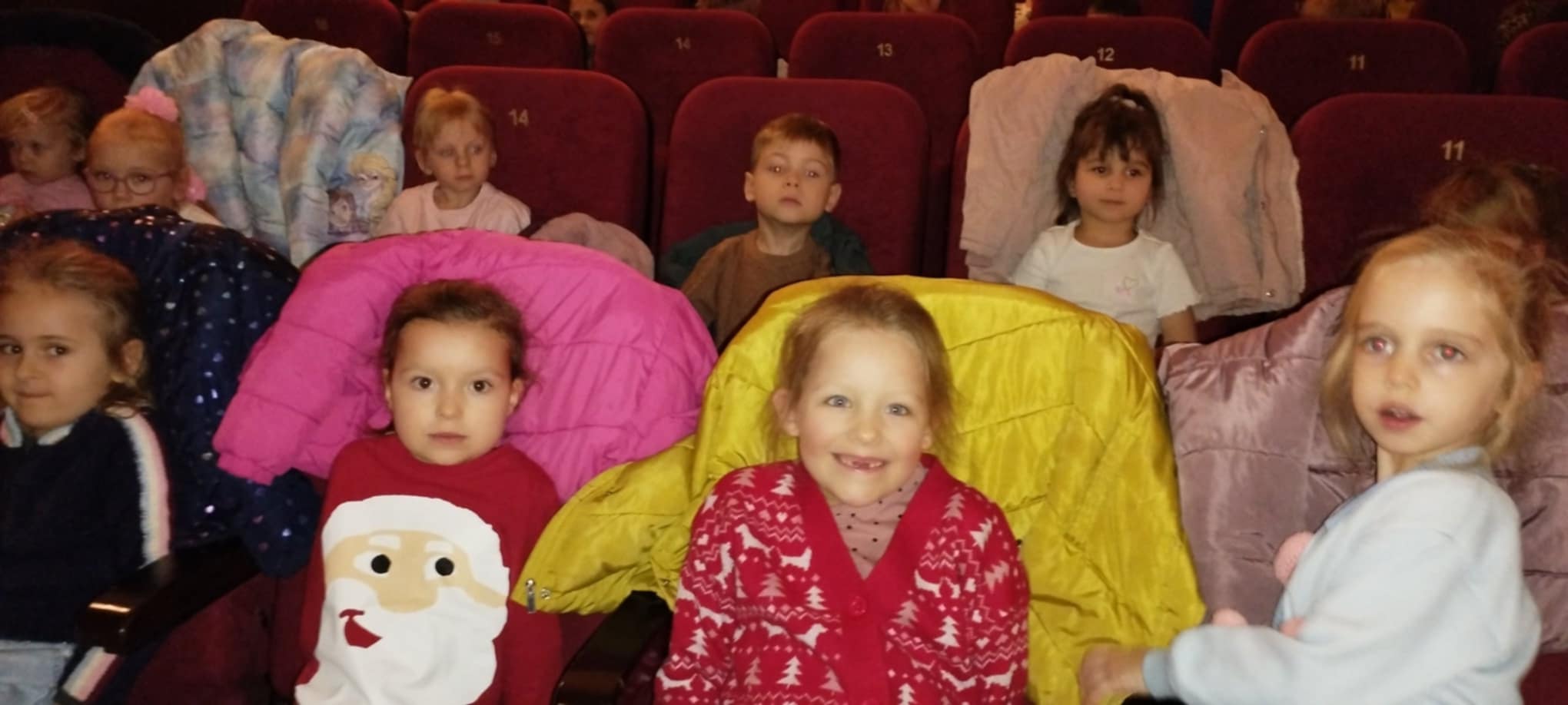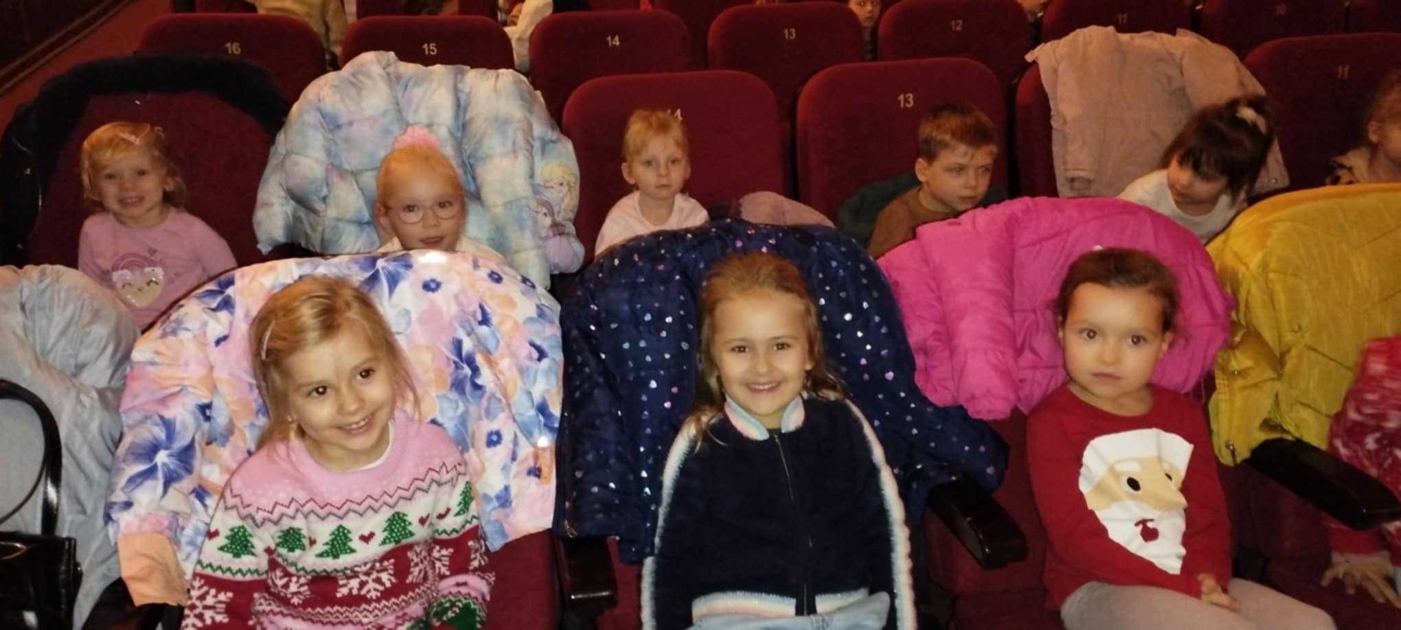 9 grudnia przedszkolaki wybrały się na wycieczkę do kina Tomi w Pabianicach, aby obejrzeć spektakl „Mikołaj spełnia sny”. Dzieci z ogromnym zainteresowaniem śledziły przedstawienie, pełne świątecznej magii i radosnych niespodzianek. Wyjazd dostarczył im wielu pozytywnych emocji i wprowadził w wyjątkowy, przedświąteczny nastrój.