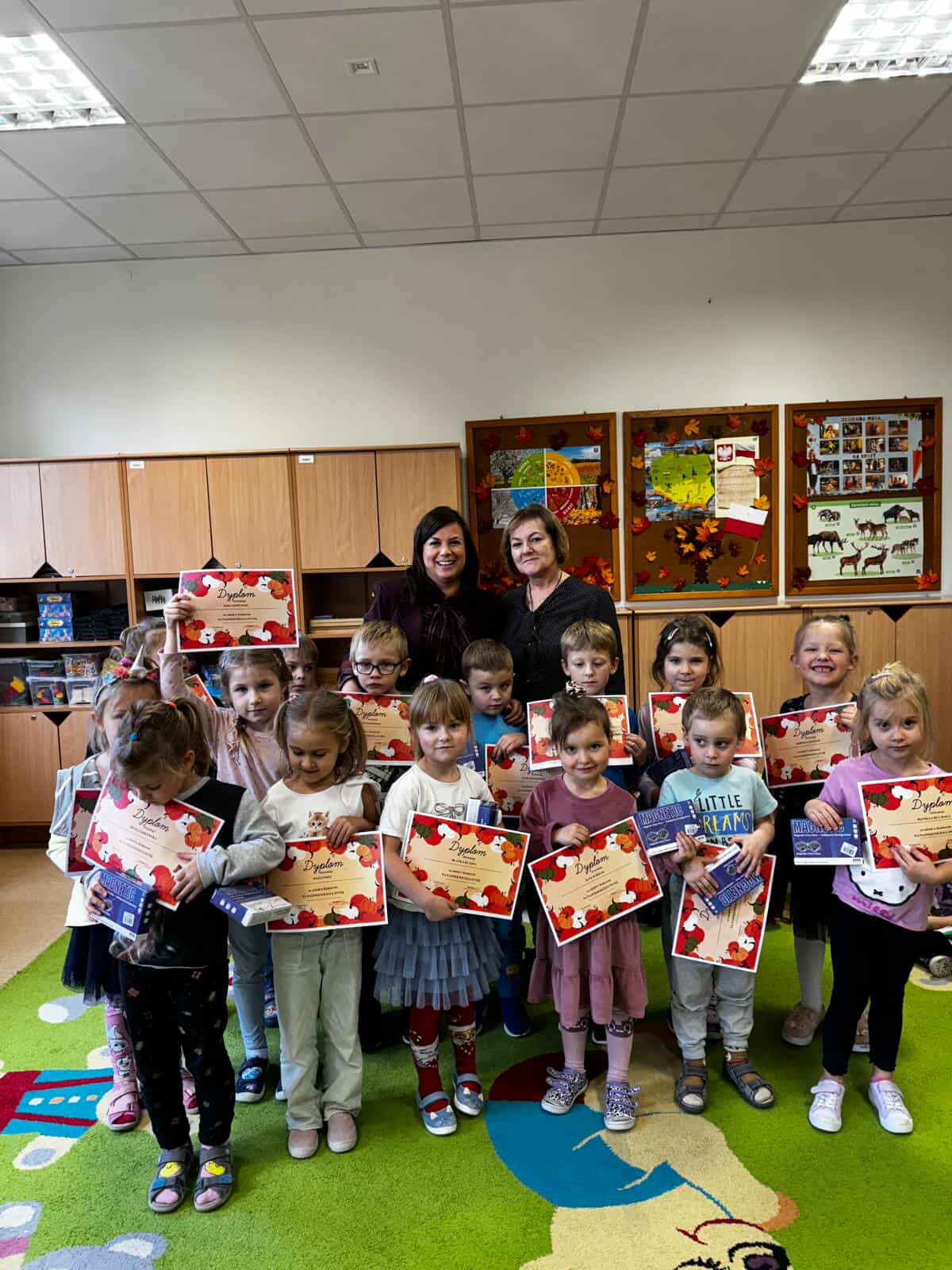 W Oddziałach Przedszkolnych w Szkole w Ksawerowie zapanowała prawdziwie bajkowa atmosfera! Wszystko za sprawą rodzinnego konkursu pt. „Najpiękniejsza bajkowa dynia”, który połączył dzieci i rodziców we wspólnej, twórczej zabawie. Zwykłe dynie zamieniły się w niezwykłe postacie – kolorowe, zabawne, zaskakujące. Wśród prac można było podziwiać m.in. Sticha, smerfa, wróżki, minionki, a także wiele innych fantazyjnych bohaterów, które rozświetliły wejście do oddziałów niczym jesienna galeria sztuki. Każda dynia była wyjątkowa – tak jak wyjątkowe były zaangażowanie i pomysłowość rodzin, które włożyły serce w swoje dzieła. Konkurs nie tylko rozbudził kreatywność, ale też wzmocnił więzi między dziećmi a rodzicami, dając im okazję do wspólnego tworzenia i śmiechu. Na zakończenie wszystkie dzieci otrzymały dyplomy i upominki, które zostały ufundowane przez Radę Rodziców.