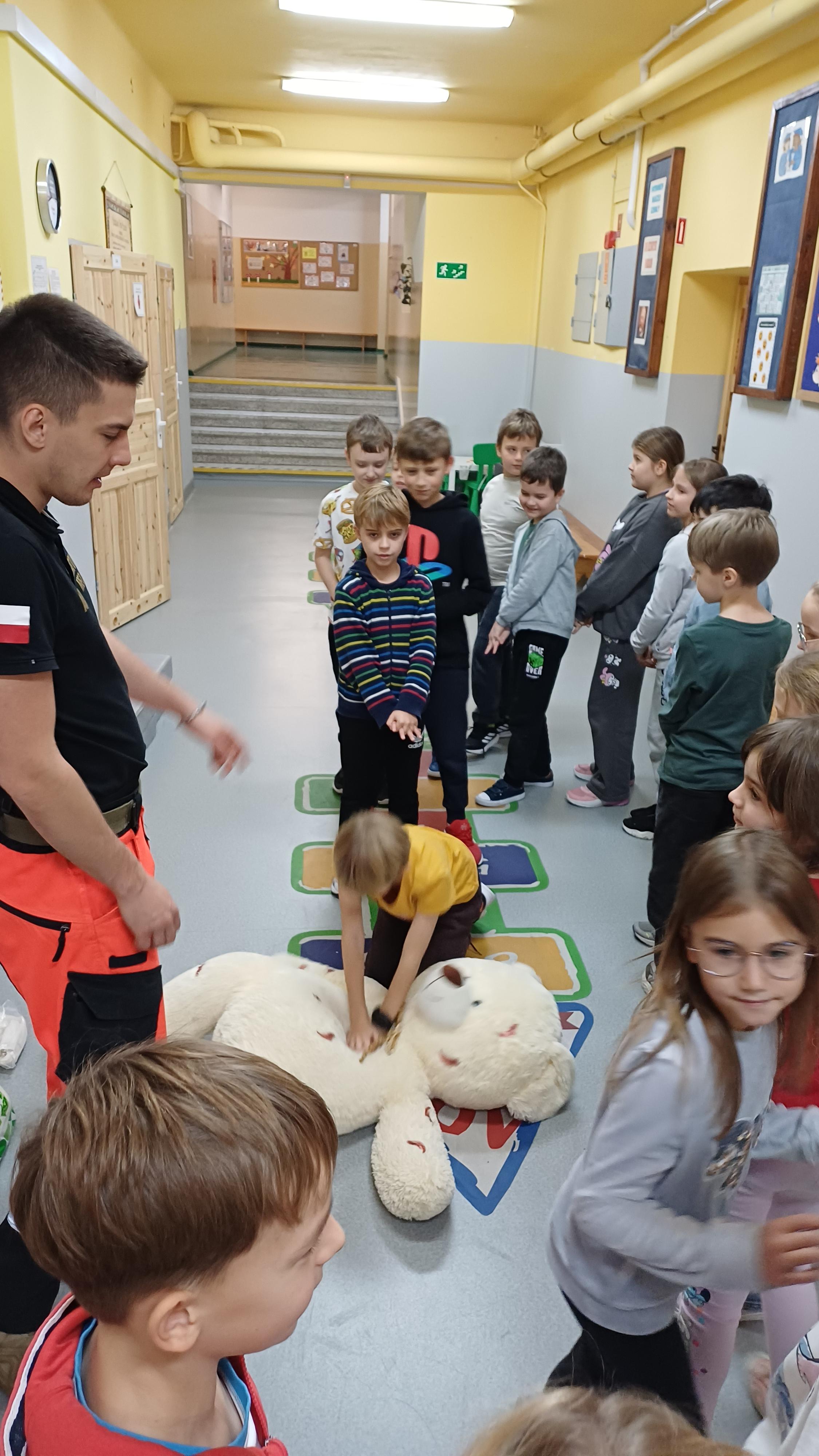 W I półroczu uczniowie klas 1 – 3 uczyli się udzielać pierwszej pomocy. Uczestniczyli w warsztatach, które prowadził ratownik medyczny, Pan Alek.