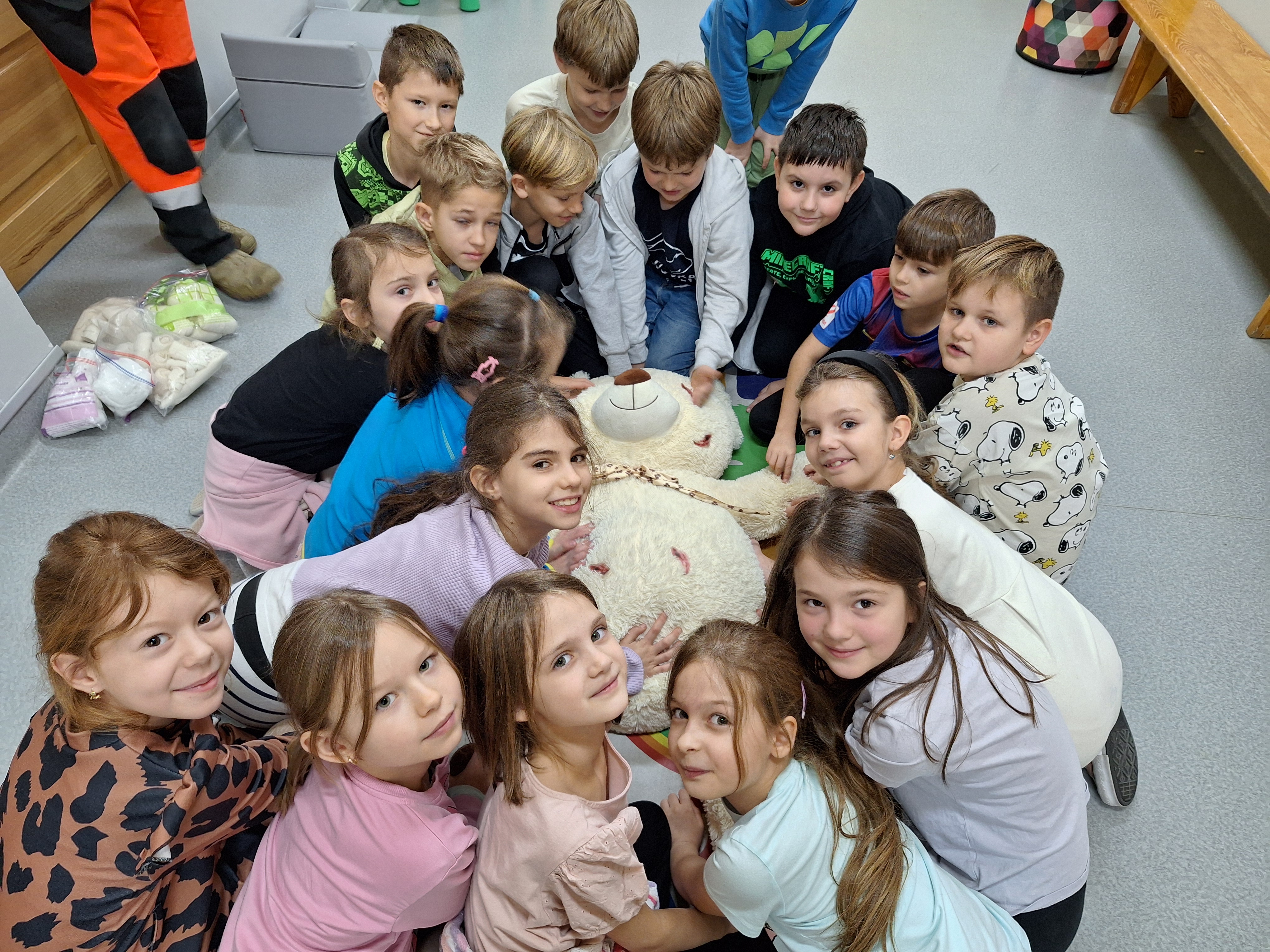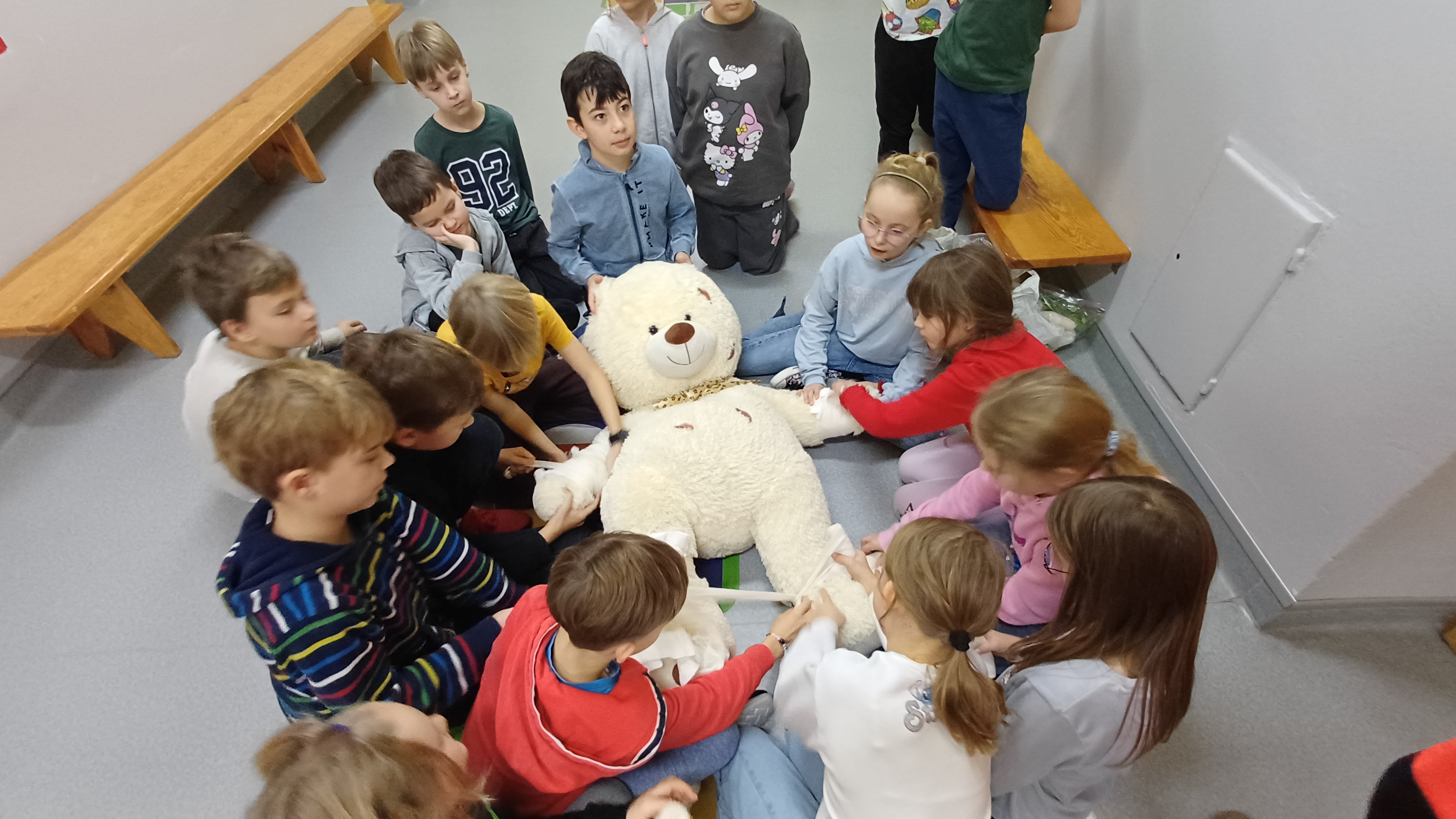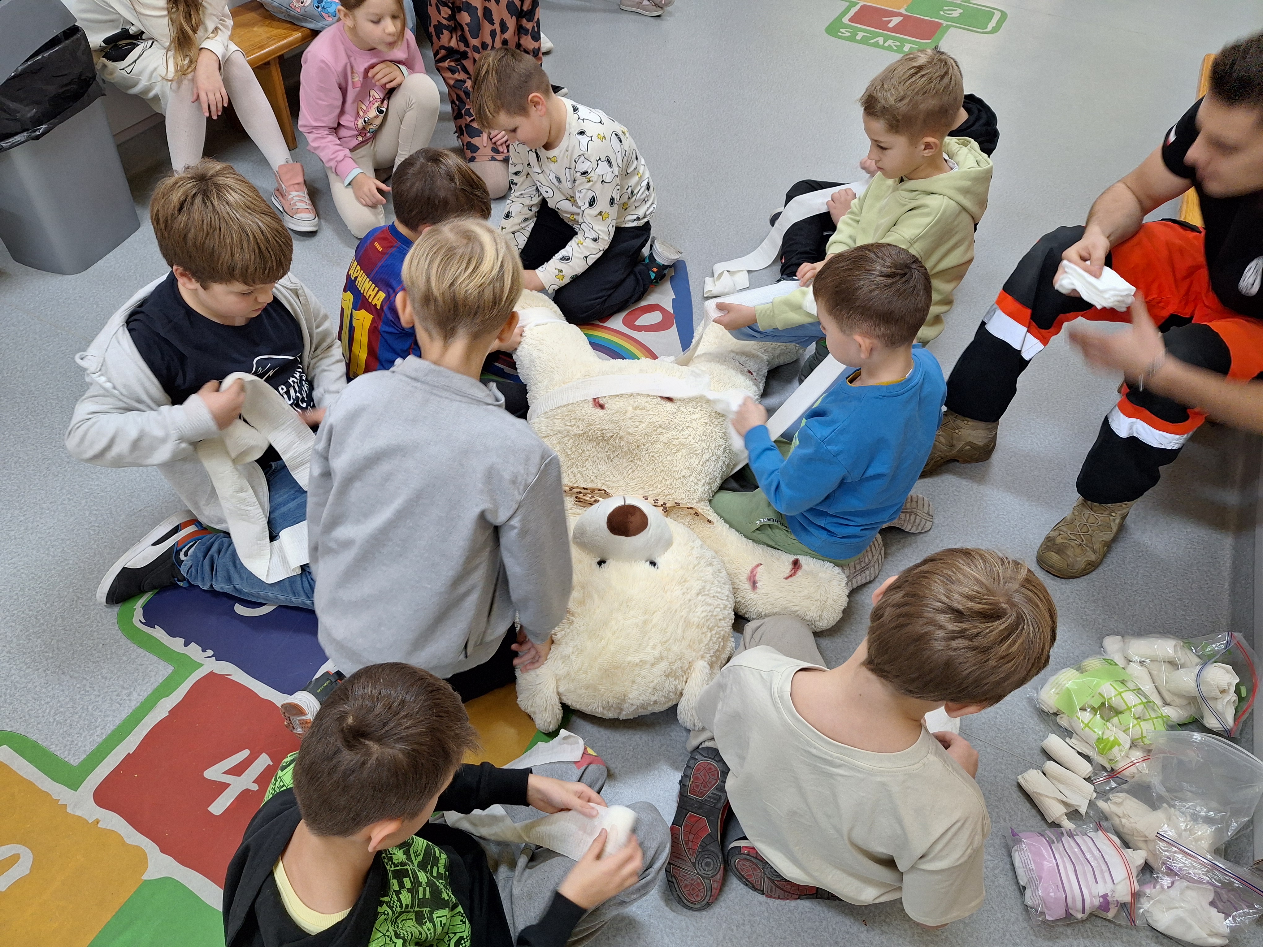 Dzięki warsztatom pierwszej pomocy uczniowie dowiedzieli się jak zadbać o bezpieczeństwo własne, reagować w sytuacjach nagłych, takich jak skaleczenia, oparzenia oraz nagłe zatrzymanie krążenia. Ćwiczyli jak w praktyce prawidło wezwać pomoc, wykonać prawidłowo pozycję boczną, ocenić podstawowe parametry życiowe, zaopatrywać urazy, postępować w wybranych stanach nagłych.