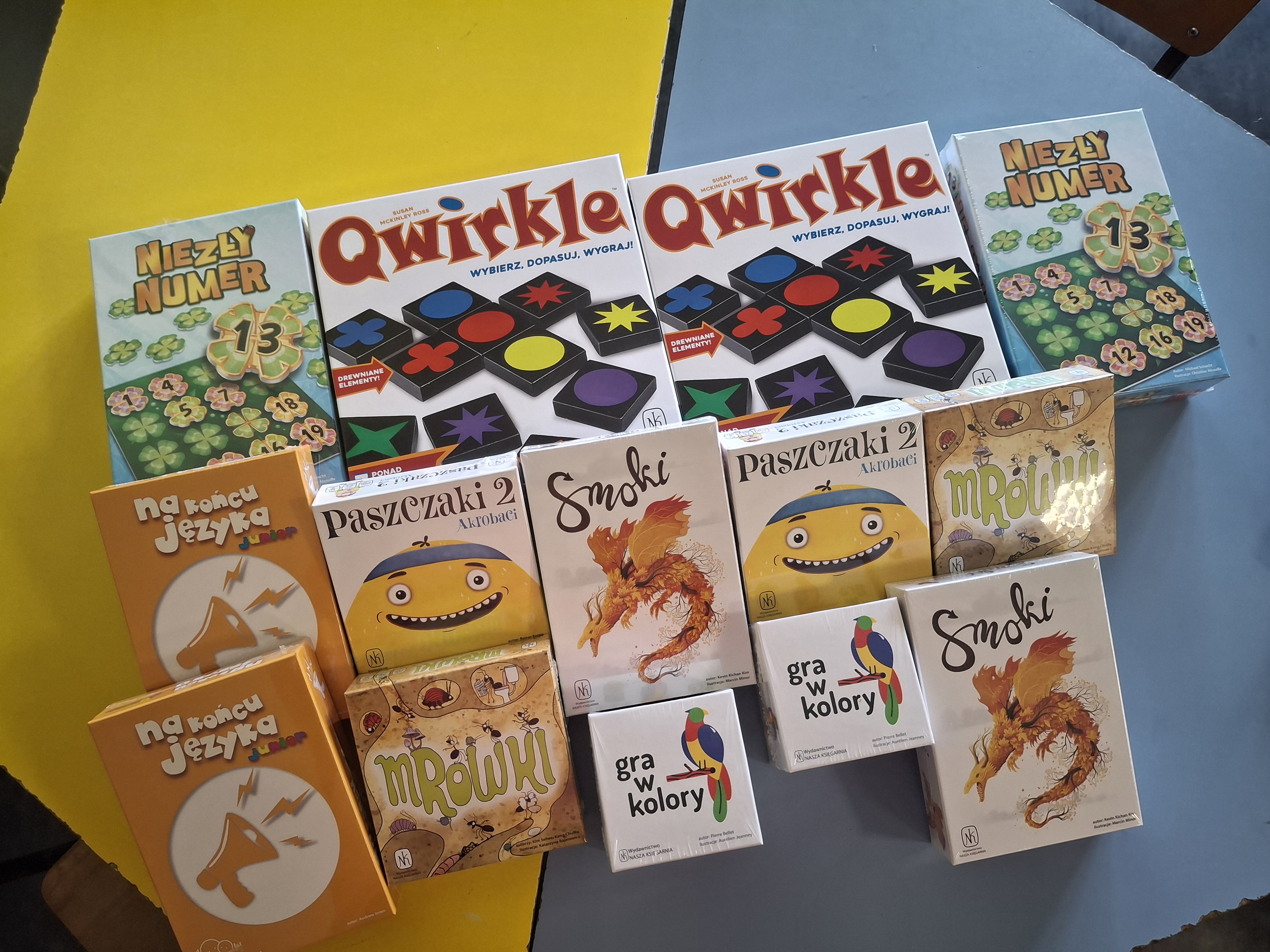 Na koniec października do świetlicy dotarła przesyłka z grami planszowymi: „Na końcu języka”, Qwirkle”, „Niezły numer”, „Gra w kolory”, „Smoki”, „Paszczaki 2. Akrobaci”, „Mrówki”.