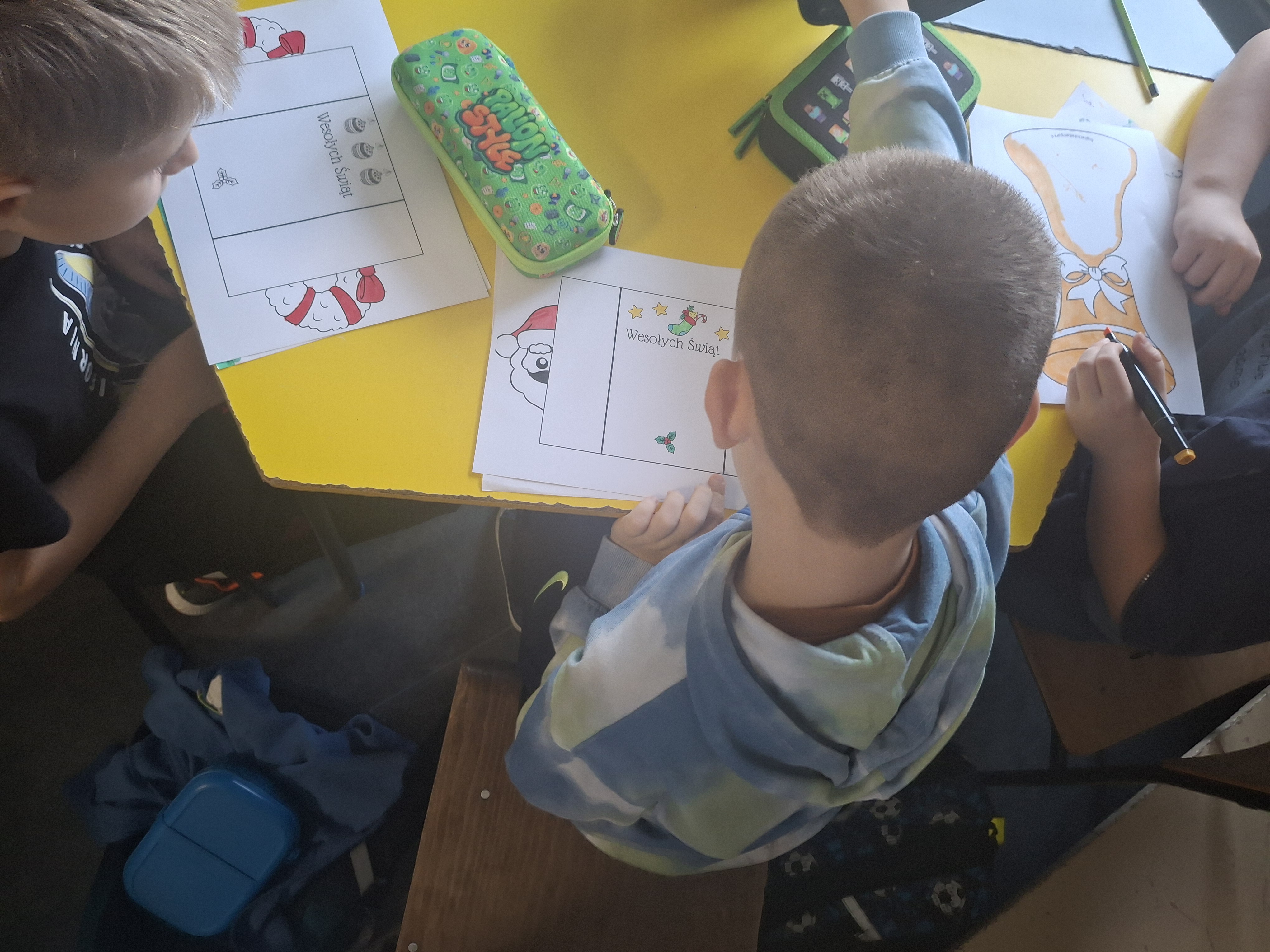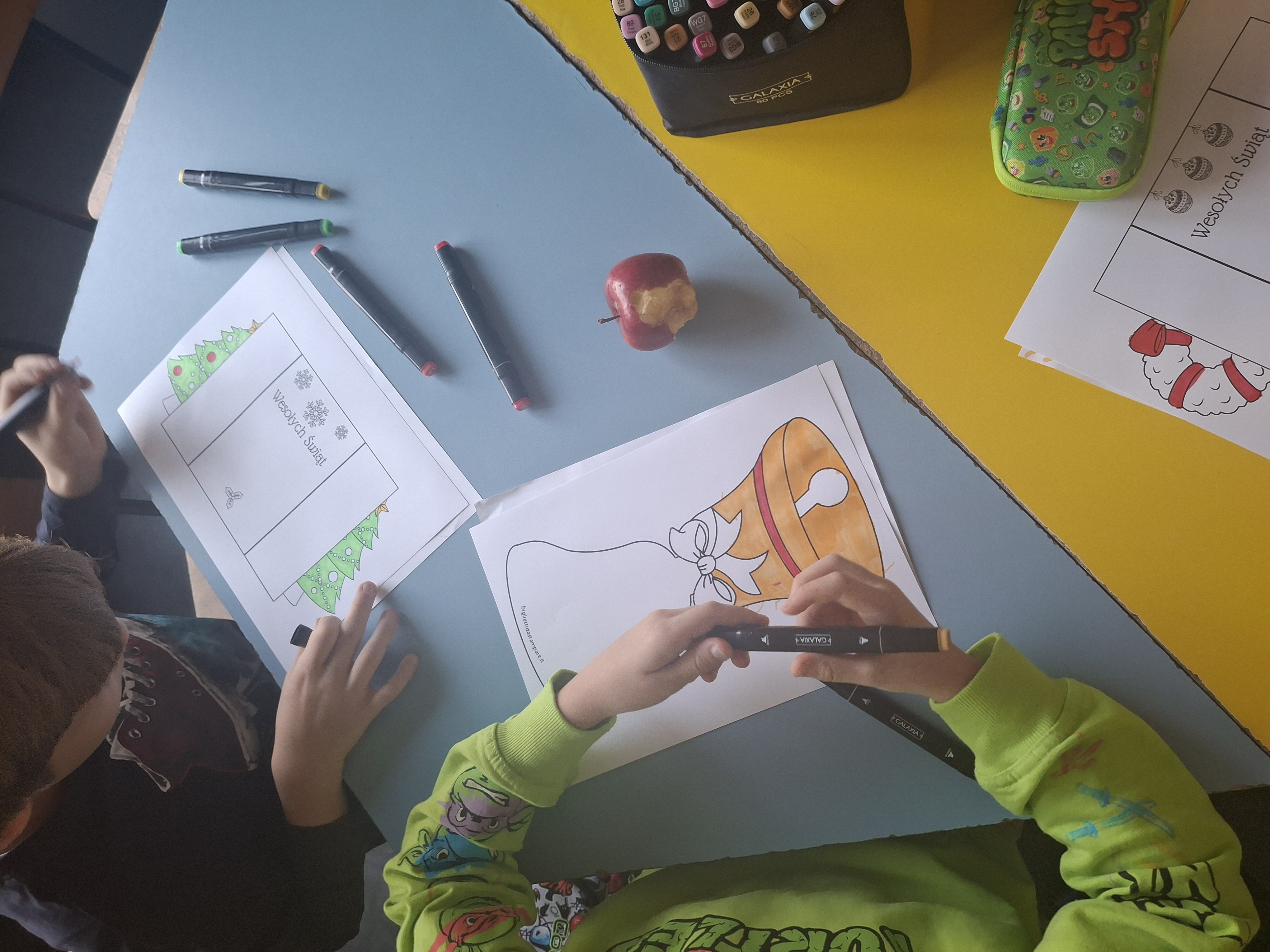 We współpracy ze Szkolnym Kołem Caritas uczniowie ze świetlicy przygotowali karty świąteczne z okazji zbliżających się Świąt Bożego Narodzenia, które zostaną przekazane osobom starszym i chorym. Odbyła się także rozmowa z uczniami na temat bycia uprzejmym i obowiązku okazywania szacunku wobec osób starszych i chorych.