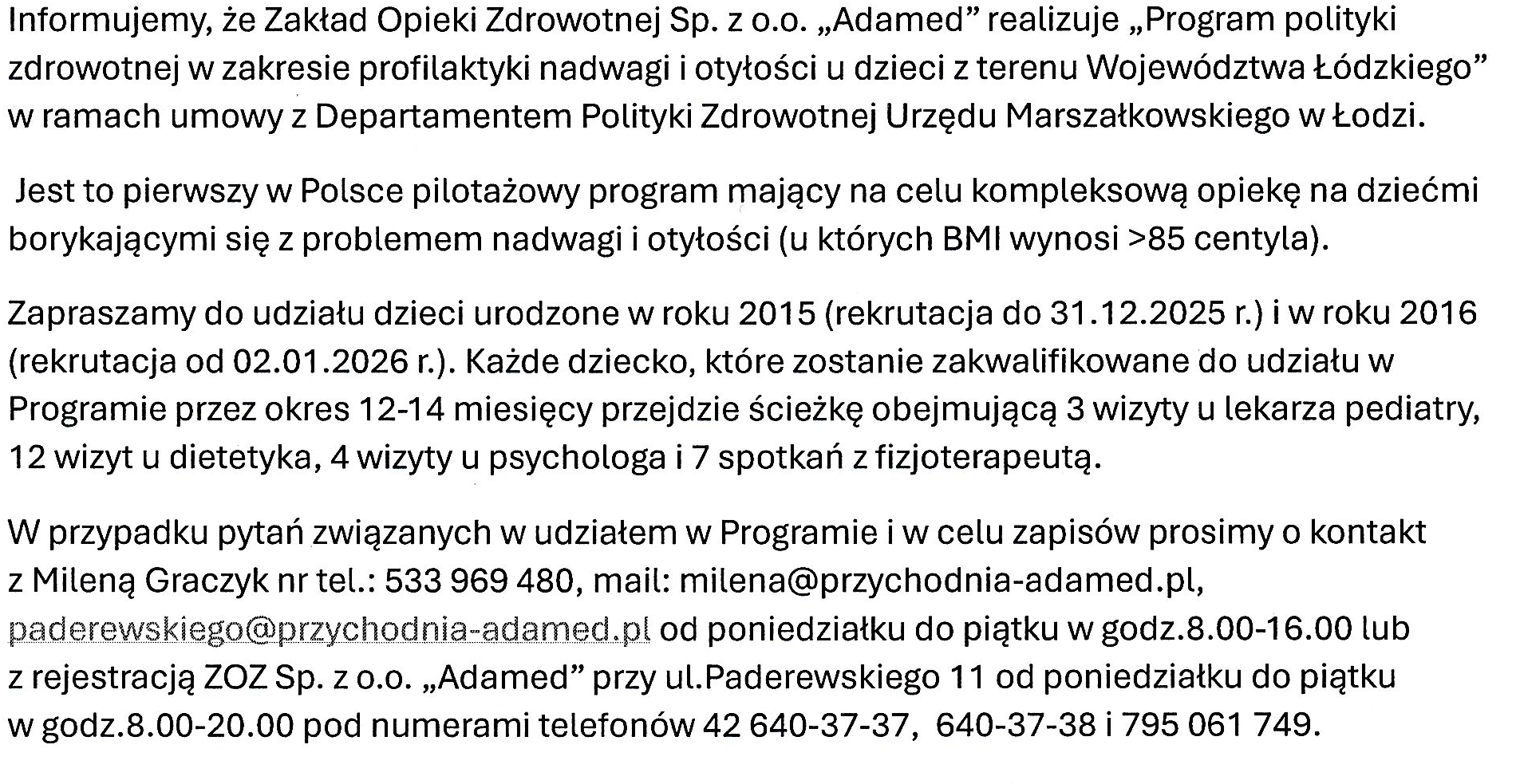 „Program polityki zdrowotnej w zakresie profilaktyki nadwagi i otyłości u dzieci z terenu województwa łódzkiego”