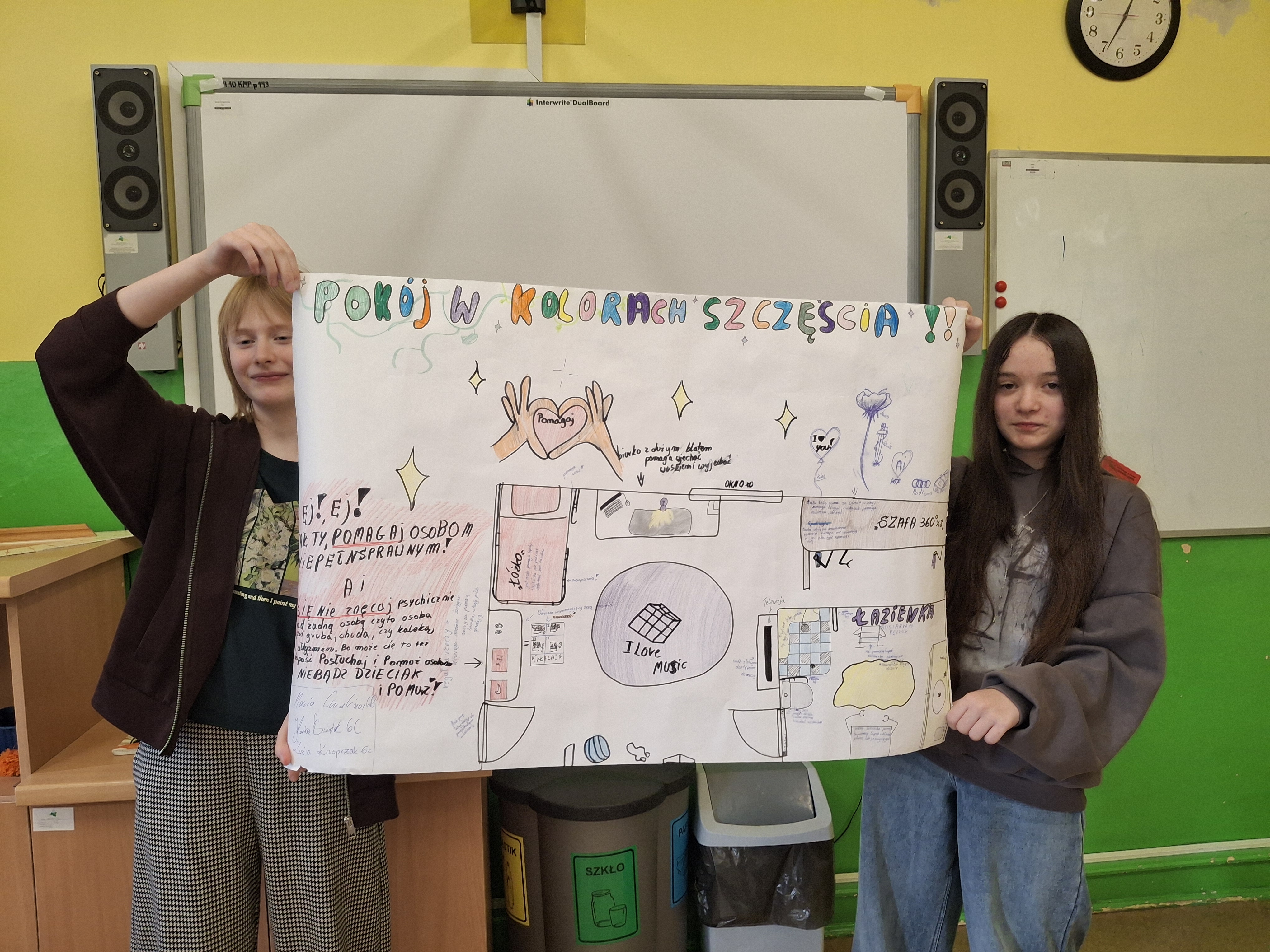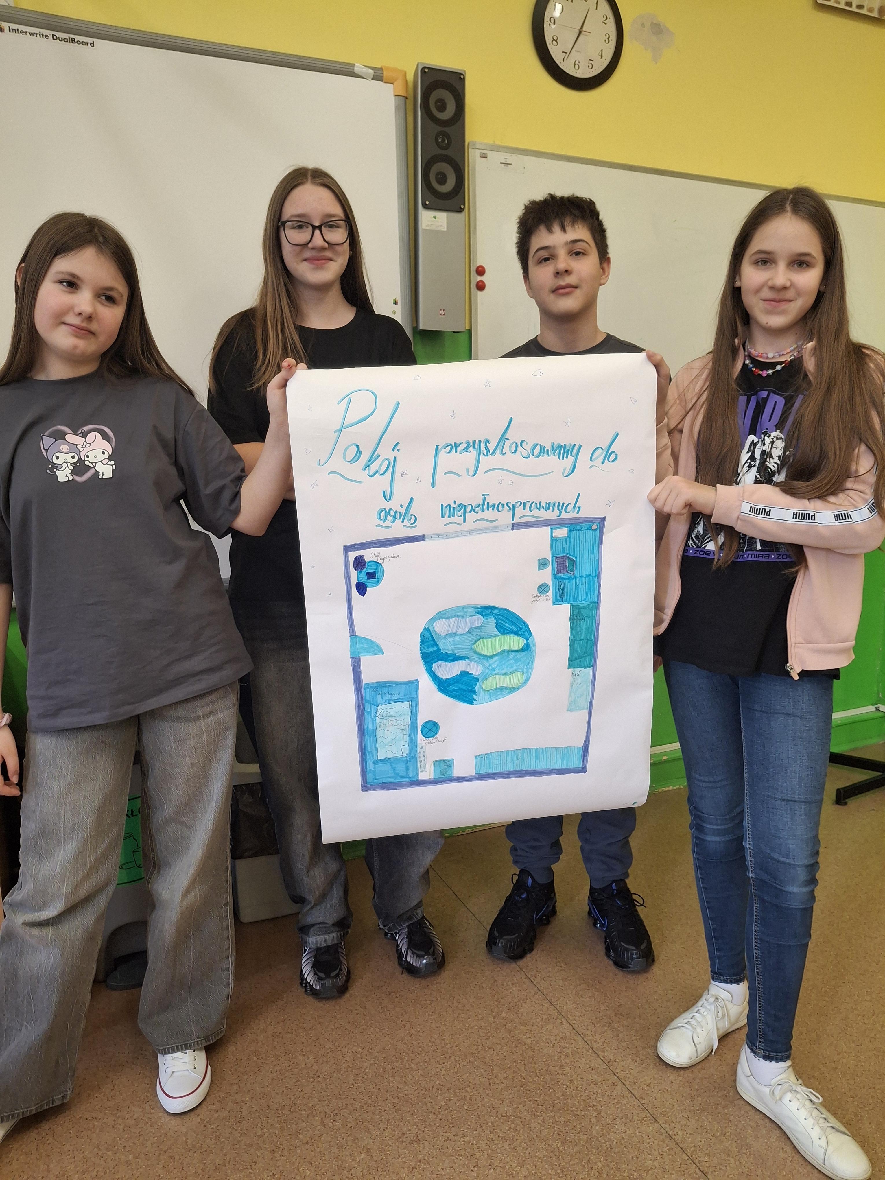 W części praktycznej uczniowie pracowali w grupach nad projektami pomieszczeń dostosowanych do potrzeb osób z niepełnosprawnościami. Powstały pomysłowe i funkcjonalne projekty m.in. łazienek, kuchni oraz sal lekcyjnych, uwzględniające takie udogodnienia jak podjazdy, szerokie przejścia, uchwyty czy odpowiednie rozmieszczenie wyposażenia.