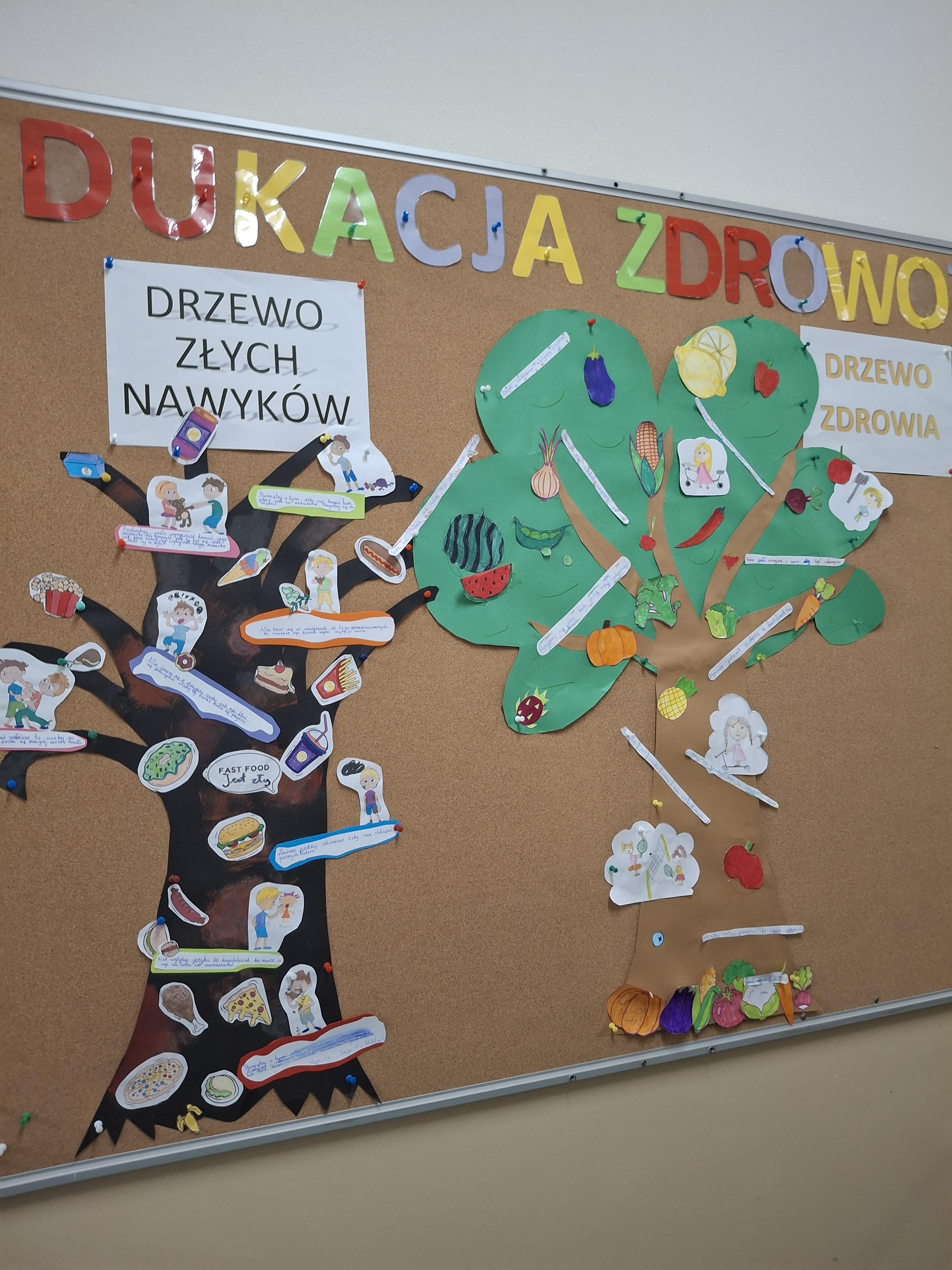 W ramach podsumowania tematów dot. zdrowego stylu życia uczniowie kl. IV- tych wykonali w grupach pracę plastyczną pt. „Drzewo zdrowia i drzewo złych nawyków"