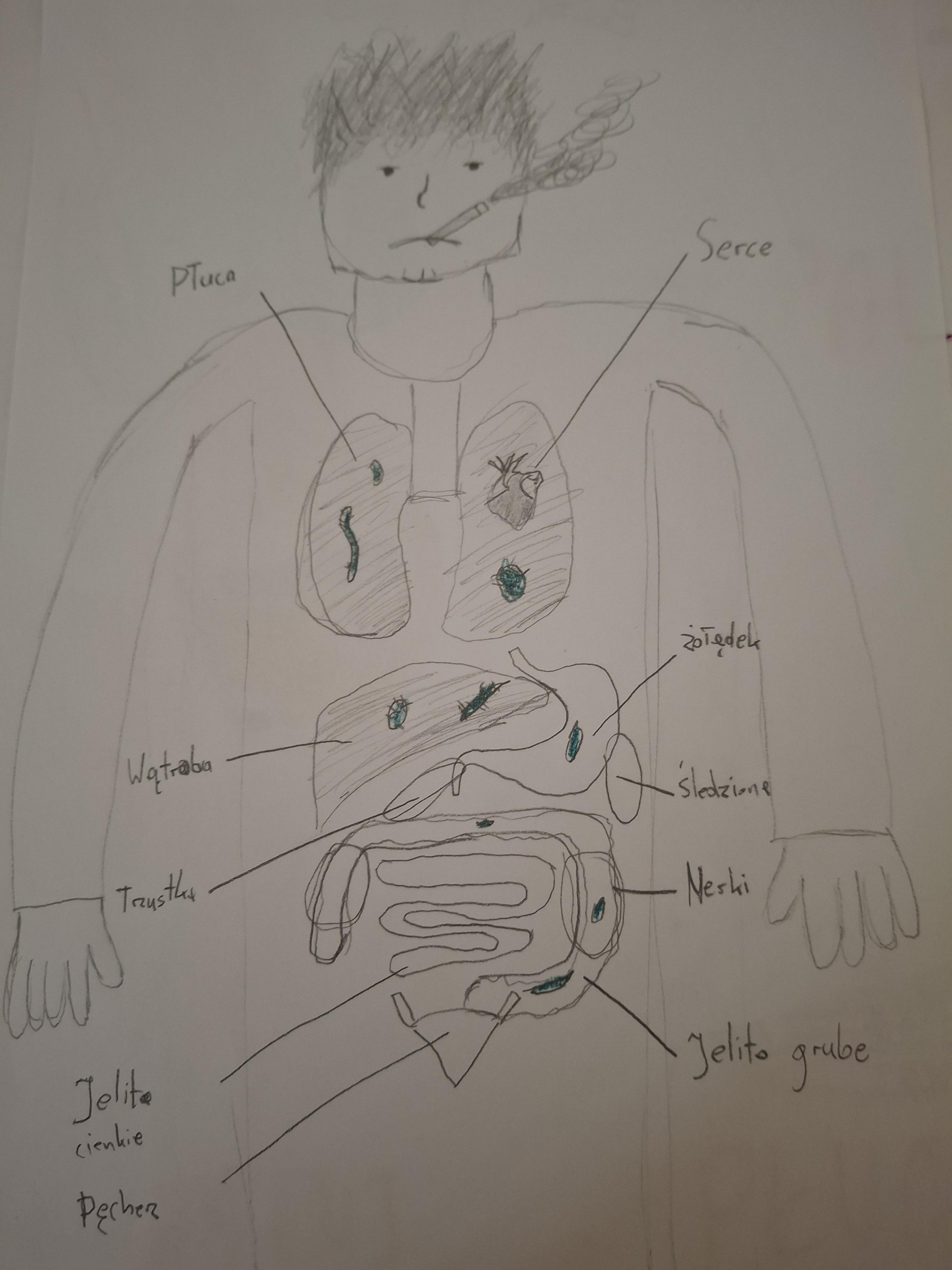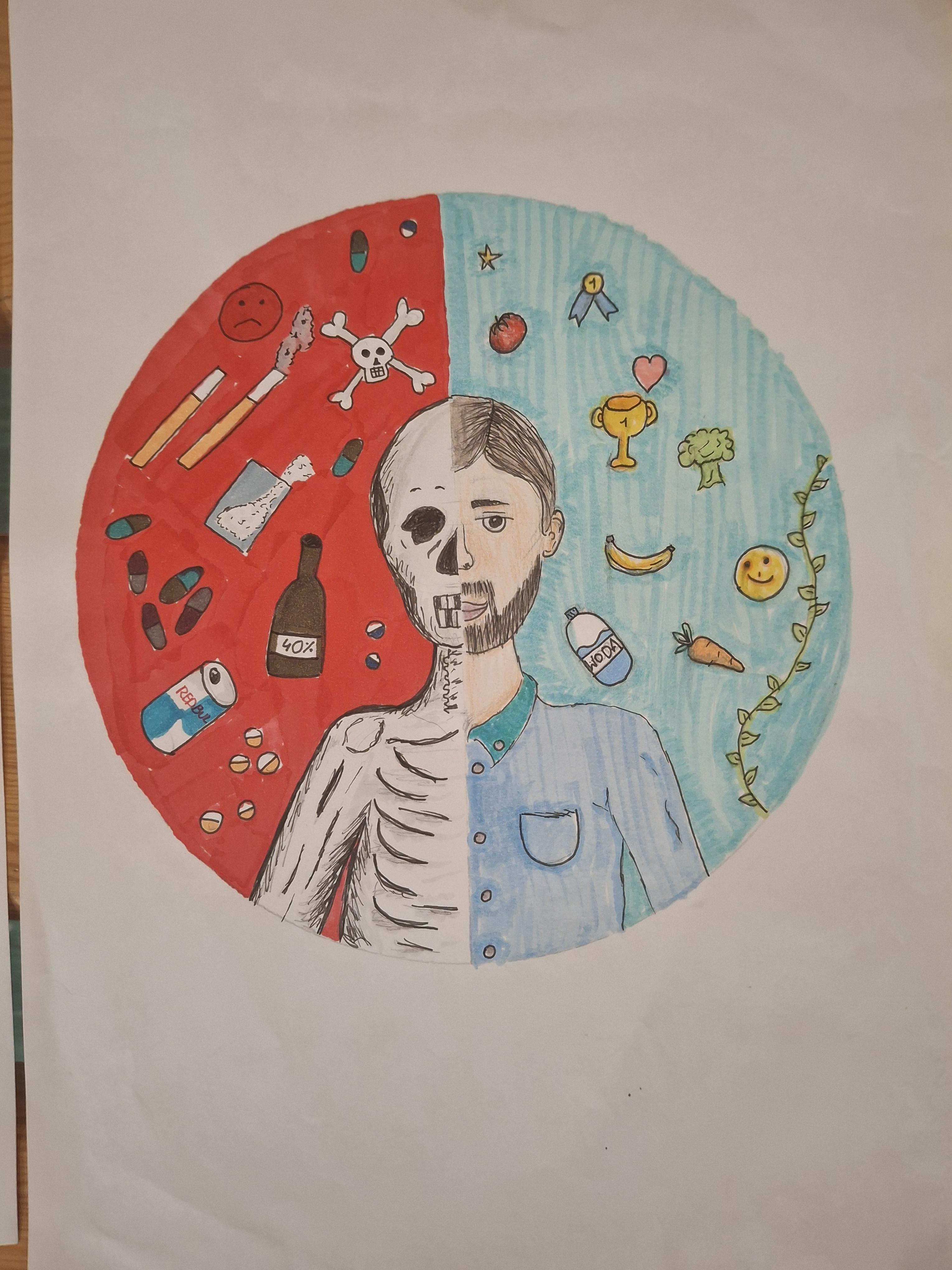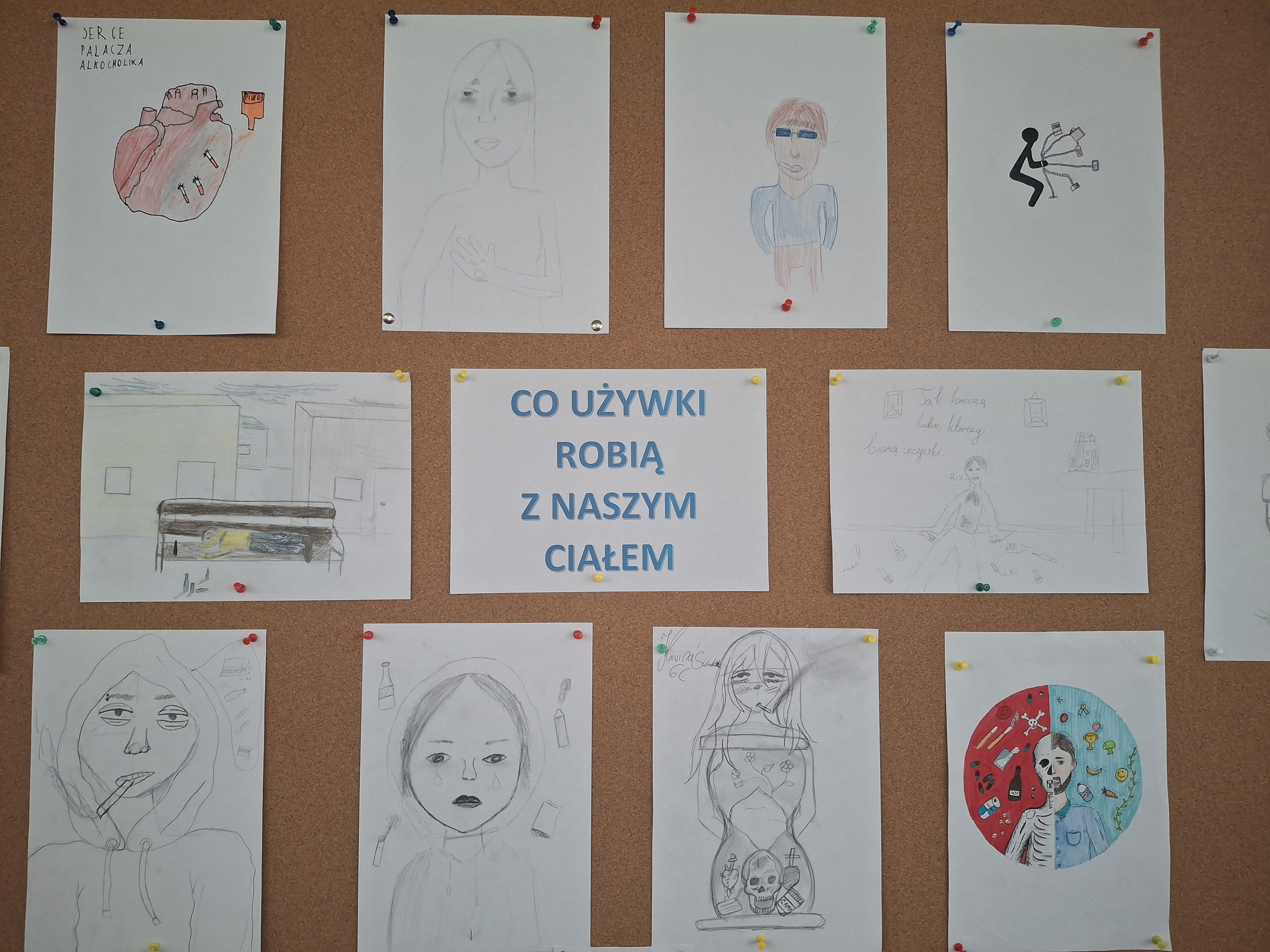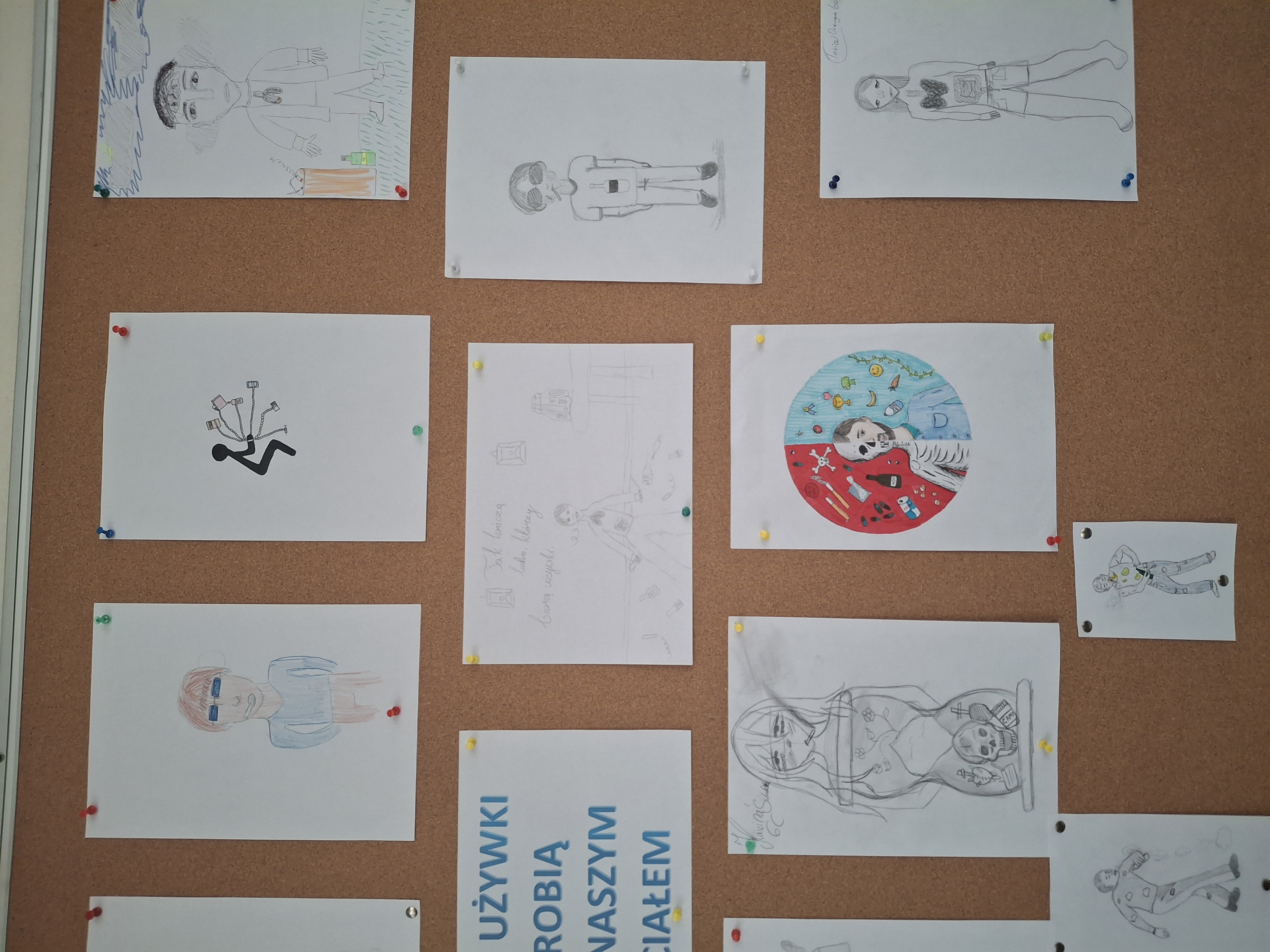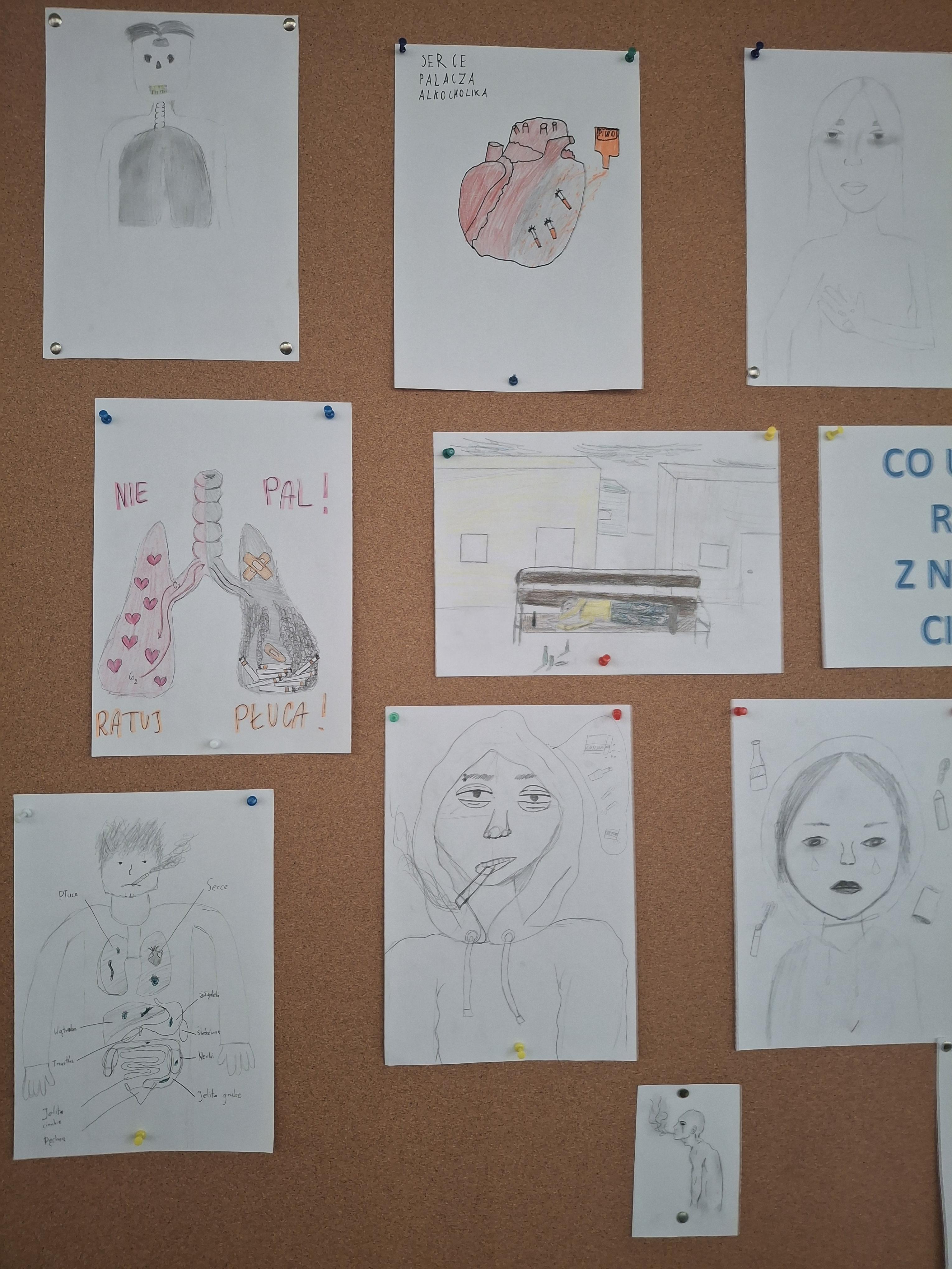 Uczniowie dowiedzieli się: kiedy warto szukać pomocy specjalistycznej? Jakie osoby i instytucje mogą pomóc?, że mówienie o problemie to oznaka siły, a nie słabości. Jako podsumowanie cyklu zajęć wykonali prace plastyczne: „Co używki robią z naszym ciałem?” Prace uczniów zostały wyeksponowane na tablicy ściennej na korytarzu szkolnym.