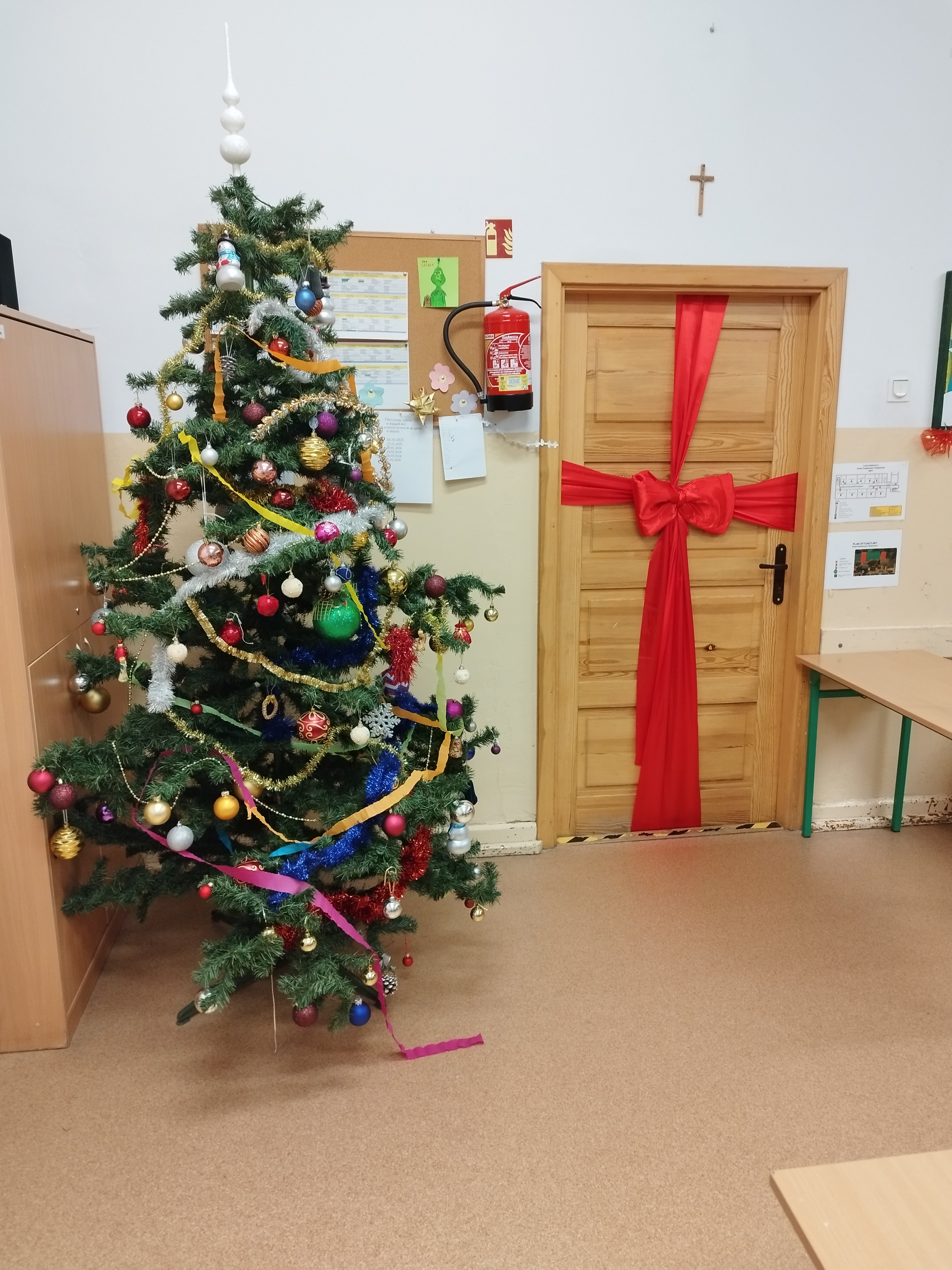 Autorką świątecznych aranżacji jest pani Izabela Jędrasik, która z ogromnym zaangażowaniem i dbałością o szczegóły przygotowała dekoracje szkolnych przestrzeni. Pani Jędrasik udekorowała również salę 52, nadając jej wyjątkowy, świąteczny klimat.