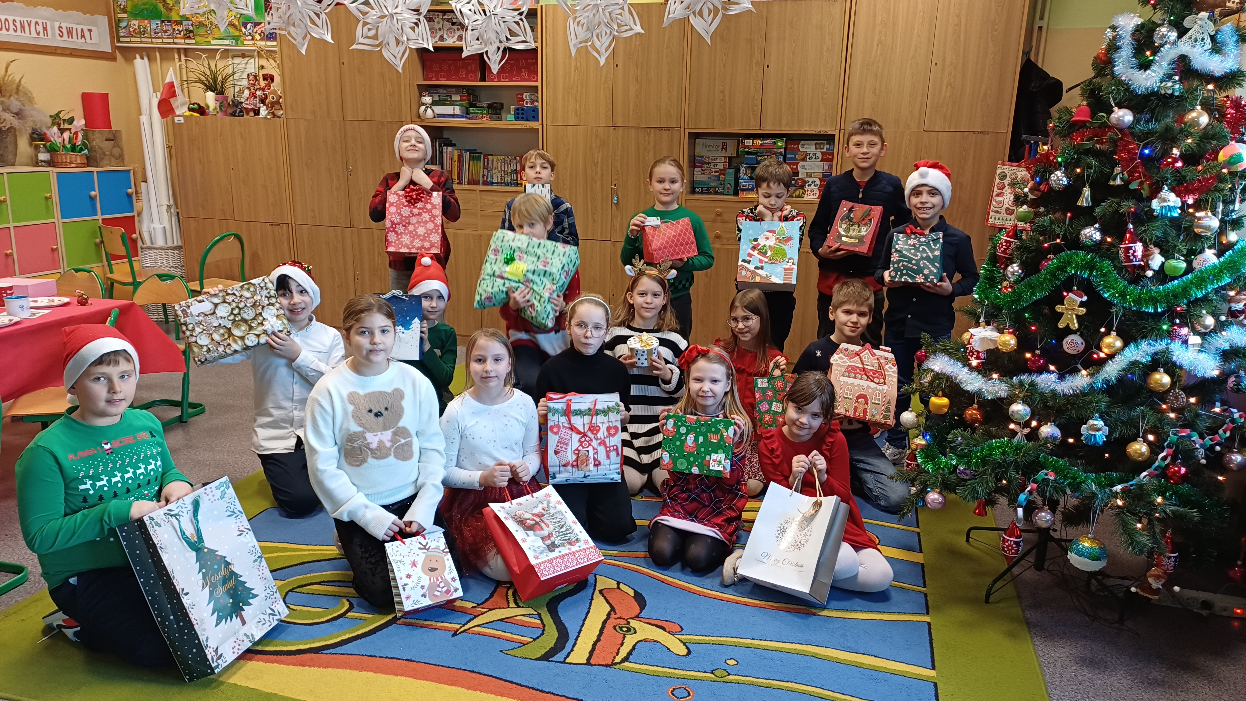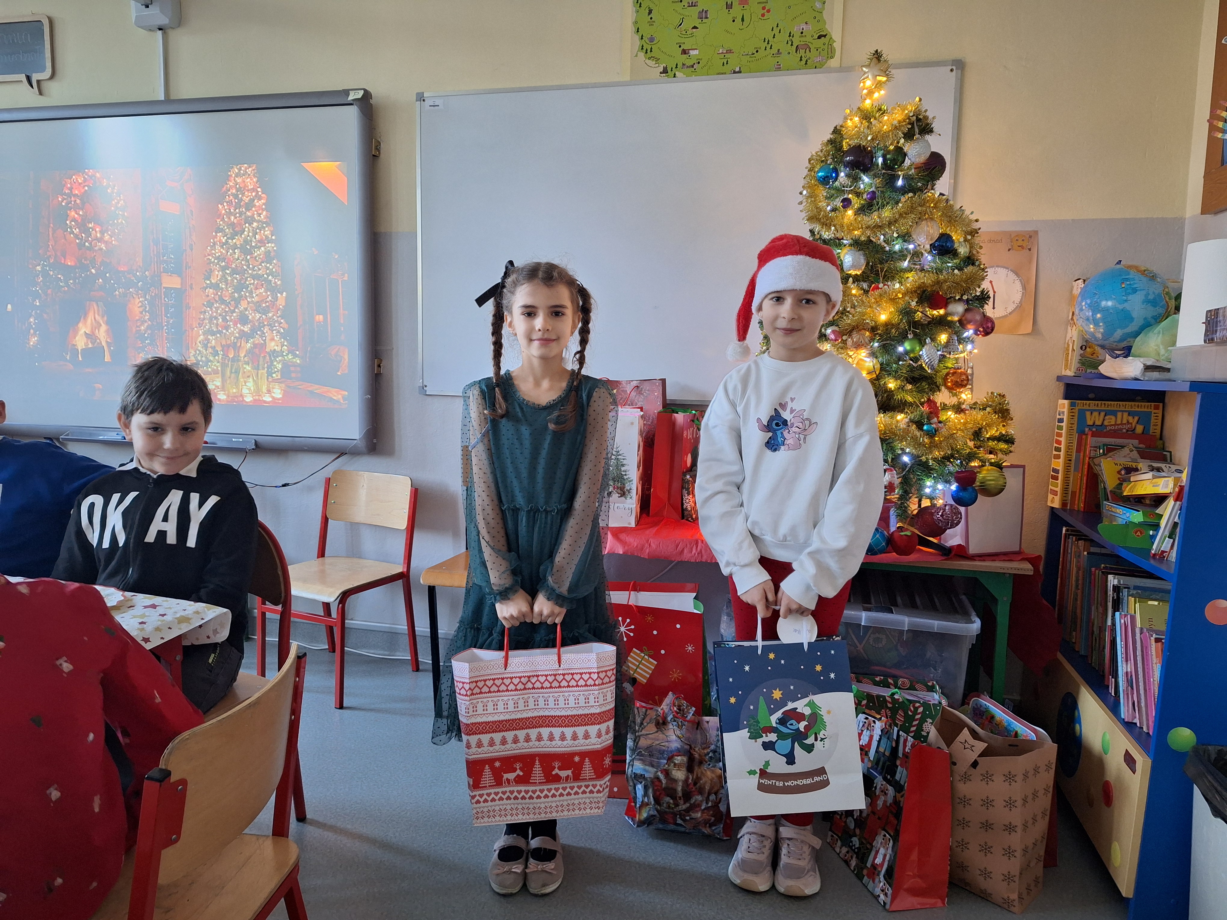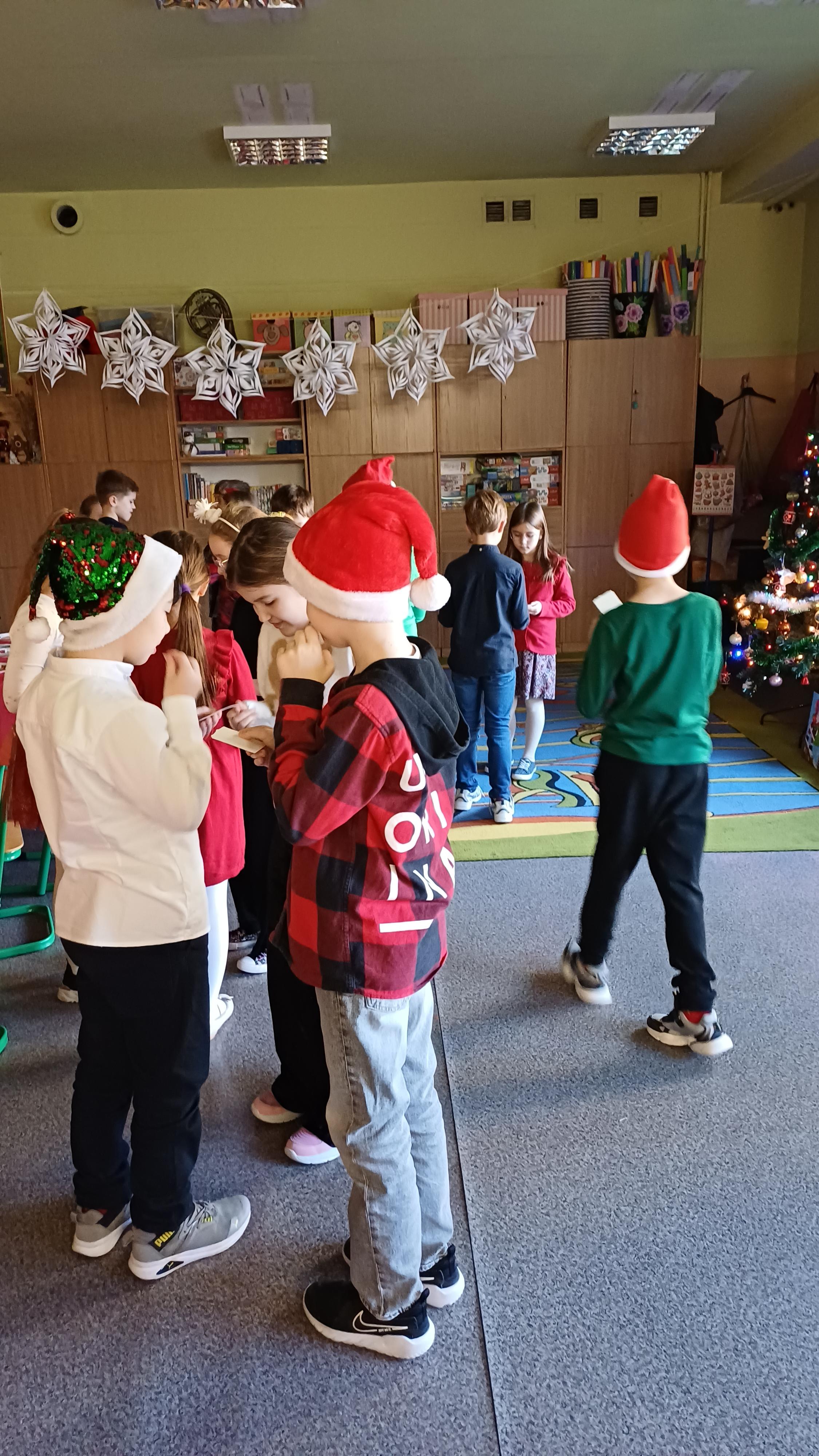 Podczas spotkań wigilijnych w klasach dzieliliśmy się opłatkiem, śpiewaliśmy kolędy, cieszyliśmy się z prezentów.