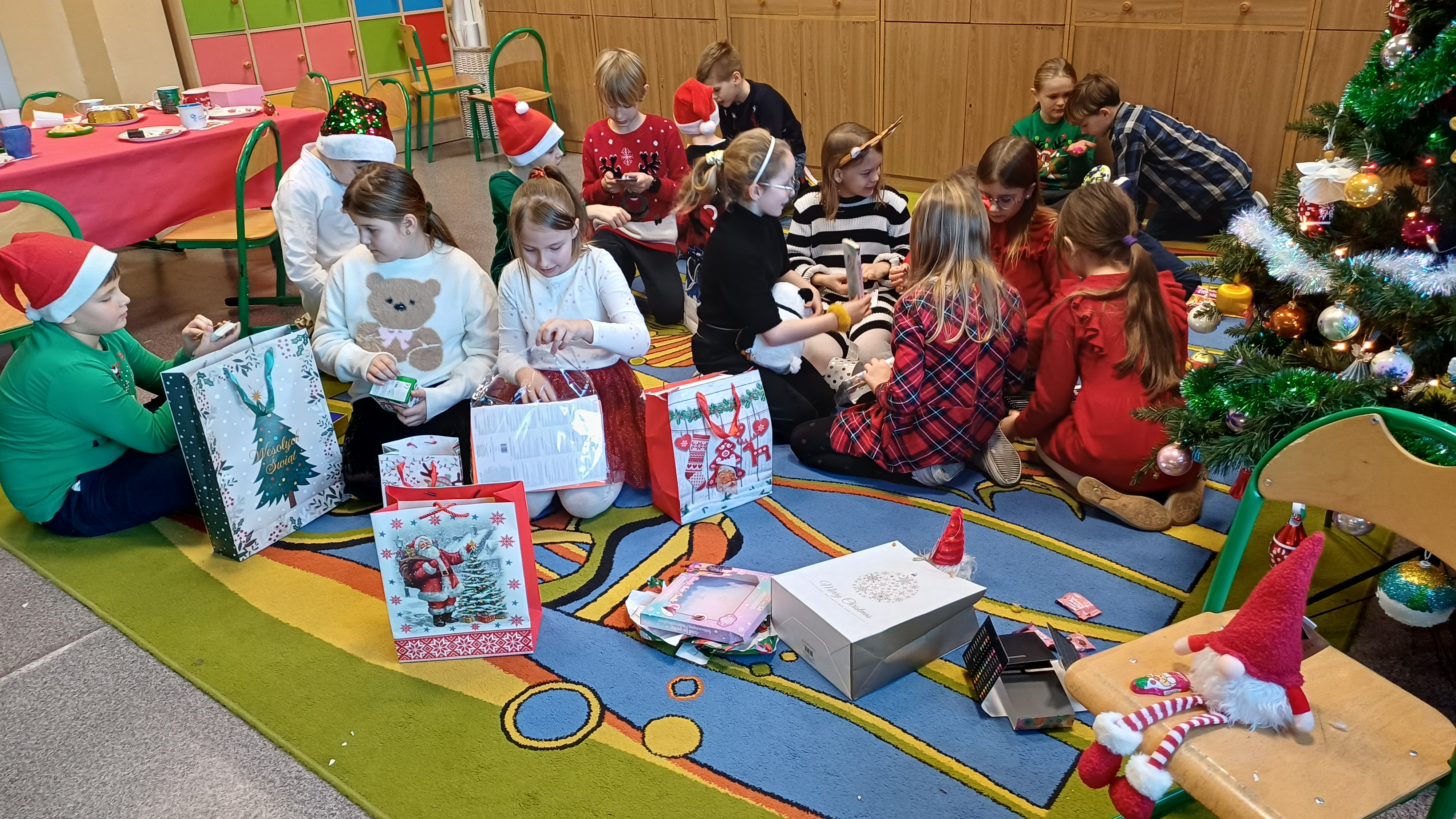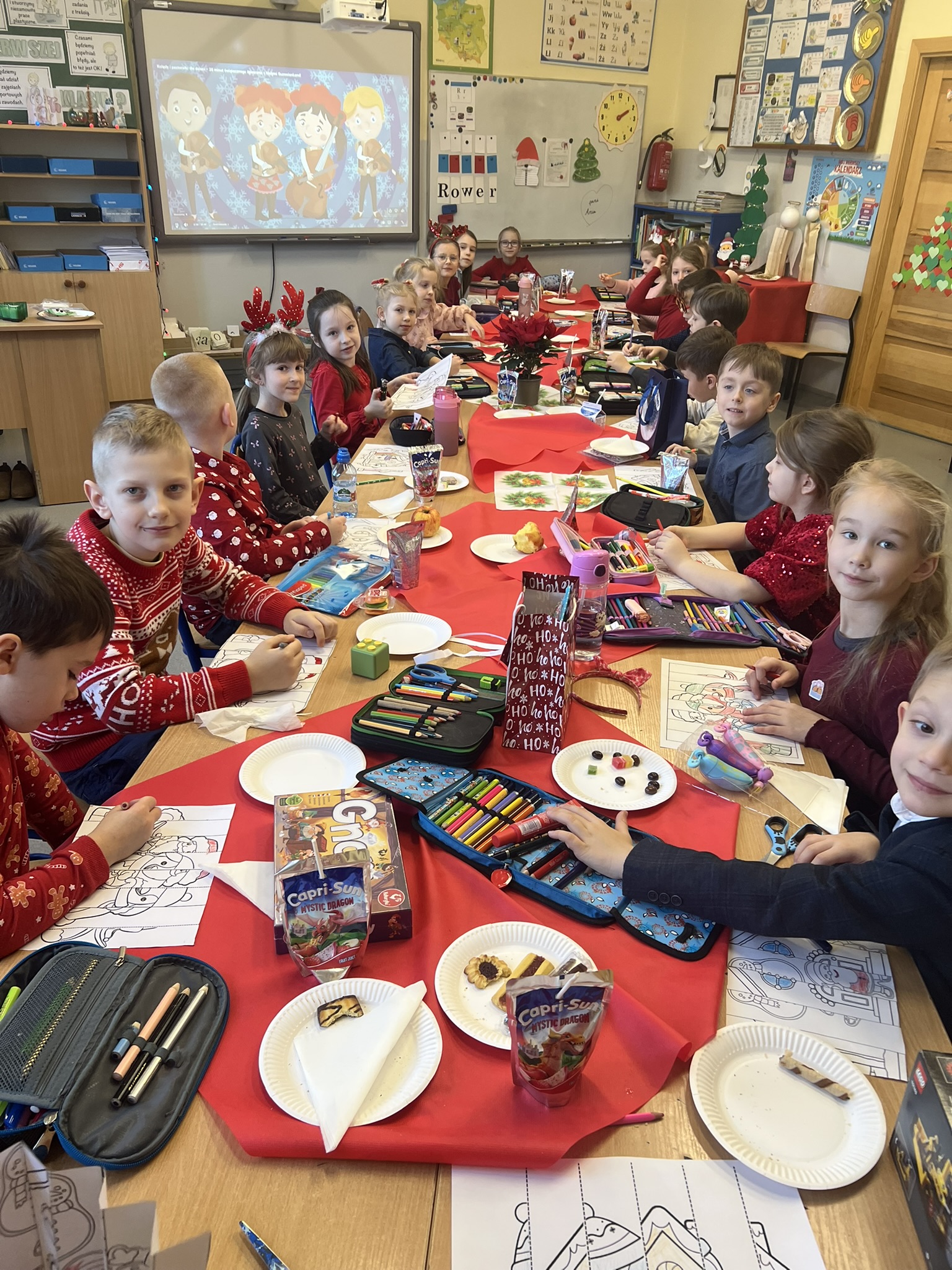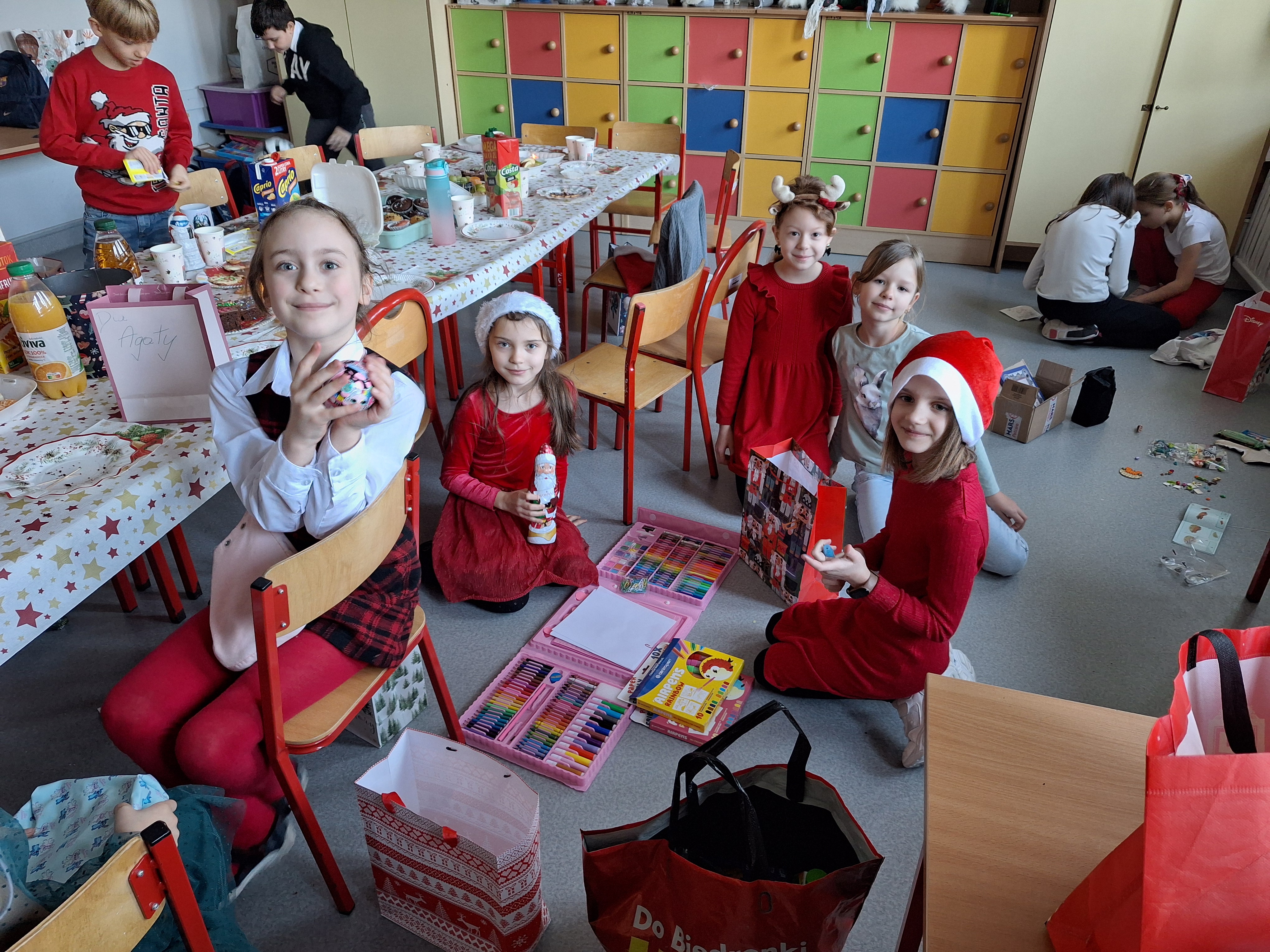 Podczas spotkań wigilijnych w klasach dzieliliśmy się opłatkiem, śpiewaliśmy kolędy, cieszyliśmy się z prezentów.