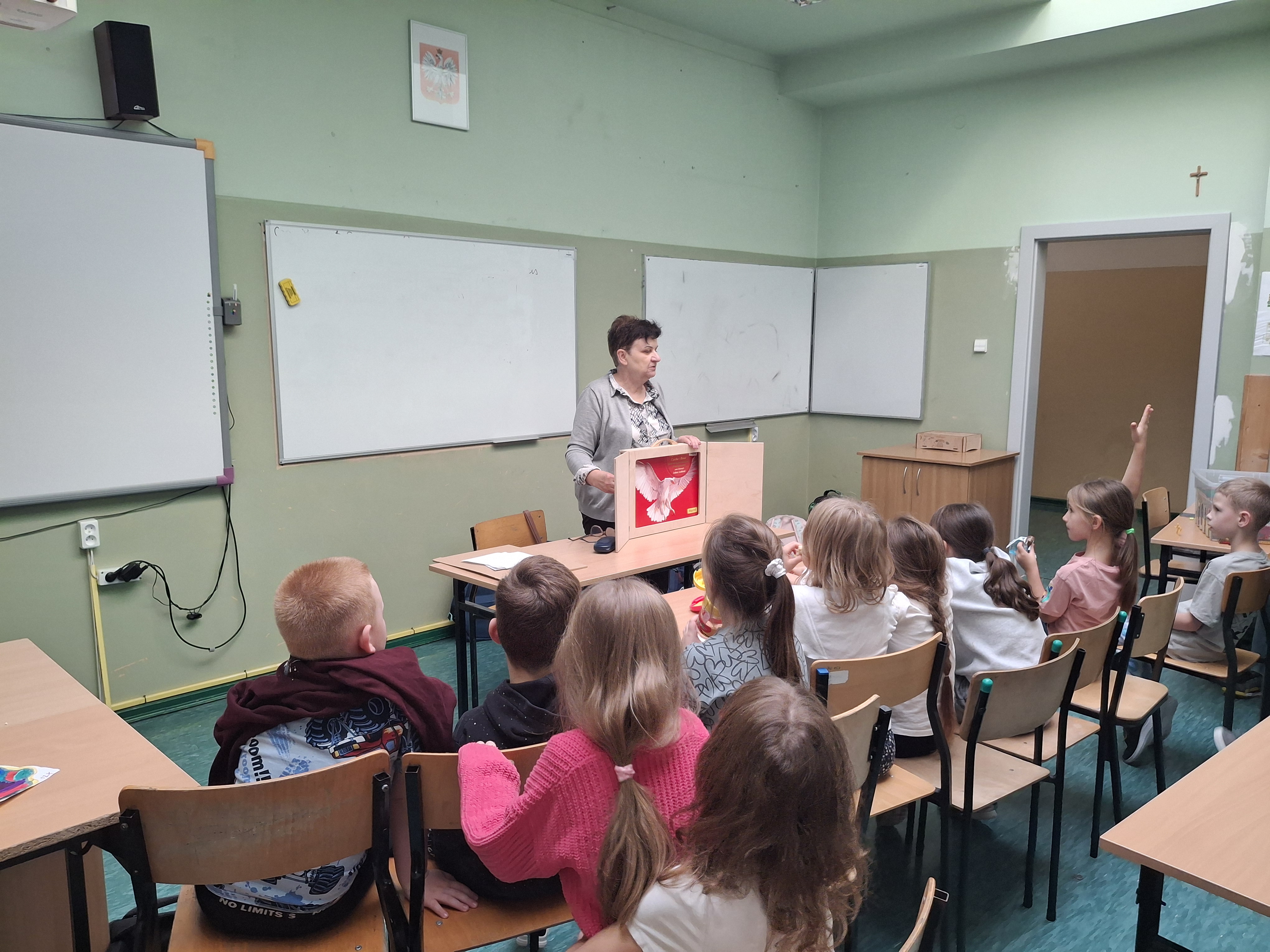 W czasie zajęć uczniowie zostali zapoznani z legendą o powstaniu państwa polskiego -"Legenda o Lechu, Czechu i Rusie"; słuchanie i oglądanie historii (teatrzyk Kamishibai). Uczniowie wykonali ilustracje do legendy; narysowali np. gród Gniezno, godło Polski, dąb w lesie, na którym było gniazdo z orlętami. Zajęcia nawiązywały do nadchodzącego Święta Niepodległości – 11 listopada.