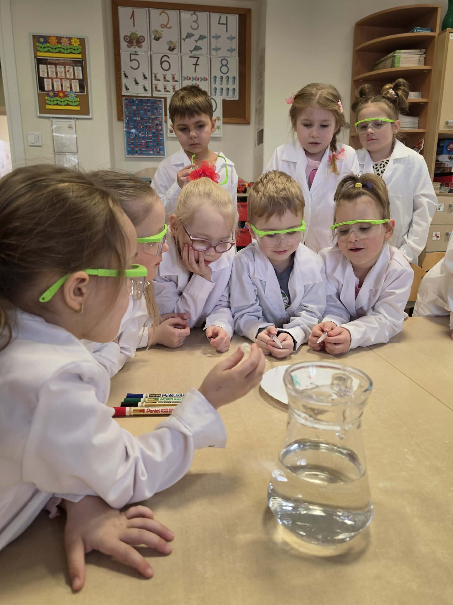 17.03. w naszym przedszkolu odbyły się niezwykłe eksperymenty inspirowane wiosną, które dostarczyły dzieciom wielu emocji i radości. Mali odkrywcy mieli okazję stworzyć piękne tęczowe kwiaty, obserwując efekt lawy w słoiku, a także podziwiać wybuchające wiosenne tulipany, które wzbudziły prawdziwy zachwyt. Dużym zainteresowaniem cieszyły się również ruchome obrazki oraz kontrolowany wybuch, który w bezpieczny sposób pokazał dzieciom ciekawe zjawiska. Dodatkową atrakcją był eksperyment z elektrycznością statyczną, dzięki któremu dzieci mogły na własne oczy zobaczyć, jak powstają niewidzialne siły przyciągania. Na zakończenie dzieci obserwowały rosnące kwiatuszki, ucząc się cierpliwości i dostrzegania zmian zachodzacych w przyrodzie. To był dzień pełen nauki poprzez zabawę i prawdziwej wiosennej magii.