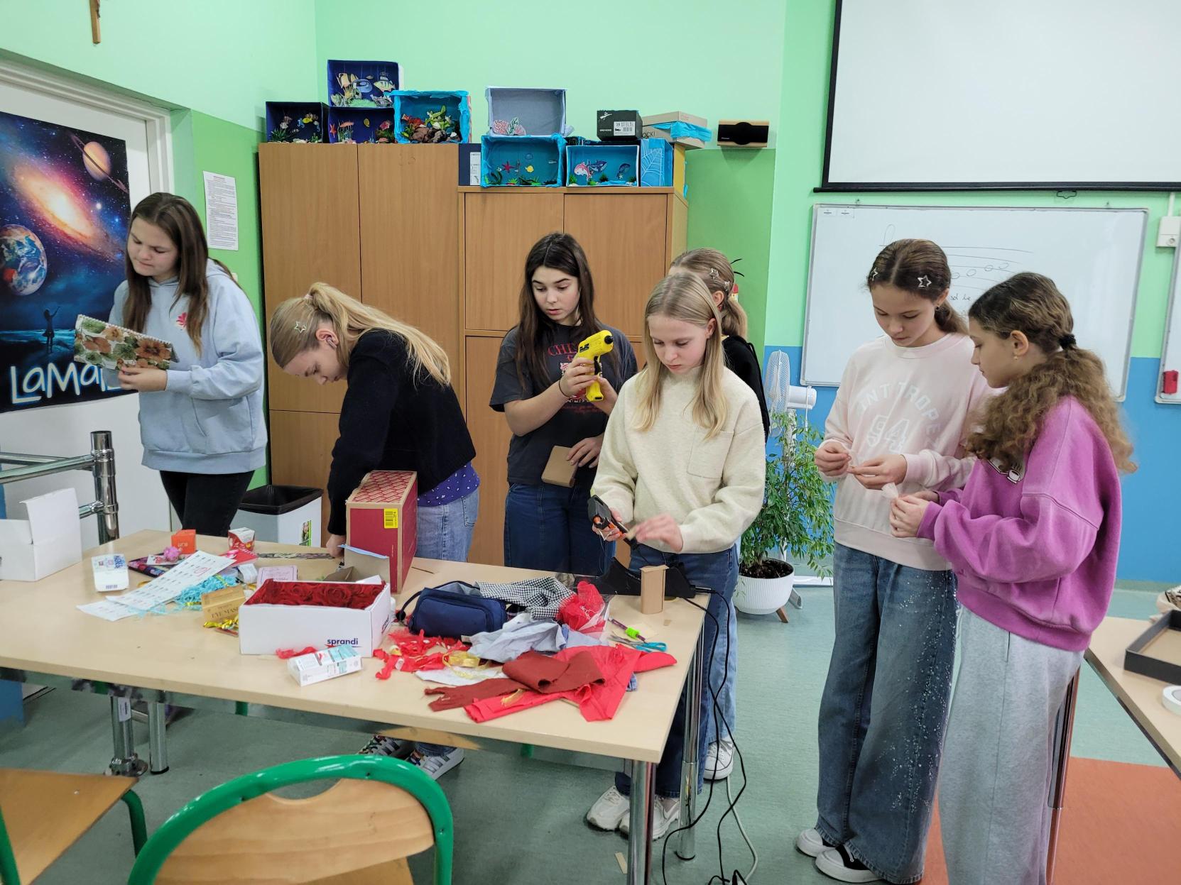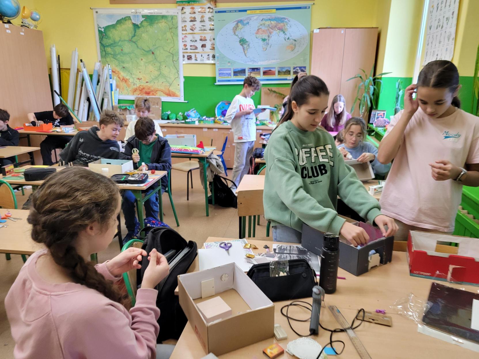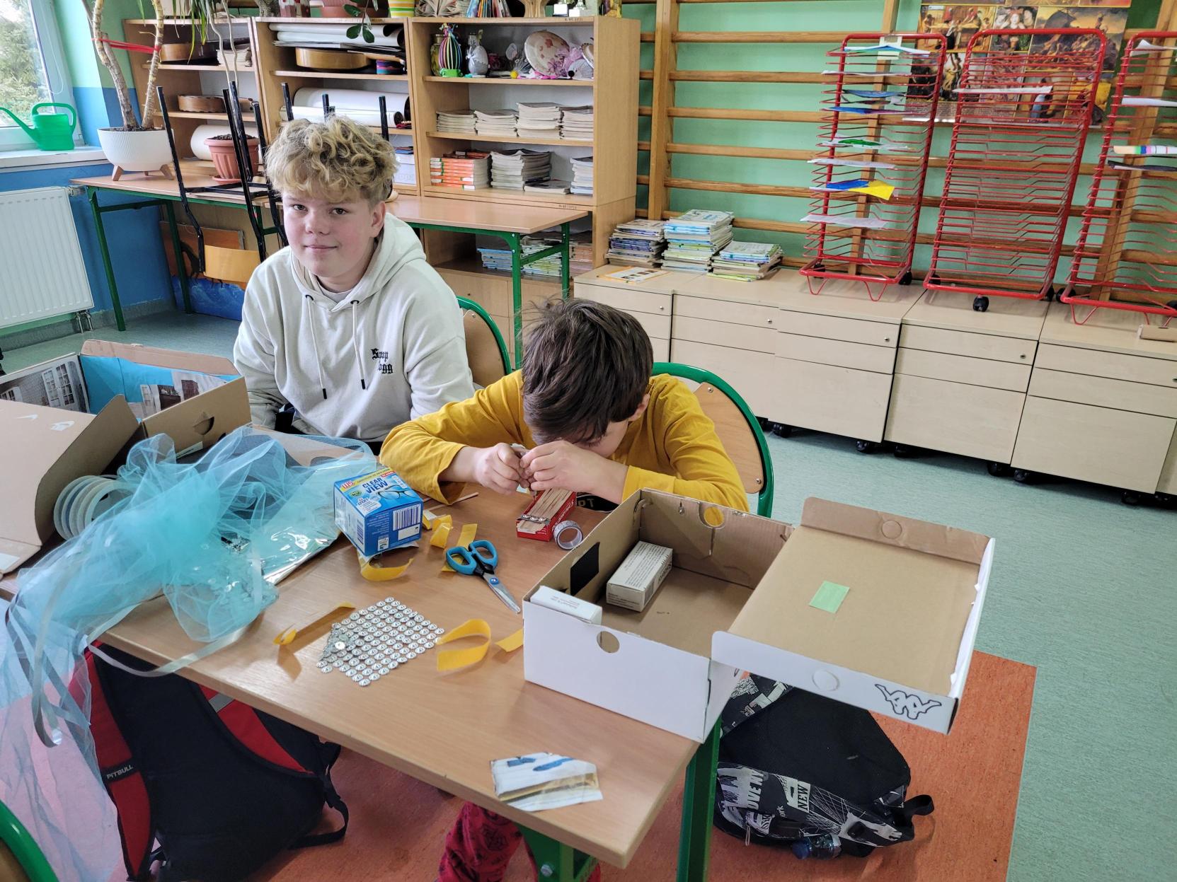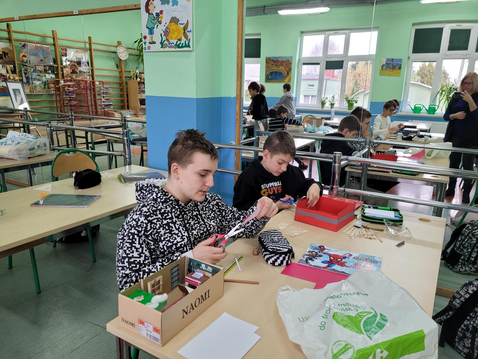 Uczniowie klasy 6a, 6b i 6c podczas lekcji techniki wykazali się dużą kreatywnością i pomysłowością, tworząc modele swoich wymarzonych pokoi. Prace powstały głównie z pudełek oraz materiałów z recyklingu, a do łączenia elementów uczniowie wykorzystywali m.in. klej na gorąco zakupiony w ramach programu „Laboratoria Przyszłości”, który pozwolił na trwałe i precyzyjne łączenie elementów konstrukcyjnych. Każdy projekt był inny i odzwierciedlał indywidualne zainteresowania oraz potrzeby autorów.