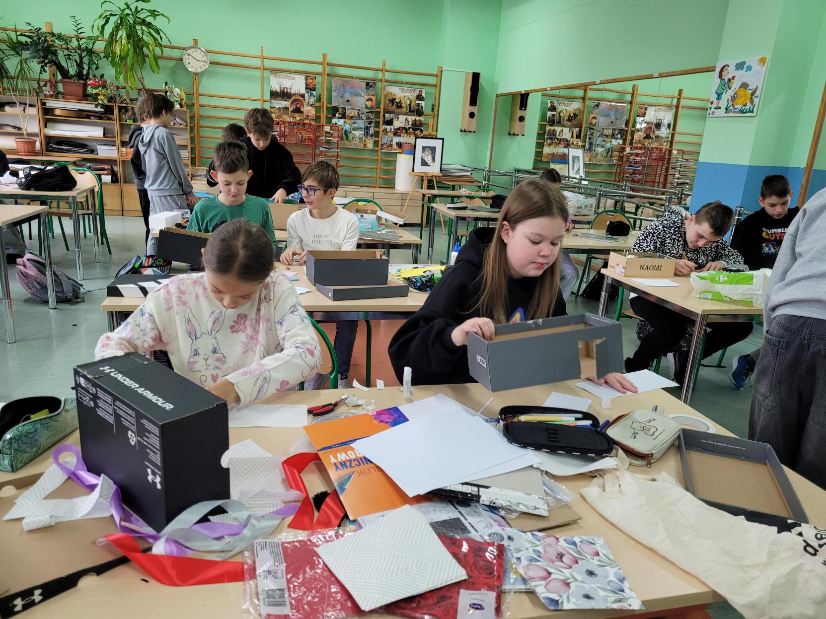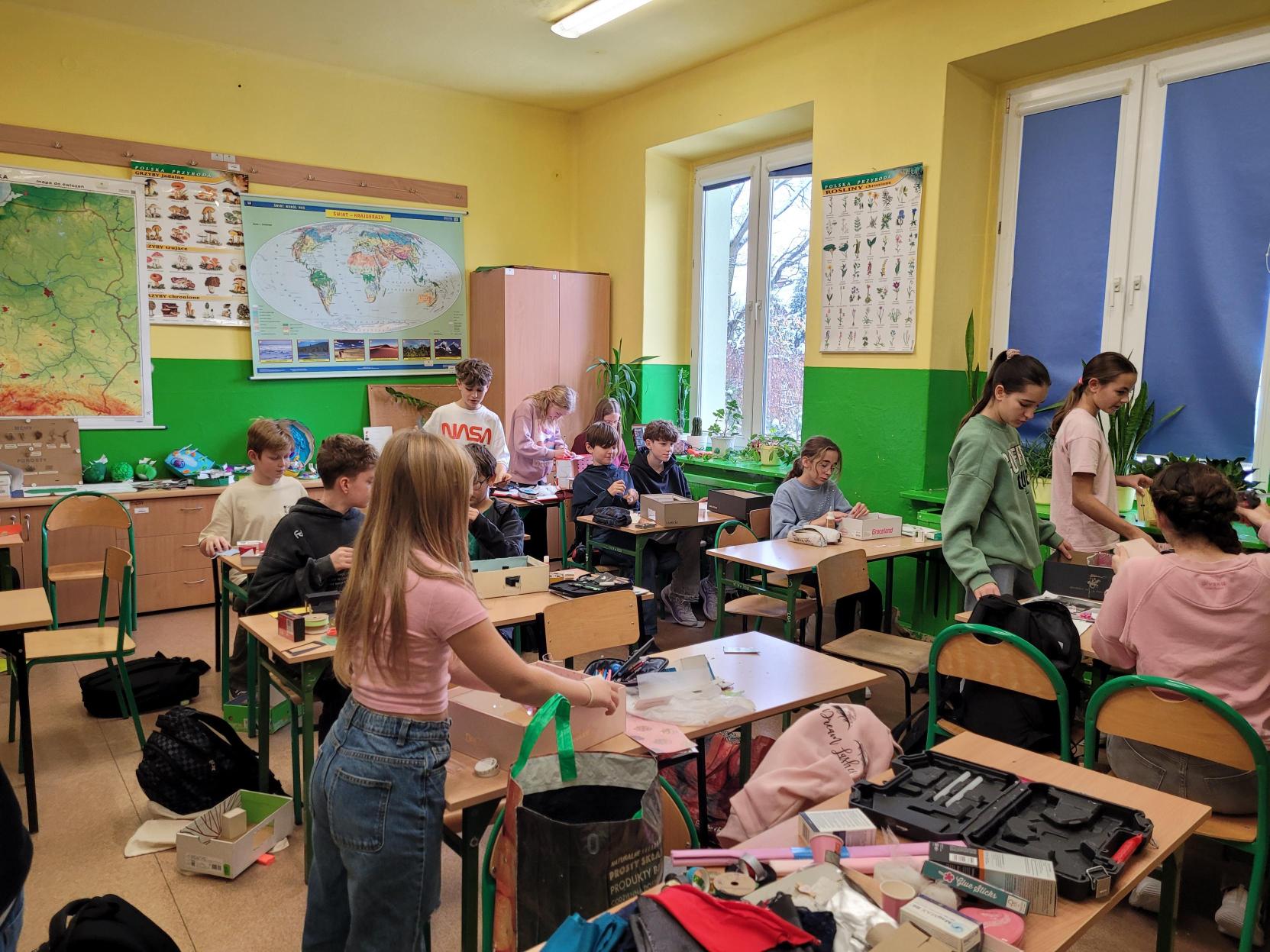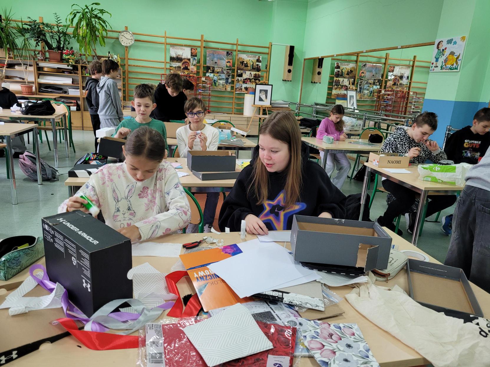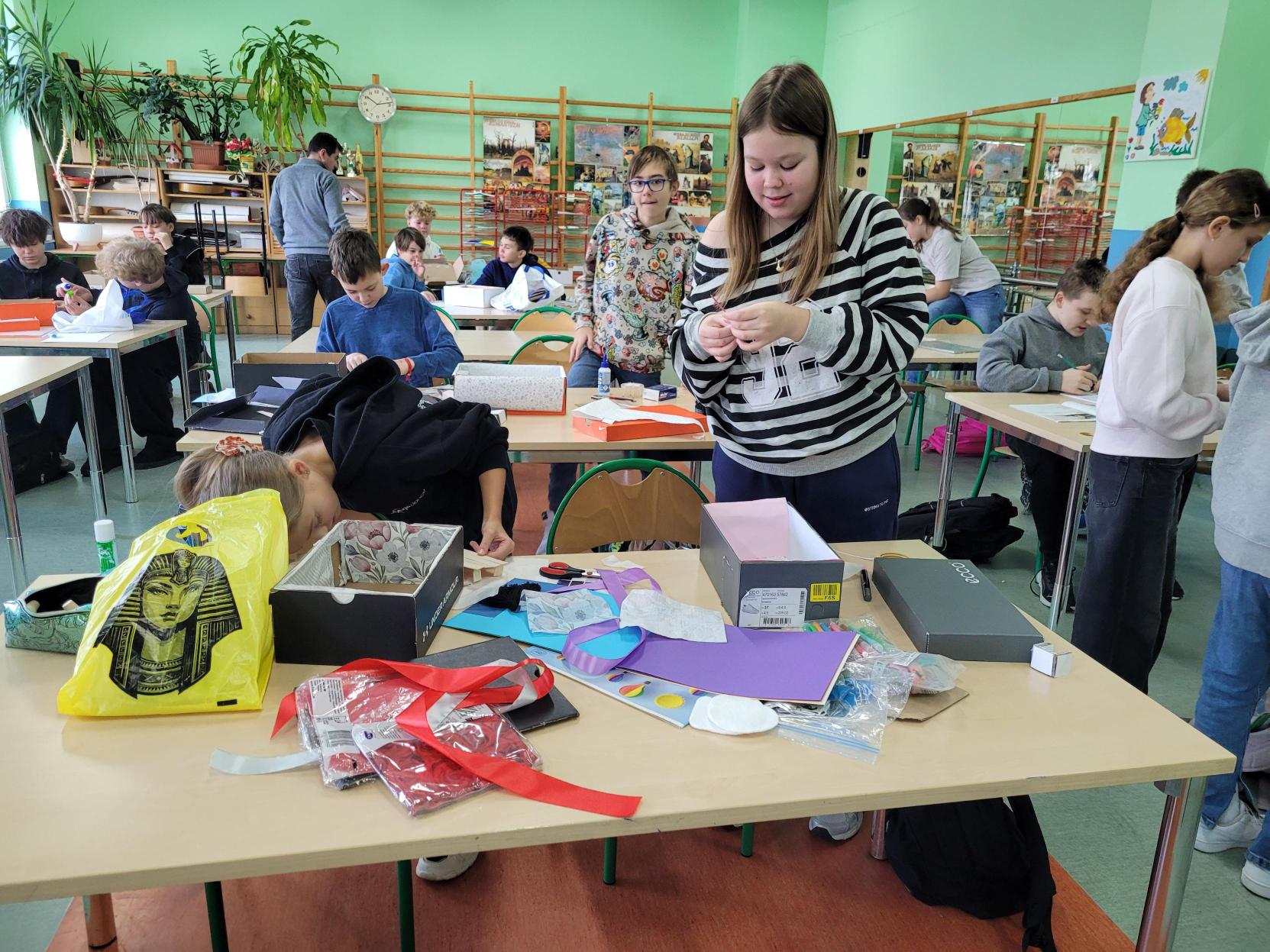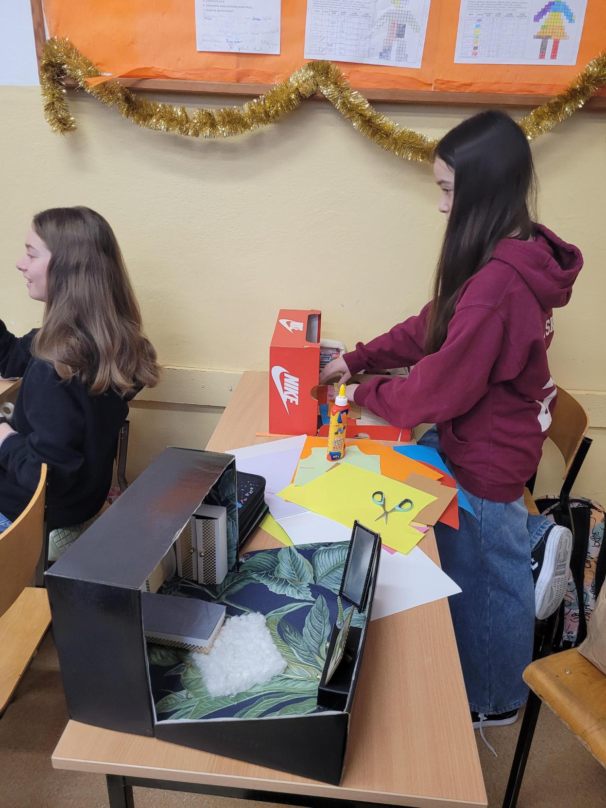 Uczniowie klasy 6a, 6b i 6c podczas lekcji techniki wykazali się dużą kreatywnością i pomysłowością, tworząc modele swoich wymarzonych pokoi. Prace powstały głównie z pudełek oraz materiałów z recyklingu, a do łączenia elementów uczniowie wykorzystywali m.in. klej na gorąco zakupiony w ramach programu „Laboratoria Przyszłości”, który pozwolił na trwałe i precyzyjne łączenie elementów konstrukcyjnych. Każdy projekt był inny i odzwierciedlał indywidualne zainteresowania oraz potrzeby autorów.