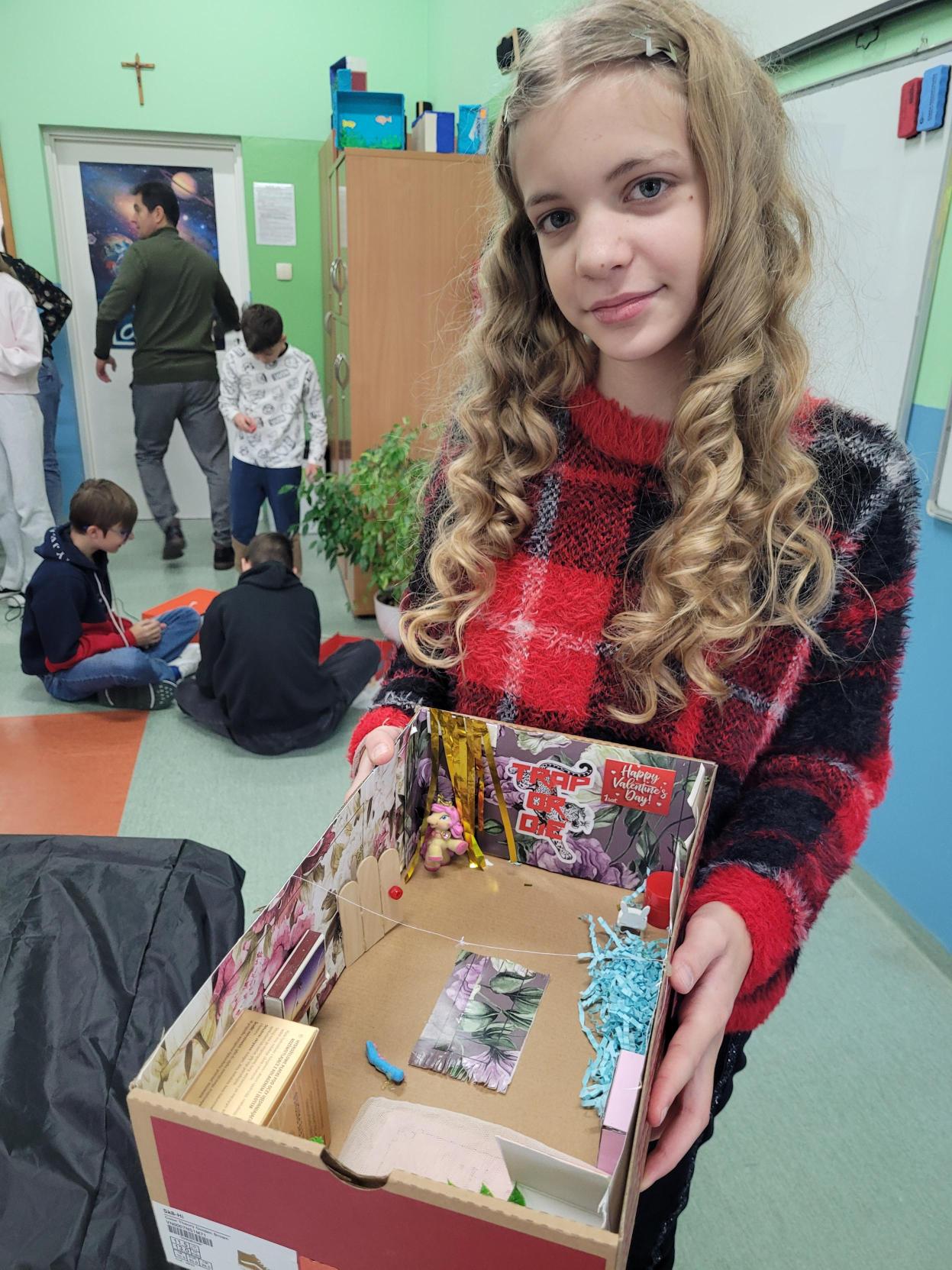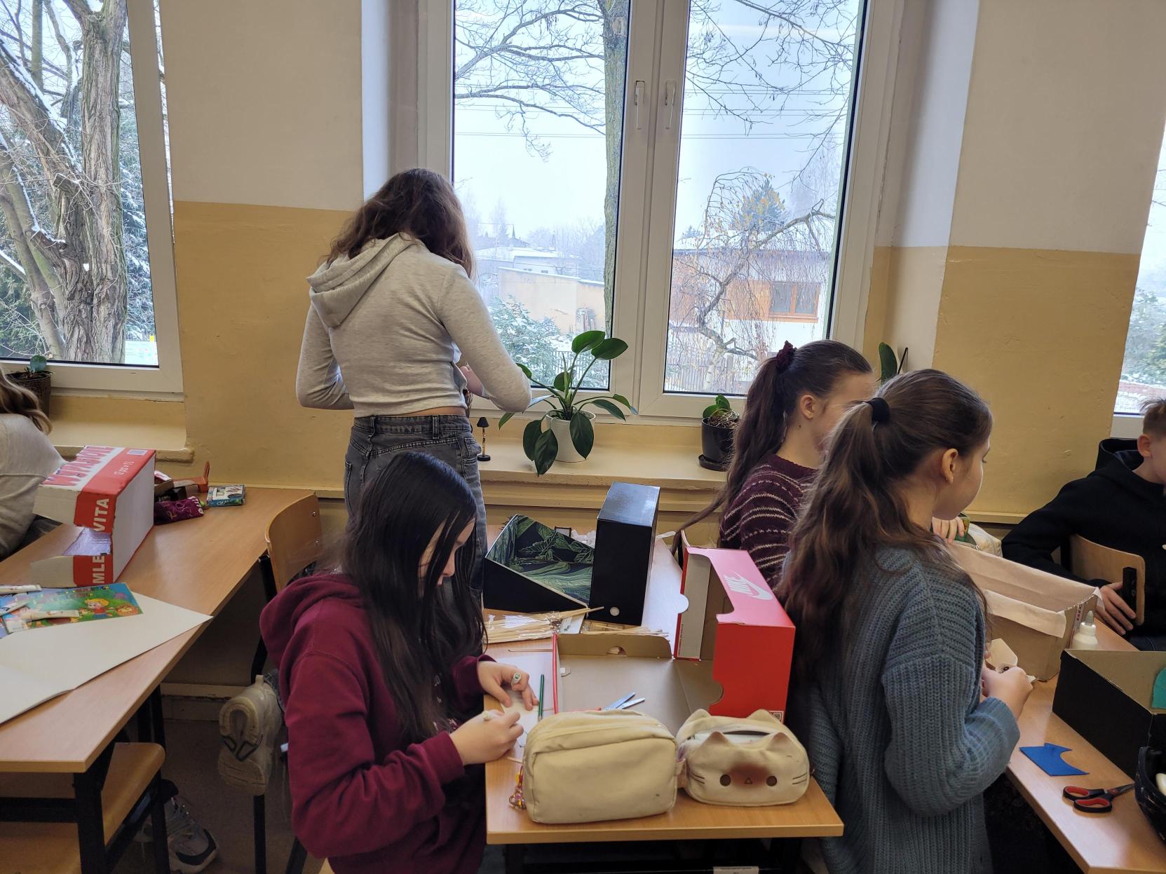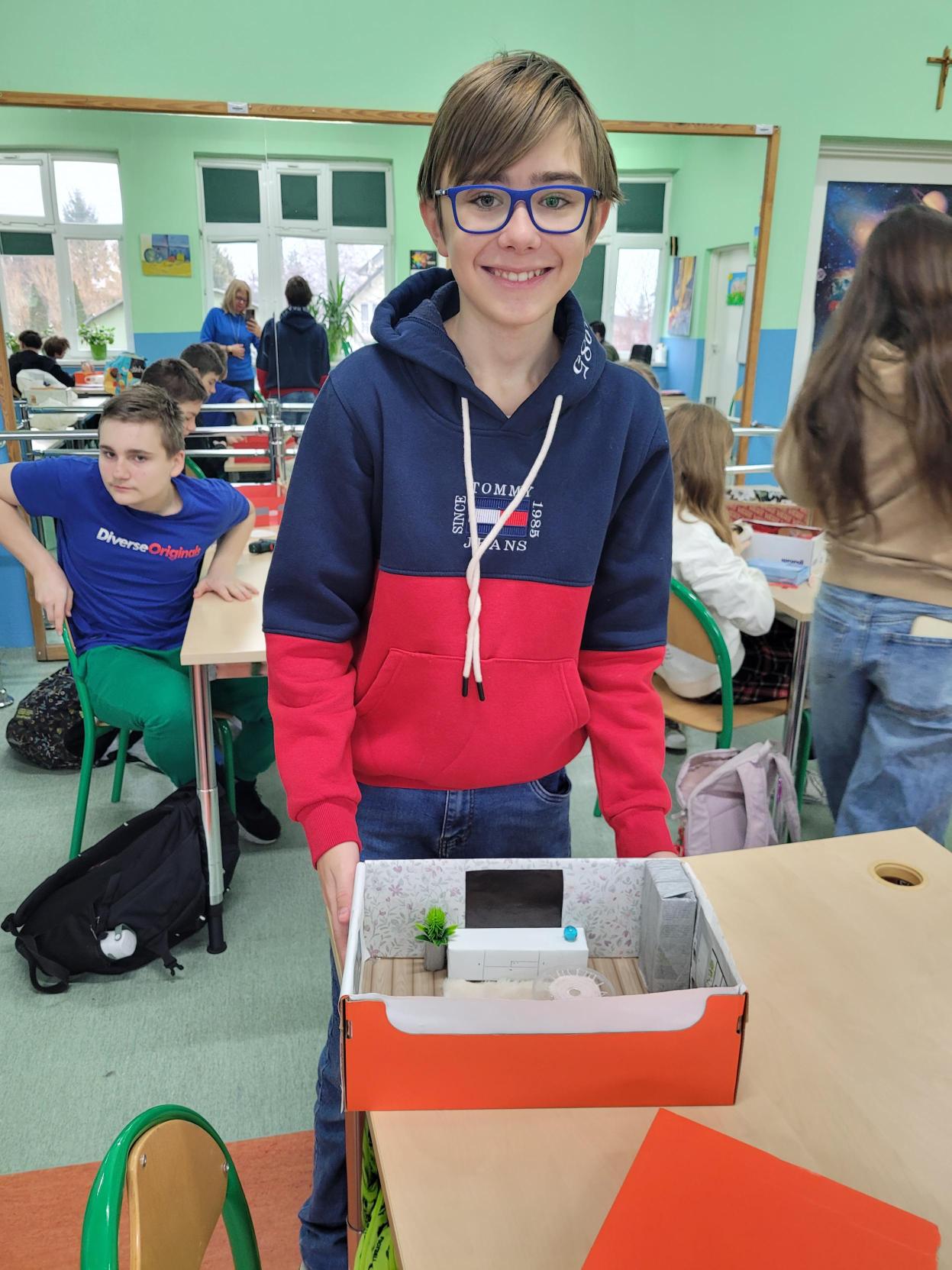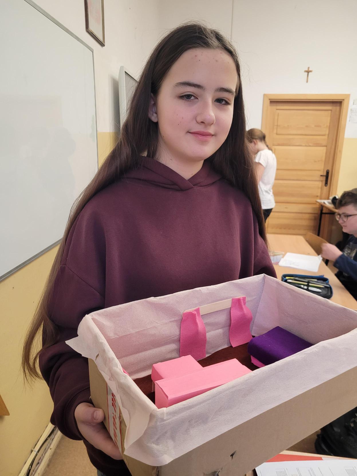 Podczas pracy uczniowie planowali układ wnętrza, projektowali meble i dbali o detale, takie jak dekoracje, kolorystyka czy funkcjonalność przestrzeni. Zajęcia pozwoliły rozwijać zdolności manualne, wyobraźnię przestrzenną oraz umiejętność samodzielnego rozwiązywania problemów. Efektem są oryginalne i starannie wykonane makiety, które pokazują, jak wiele pomysłów i zaangażowania mają nasi uczniowie.