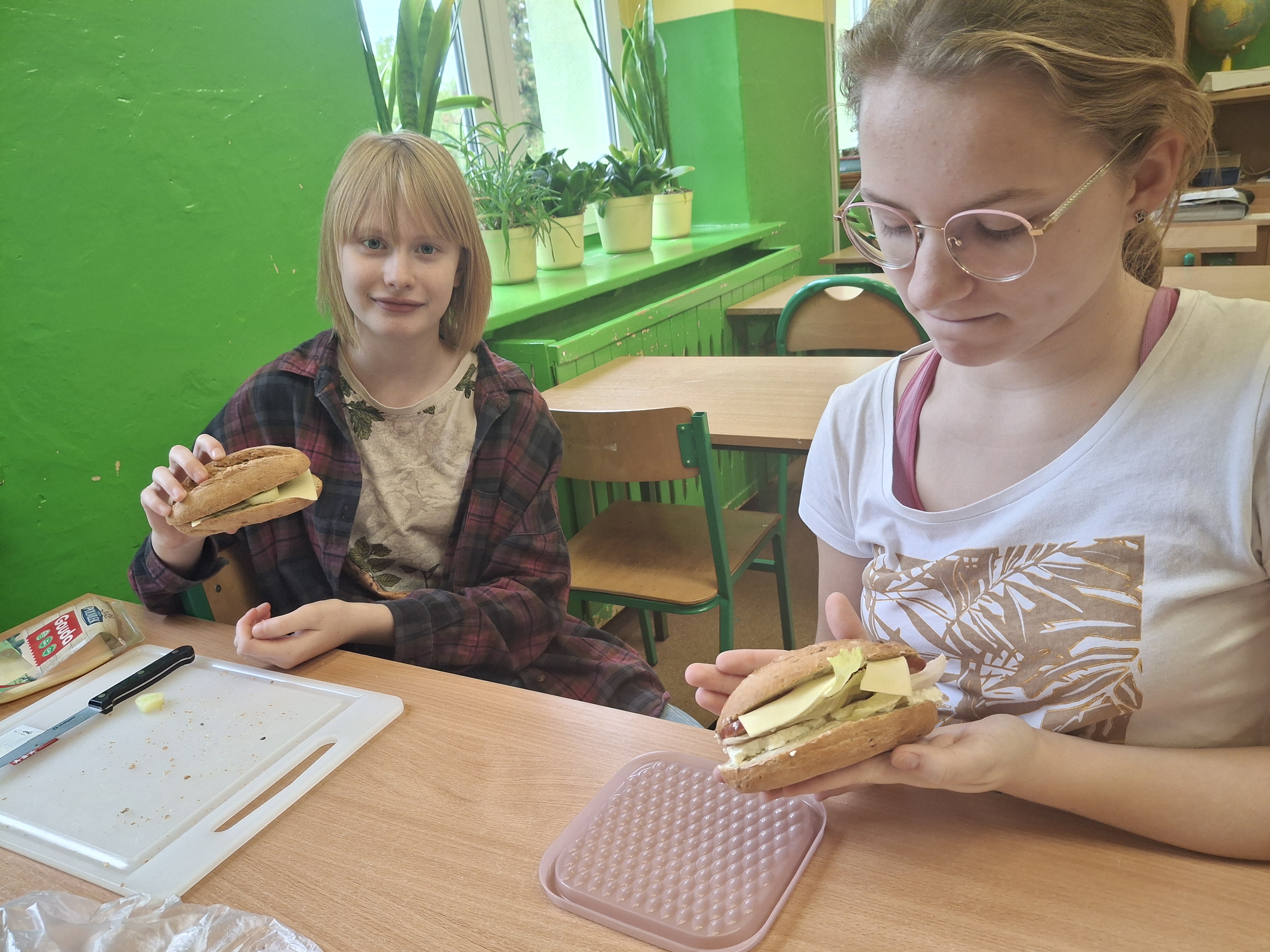 W czasie zajęć wykorzystano przybory kuchenne: deski, noże oraz miski zakupione w ramach programu „Laboratoria Przyszłości”, co ułatwiło pracę oraz pozwoliło zadbać o higienę i bezpieczeństwo podczas zajęć.